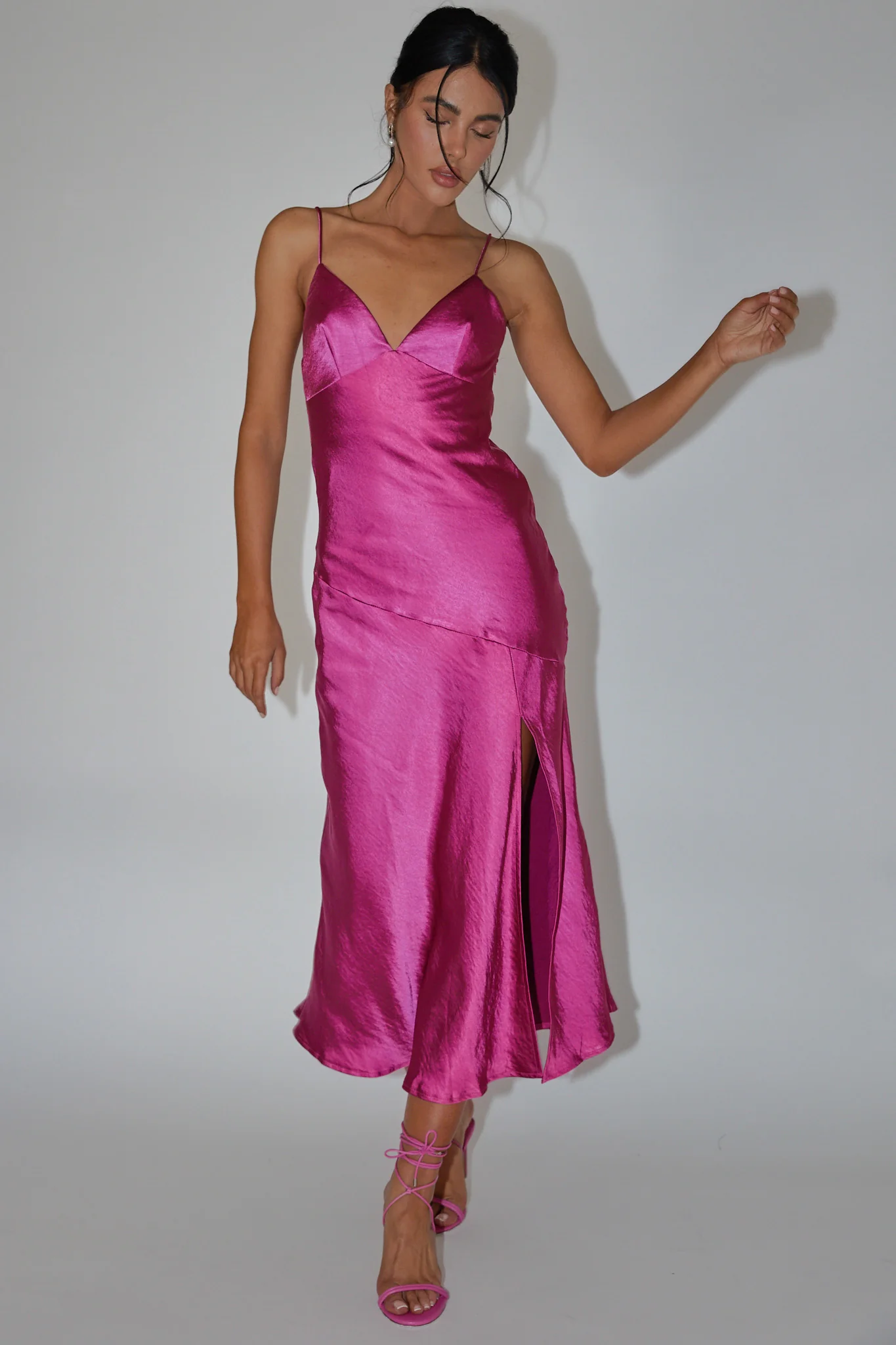 Downtown Cami Strap Front Split Midi Dress Fuchsia