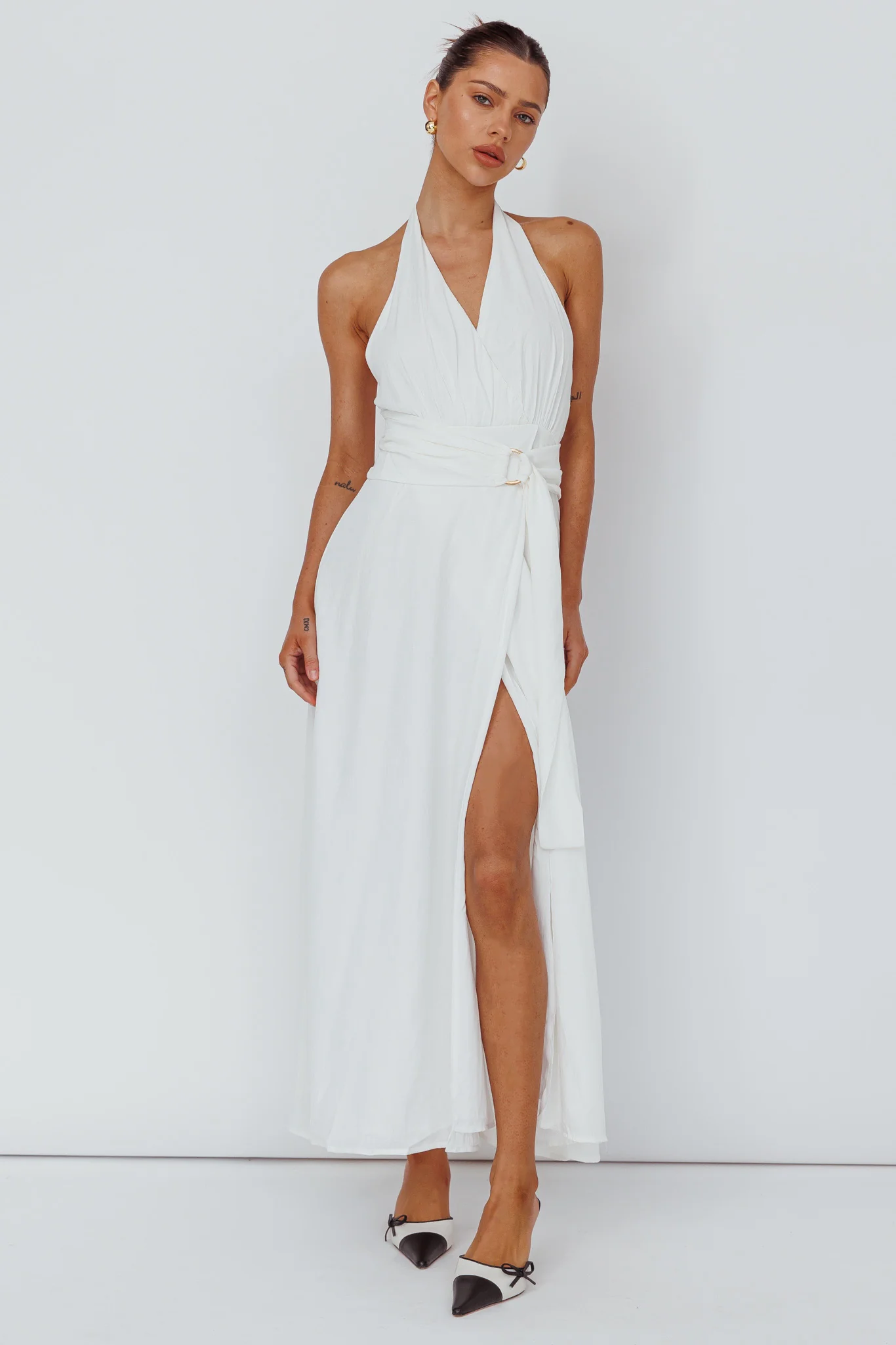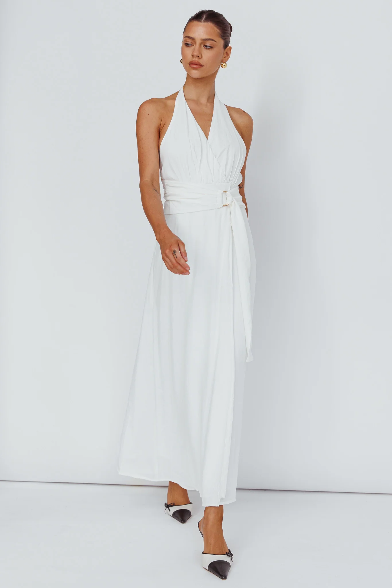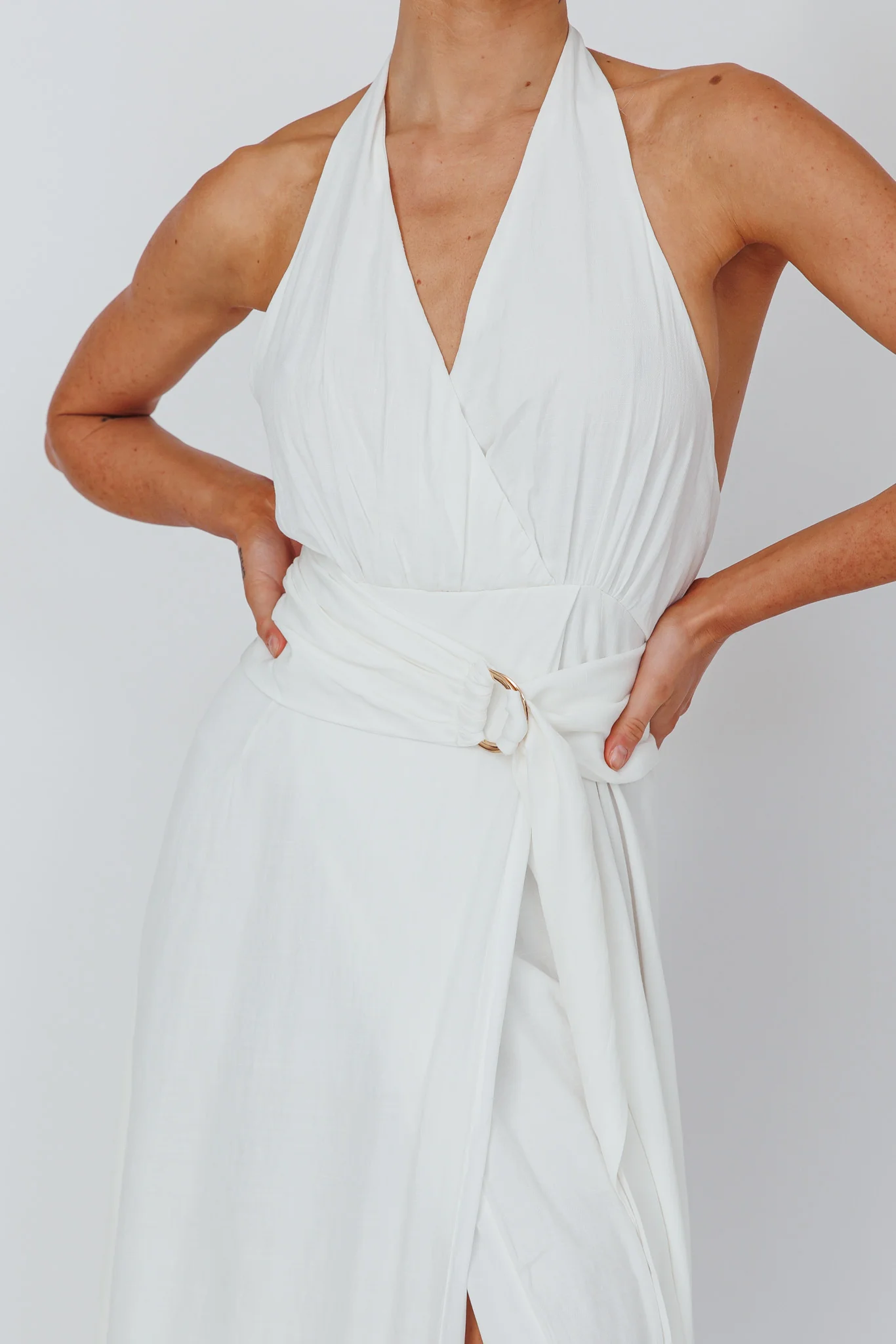 Spring Feels Halterneck Belt Maxi Dress White