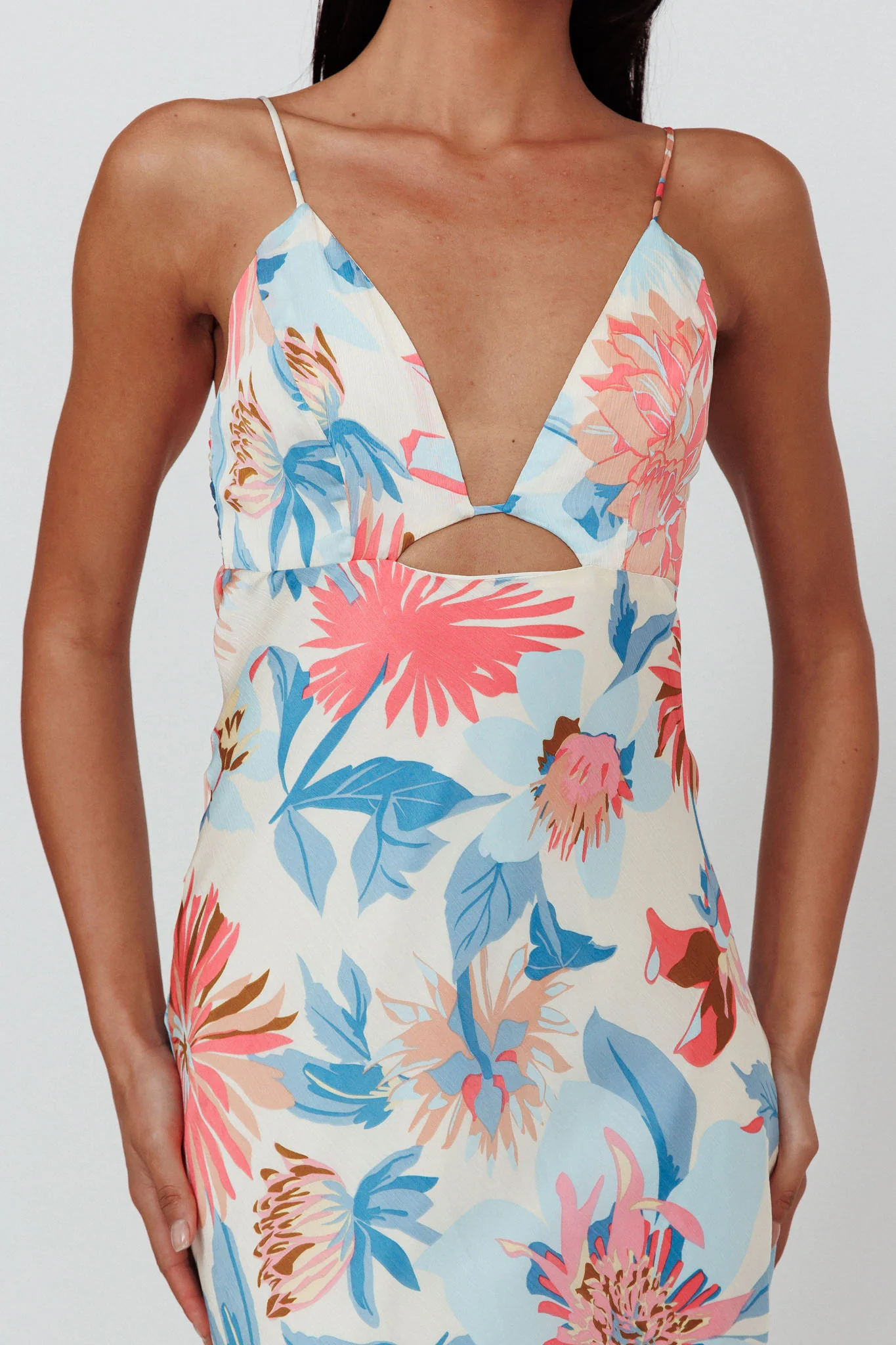 Dance Again Cut-Out Back Maxi Dress Floral Blue