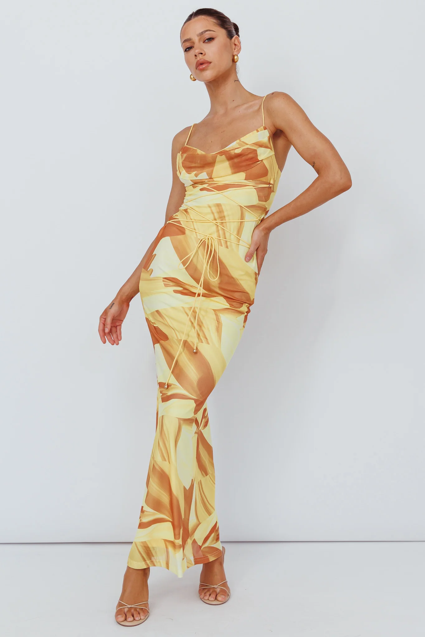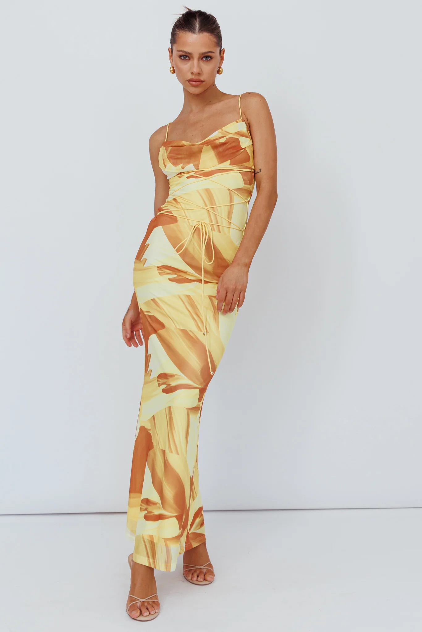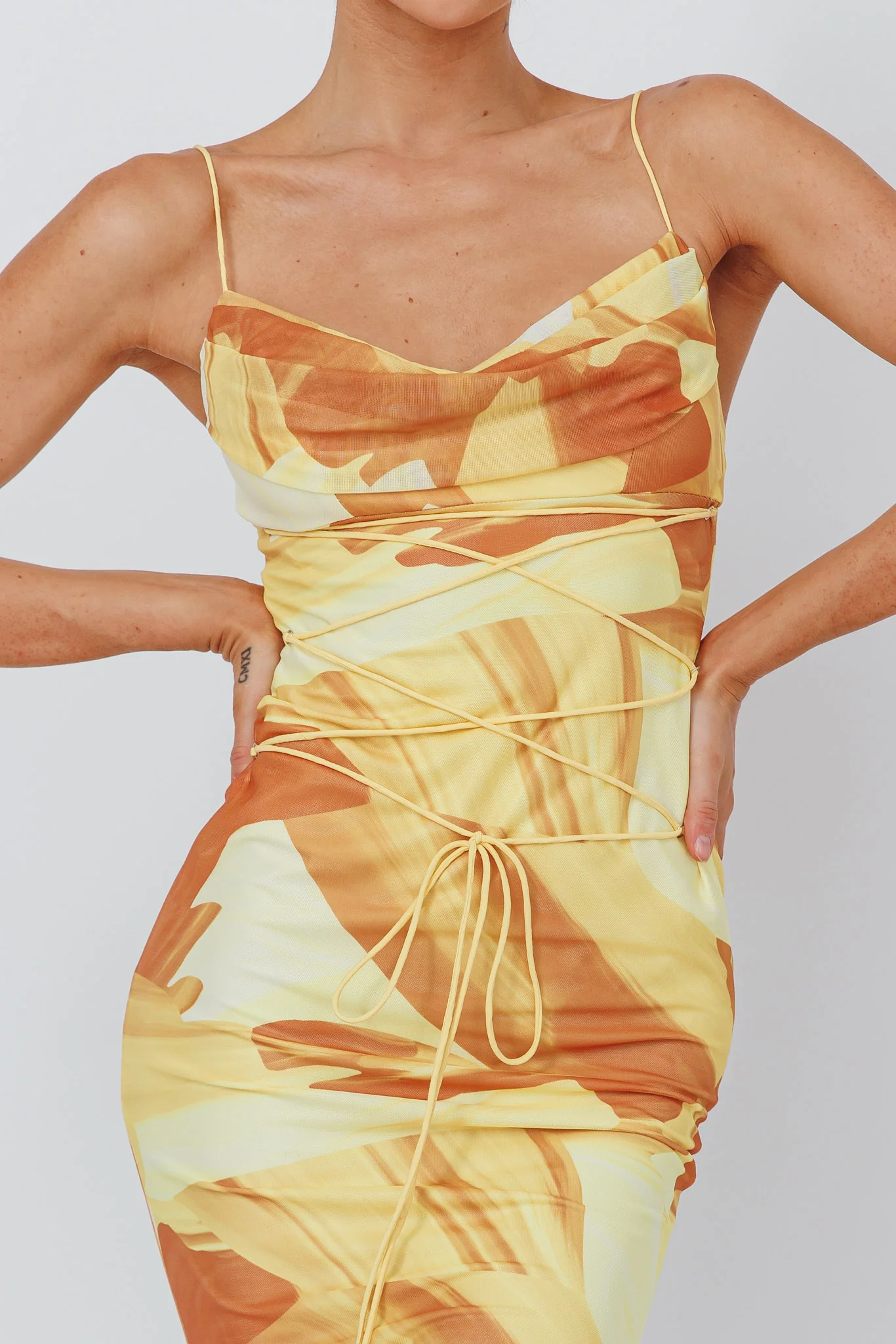 Teava Laced Waist Maxi Dress Abstract Yellow
