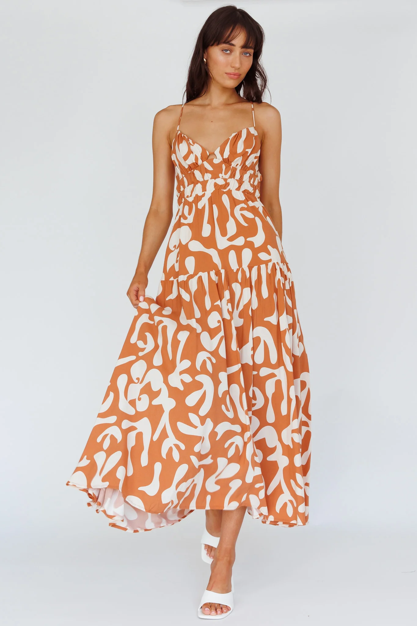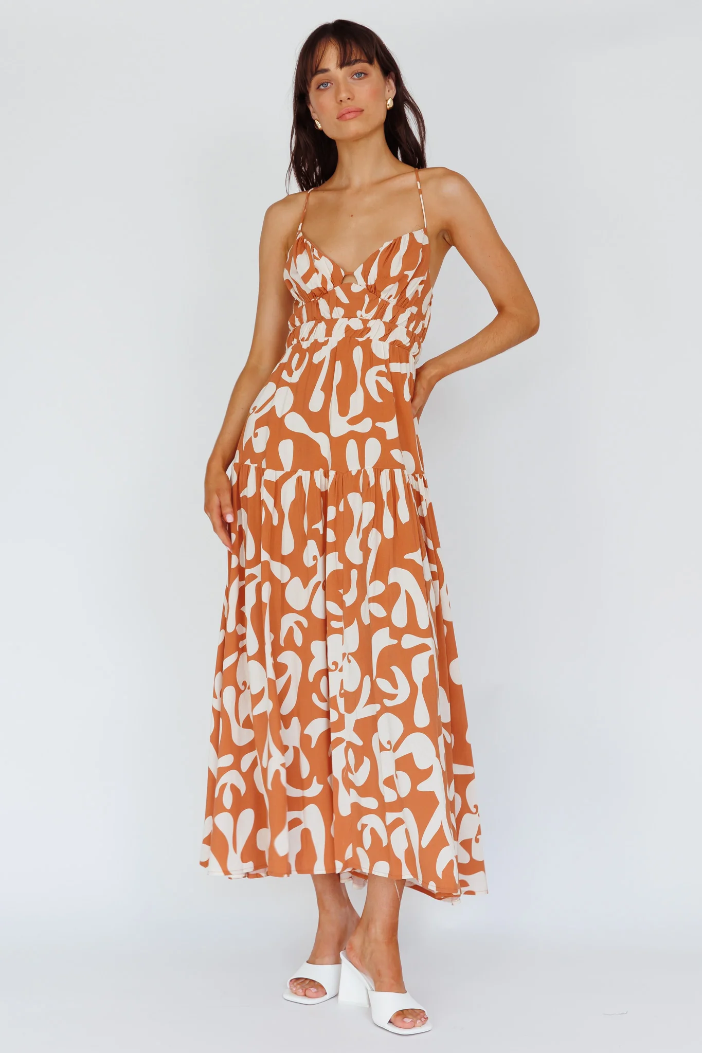 Tiffi Cami Strap Midi Dress Floral Brown