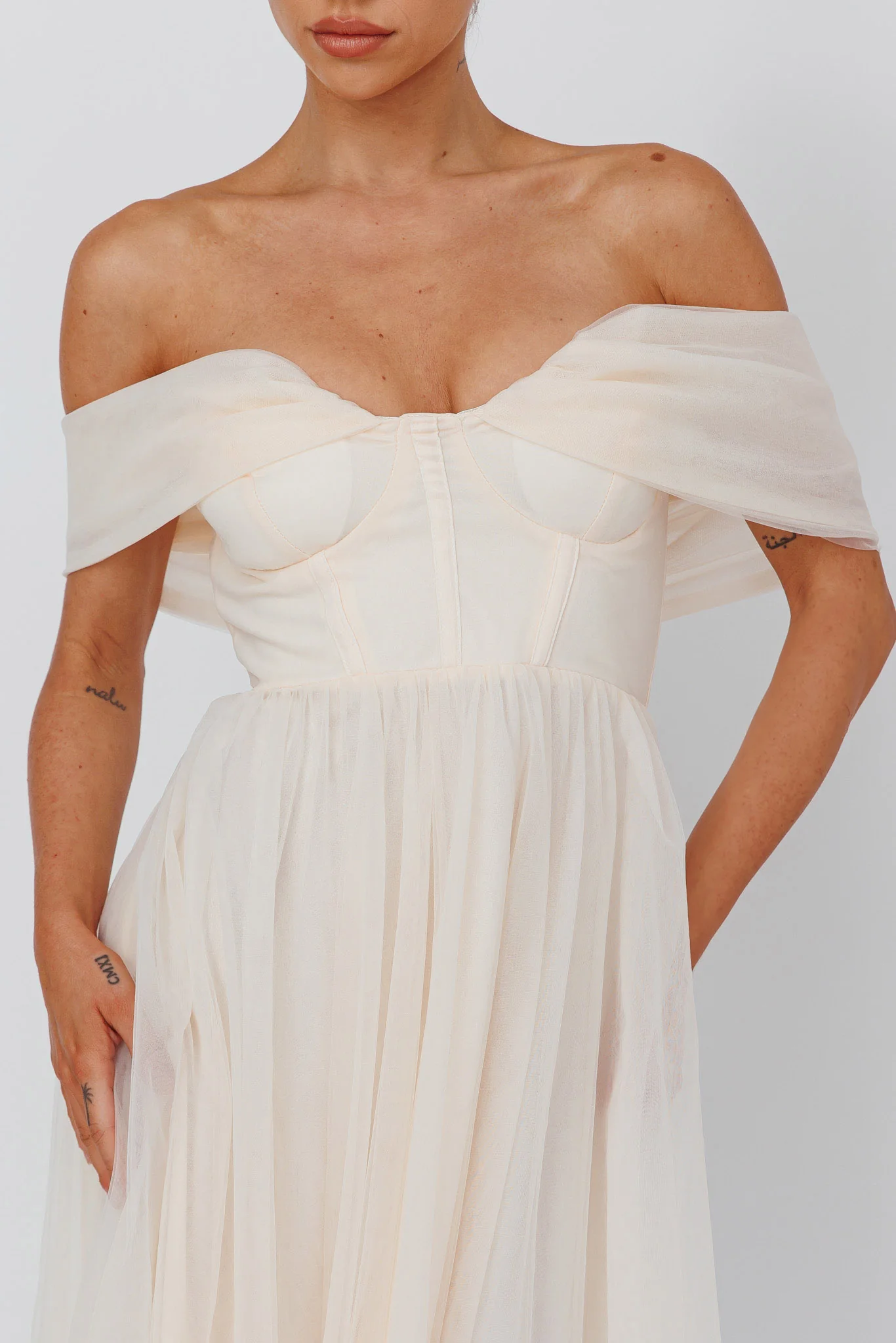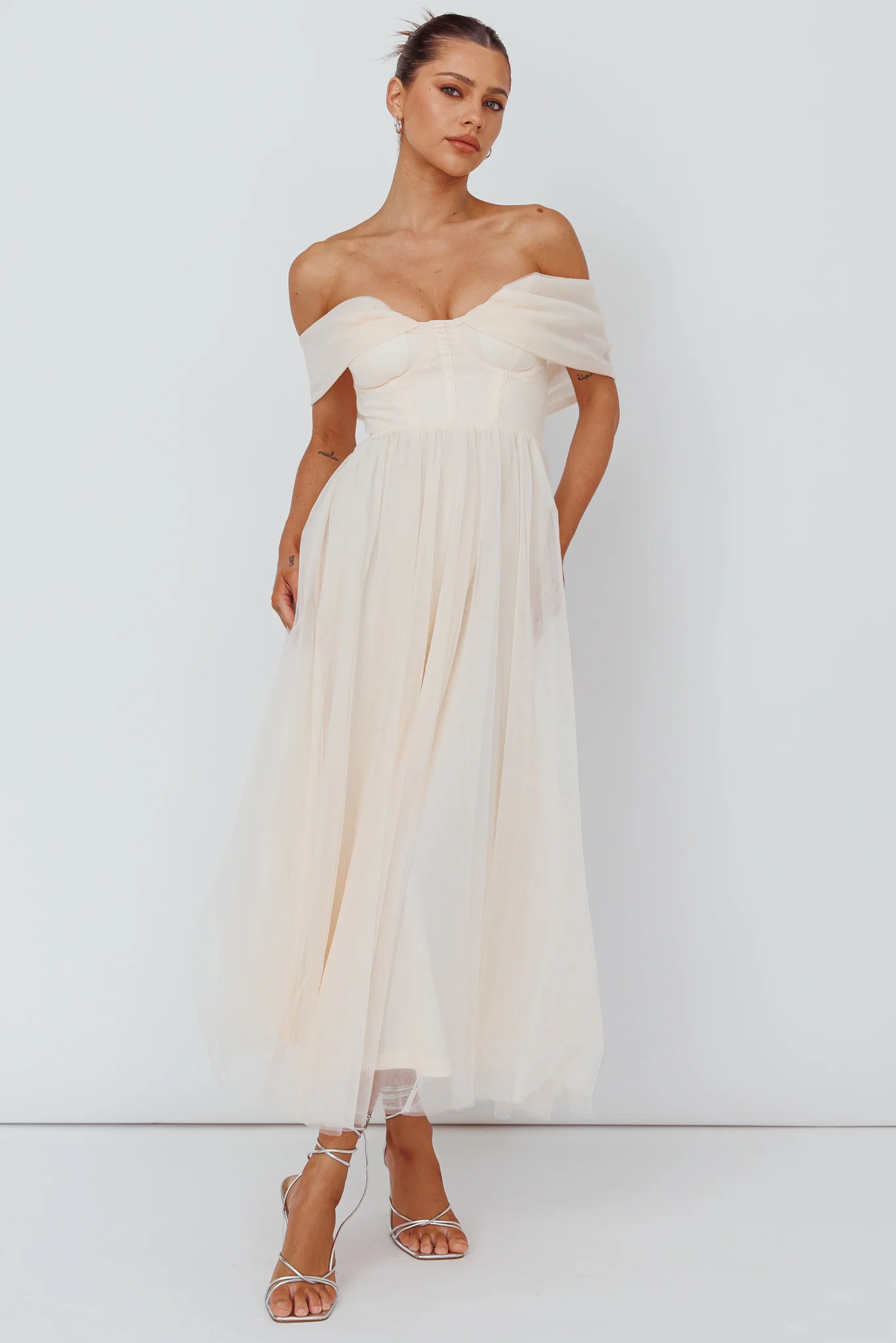 Dalisha Off Shoulder Ruched Maxi Dress Cream