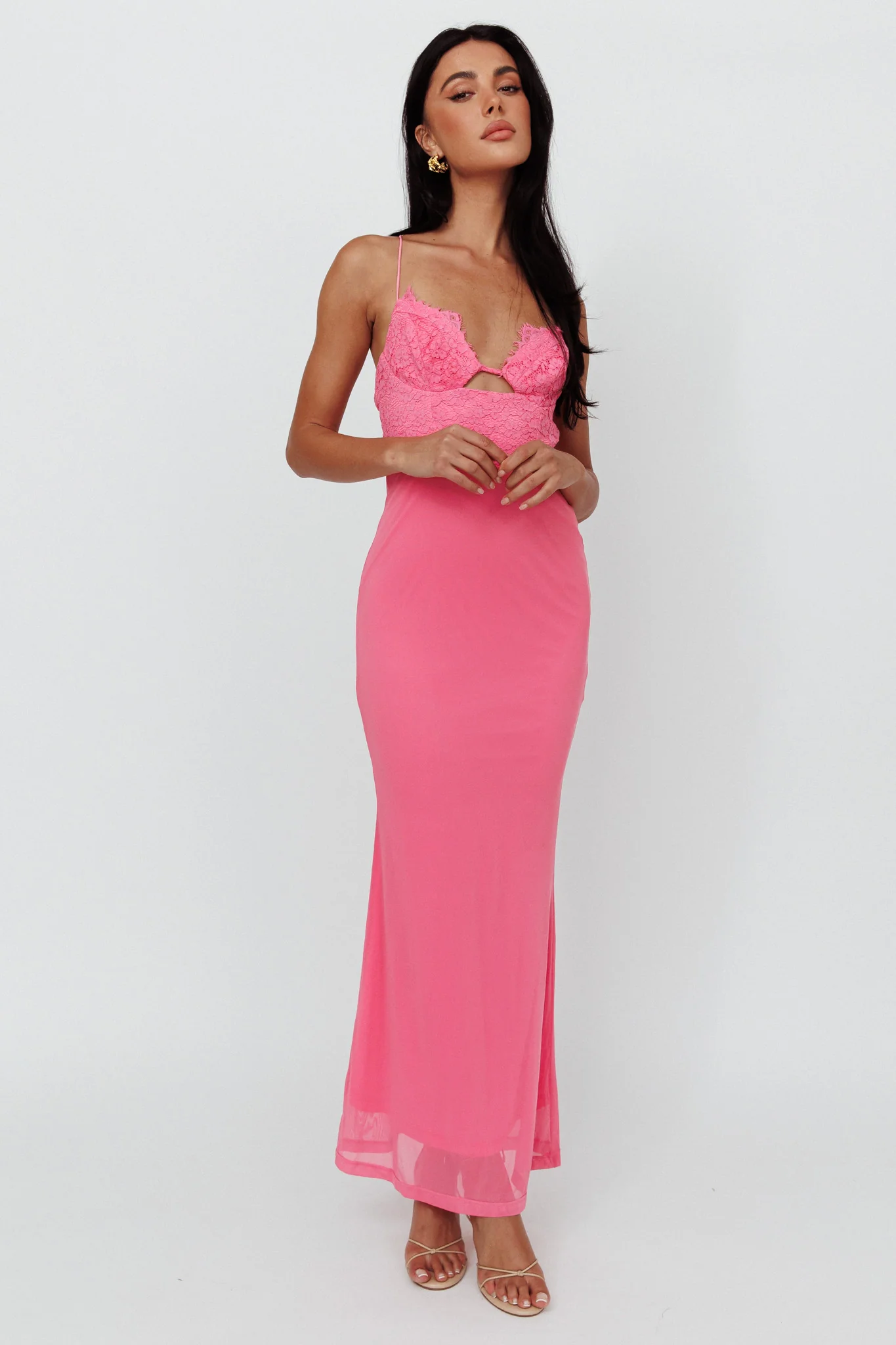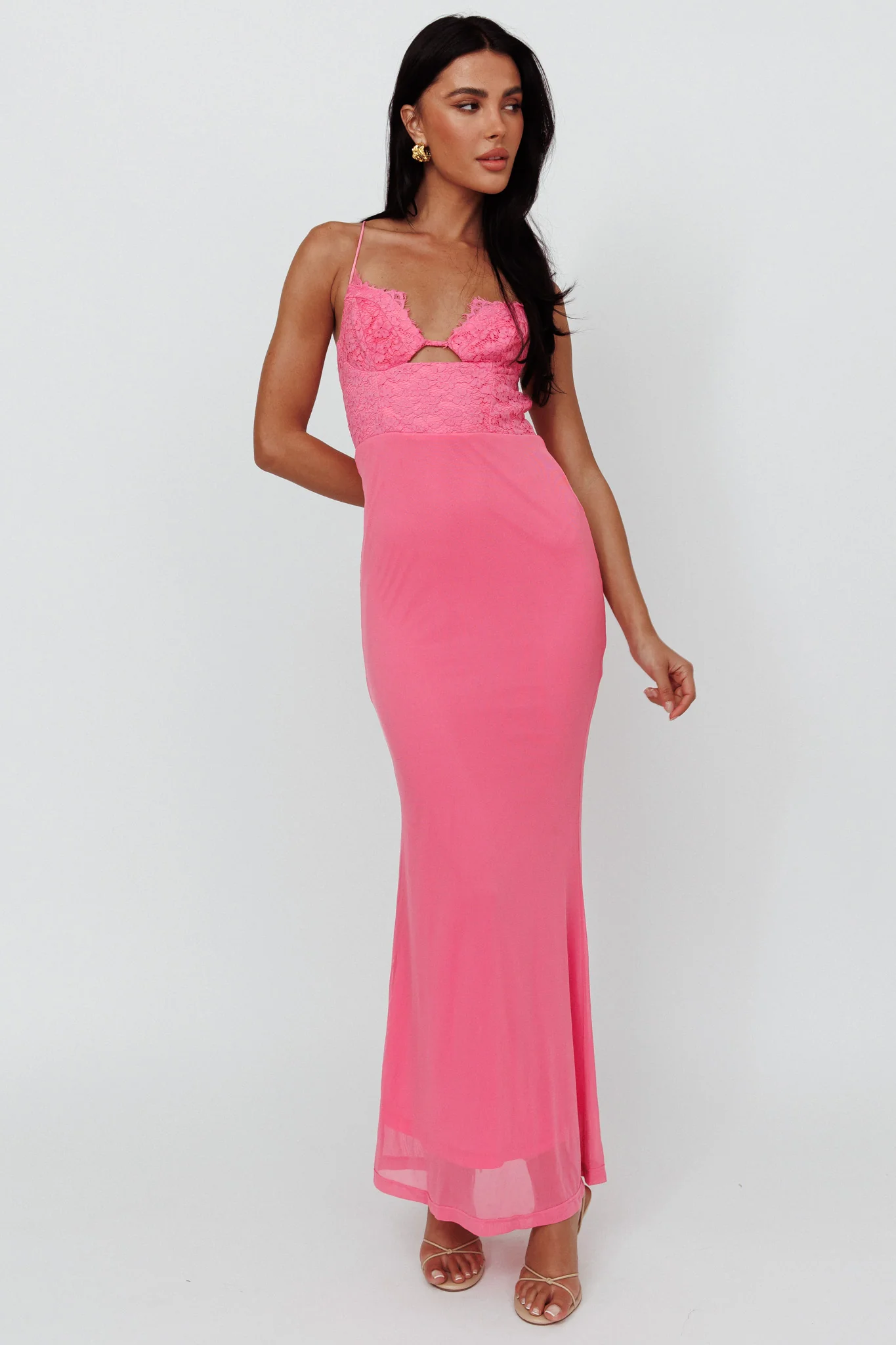 Rose Garden Floral Applique Laced Midi Dress Baby Pink