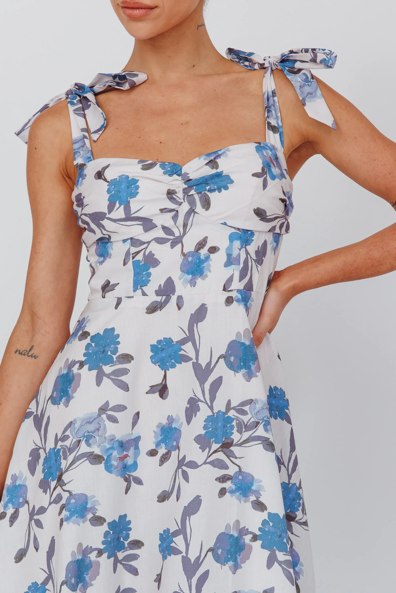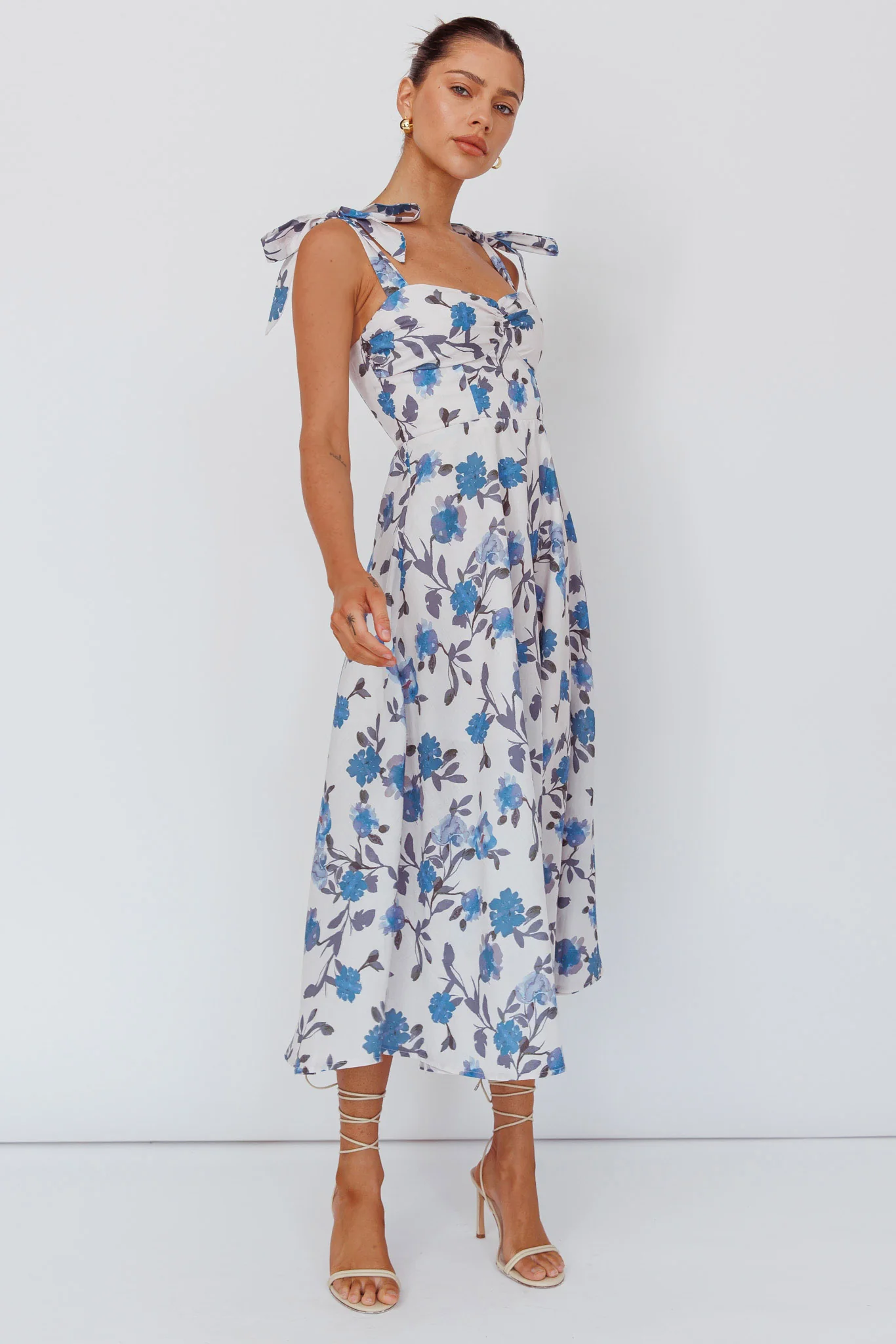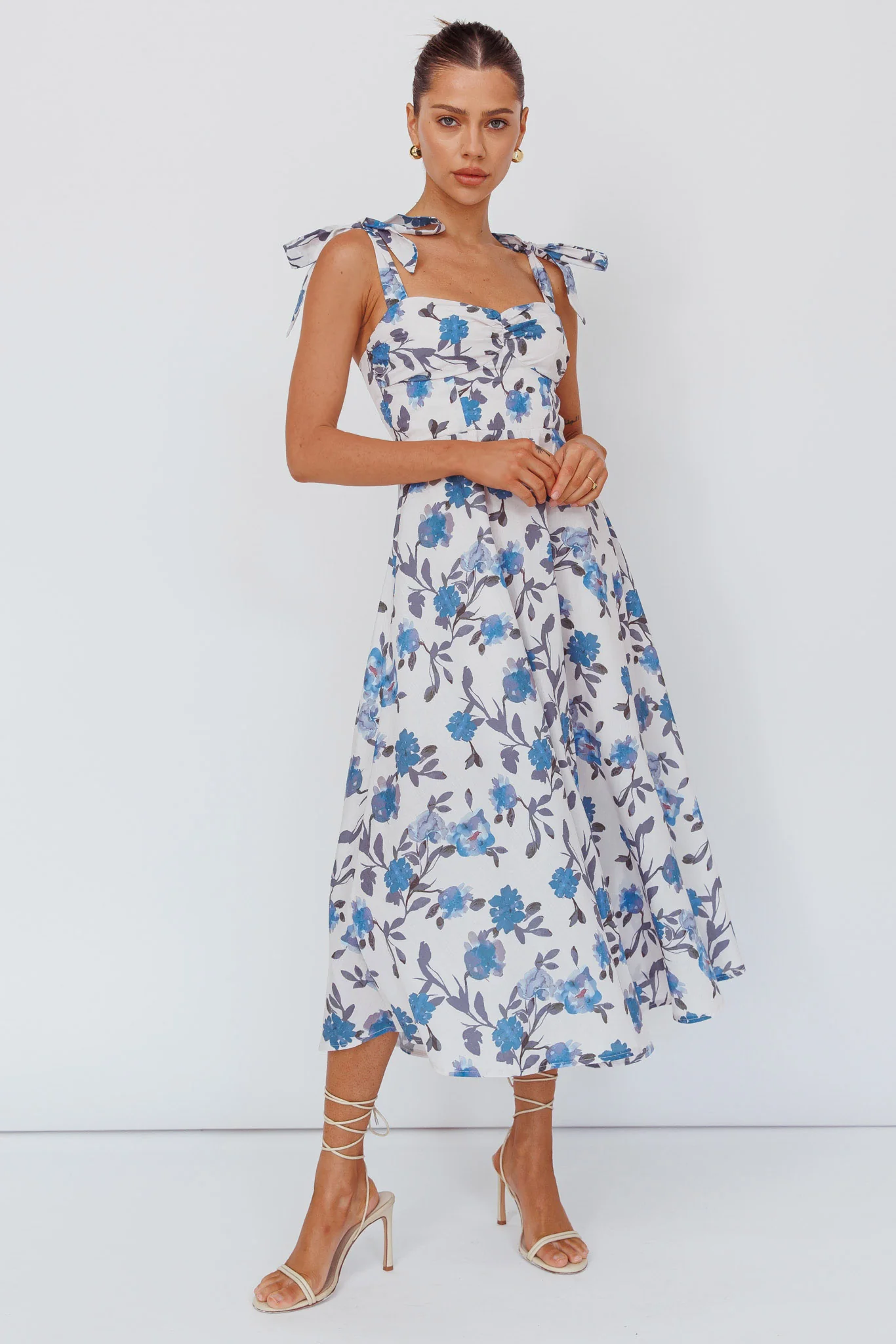 Sweet Pea Tied Bust Midi Dress Flower Blue