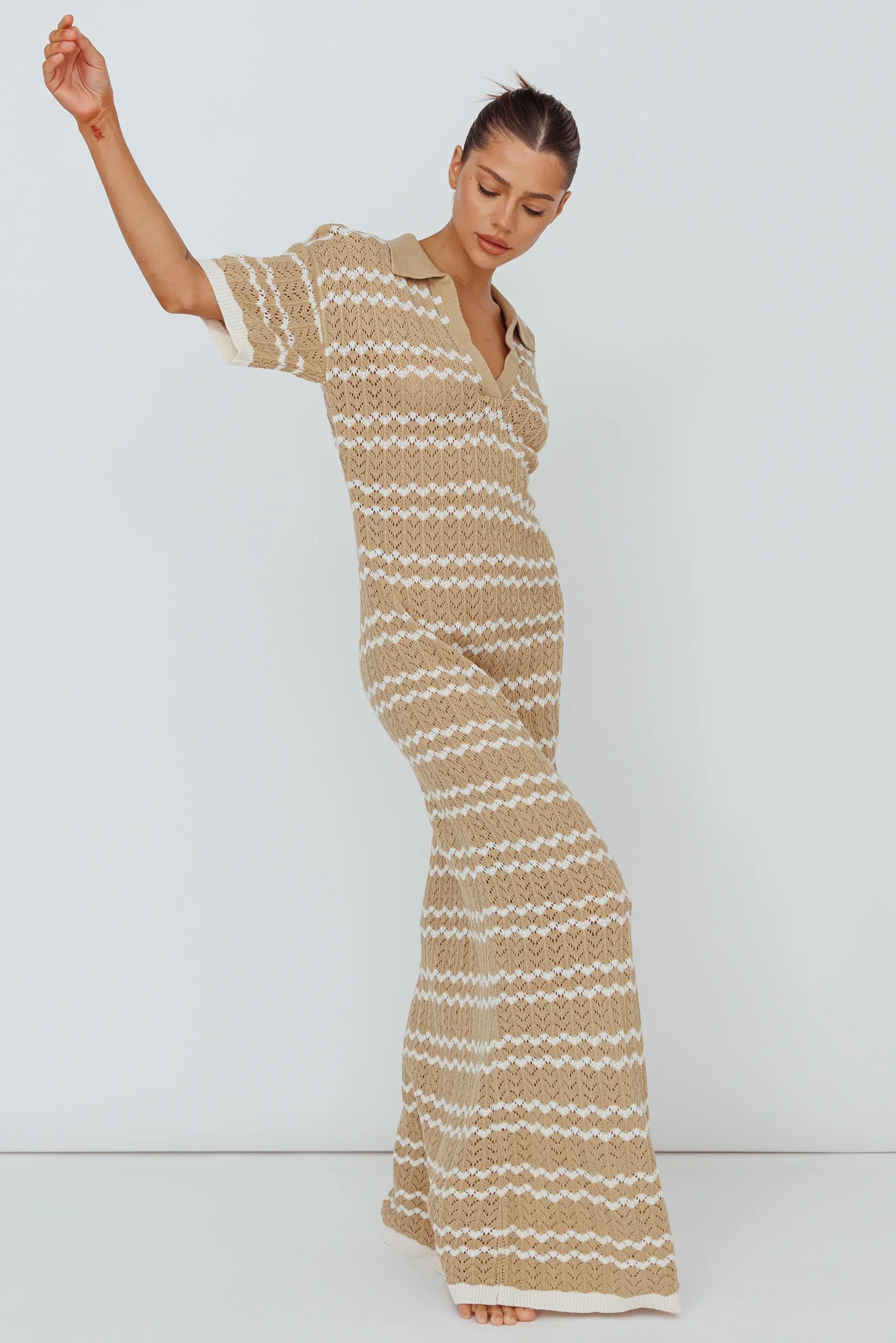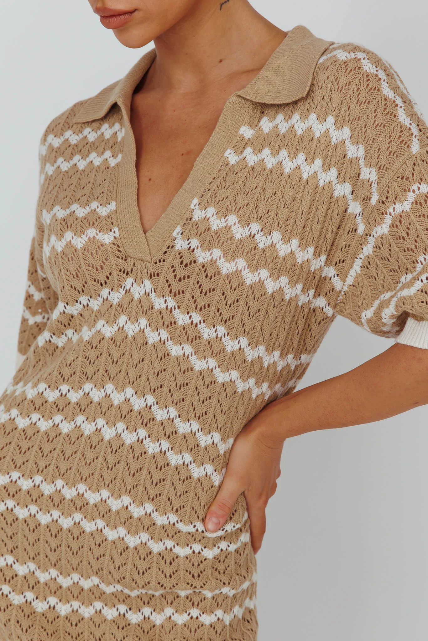 Clearwater Crochet Short Sleeve Maxi Dress Beige/White