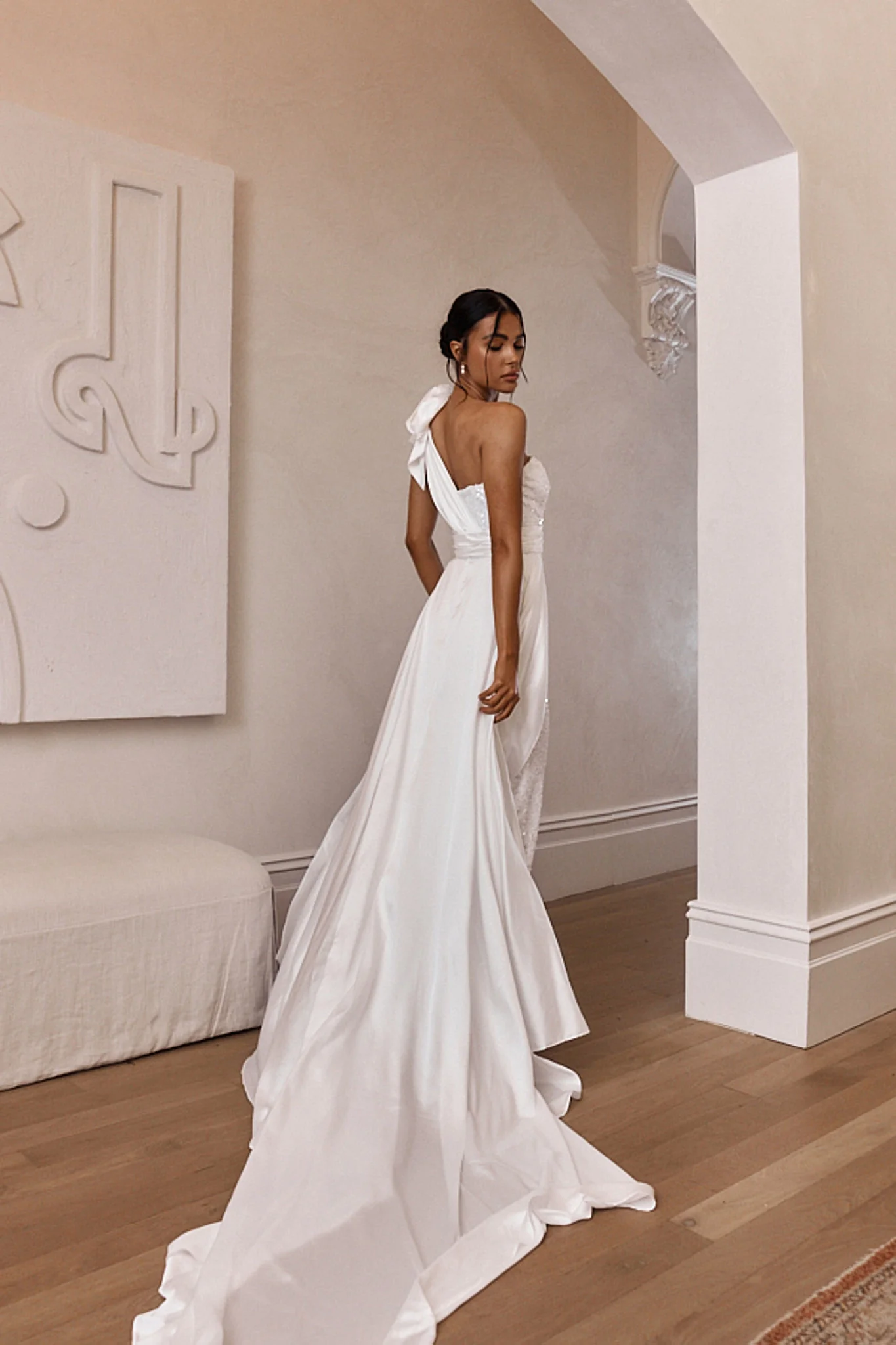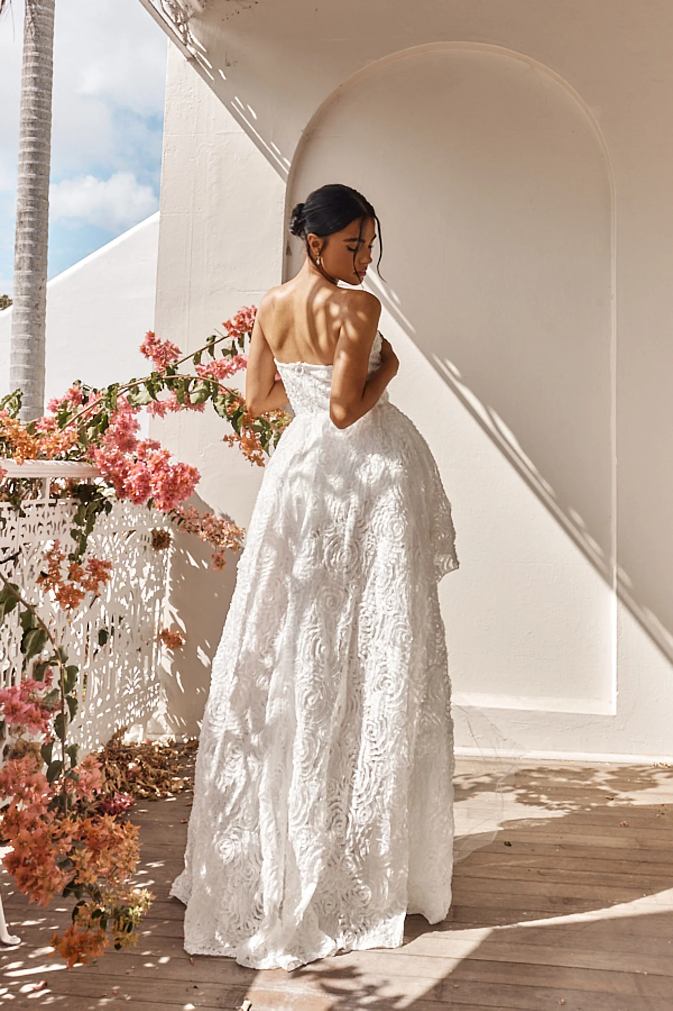 Ahava Sweetheart Applique Satin Maxi Dress White