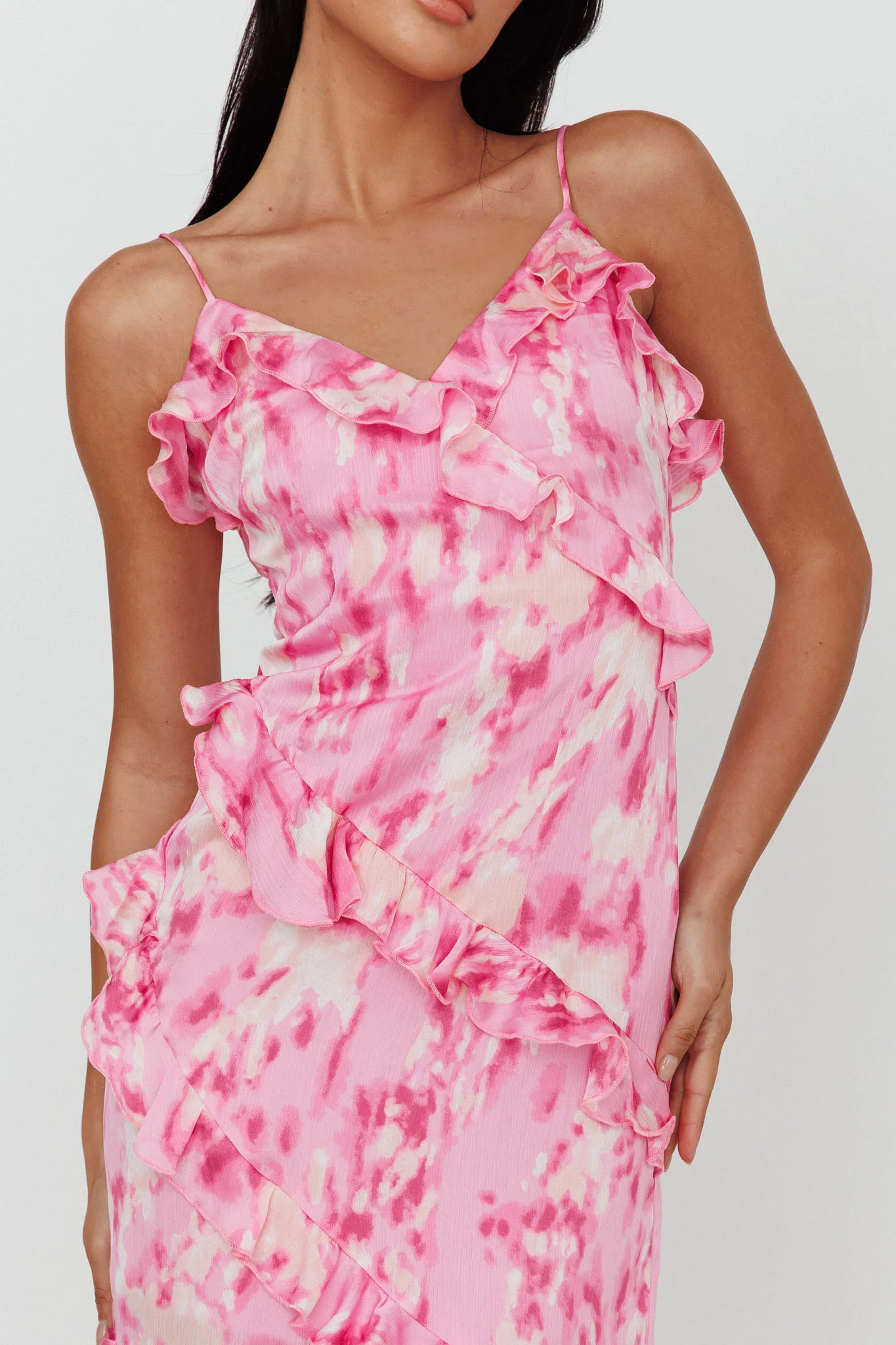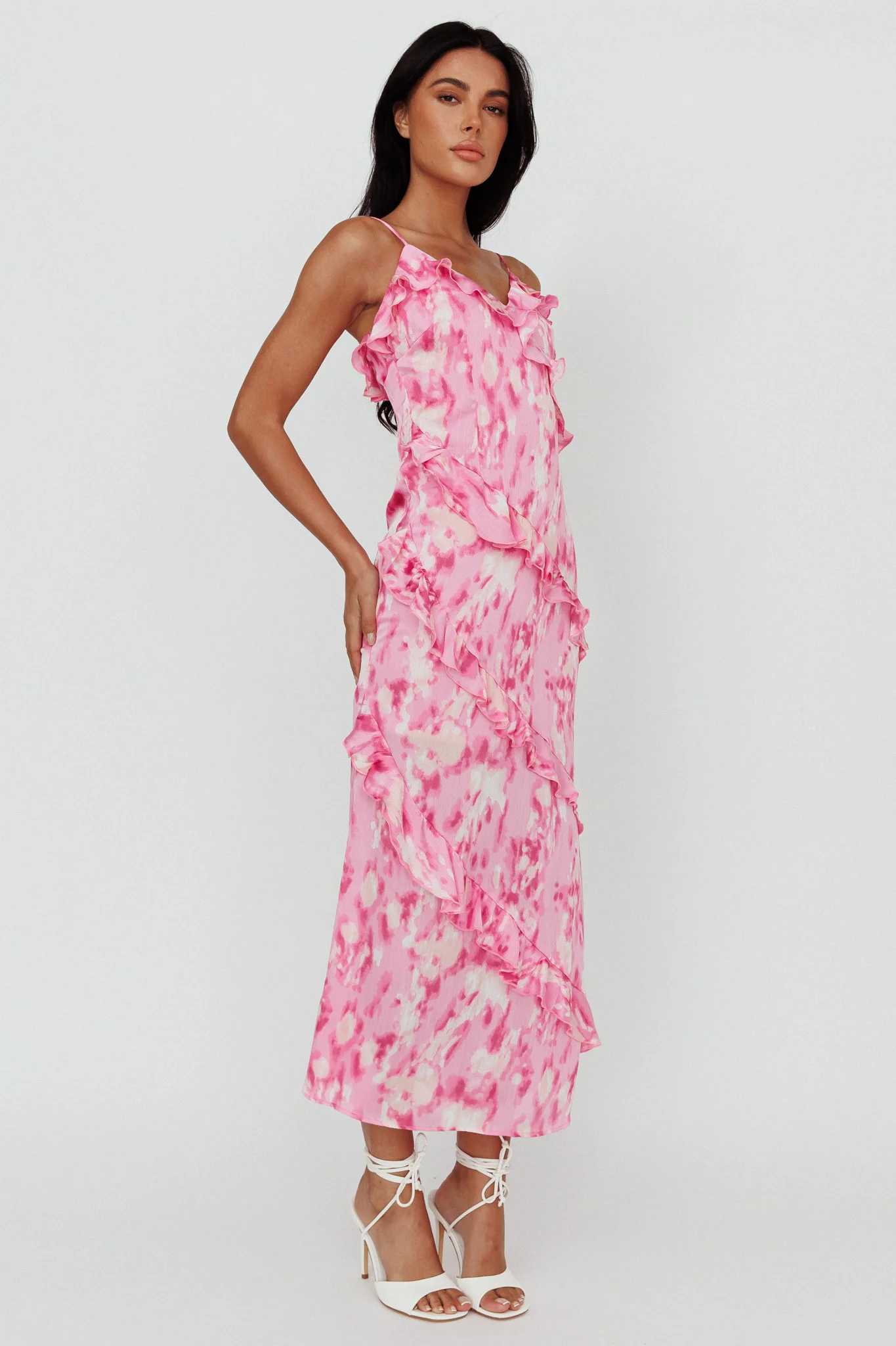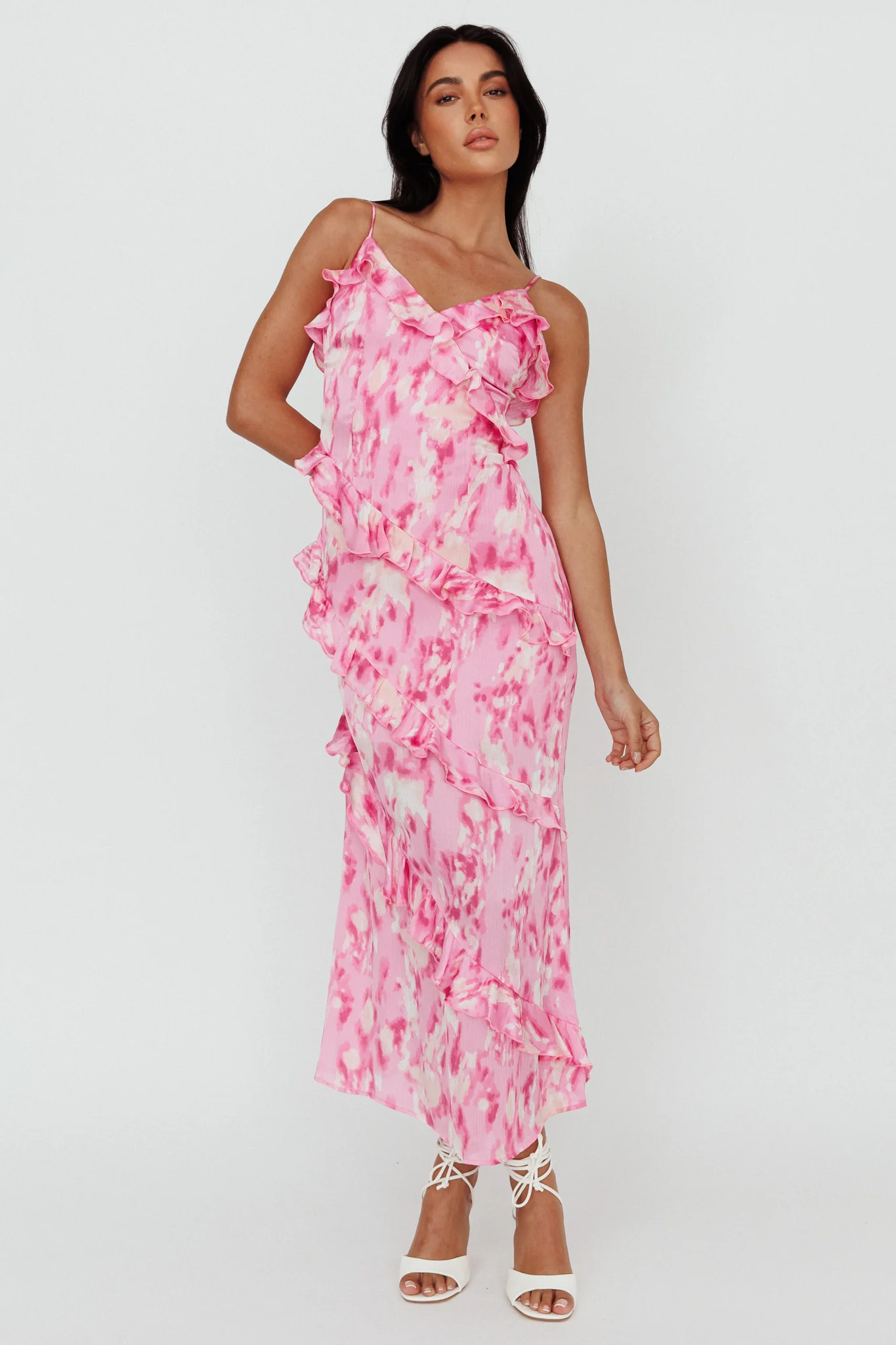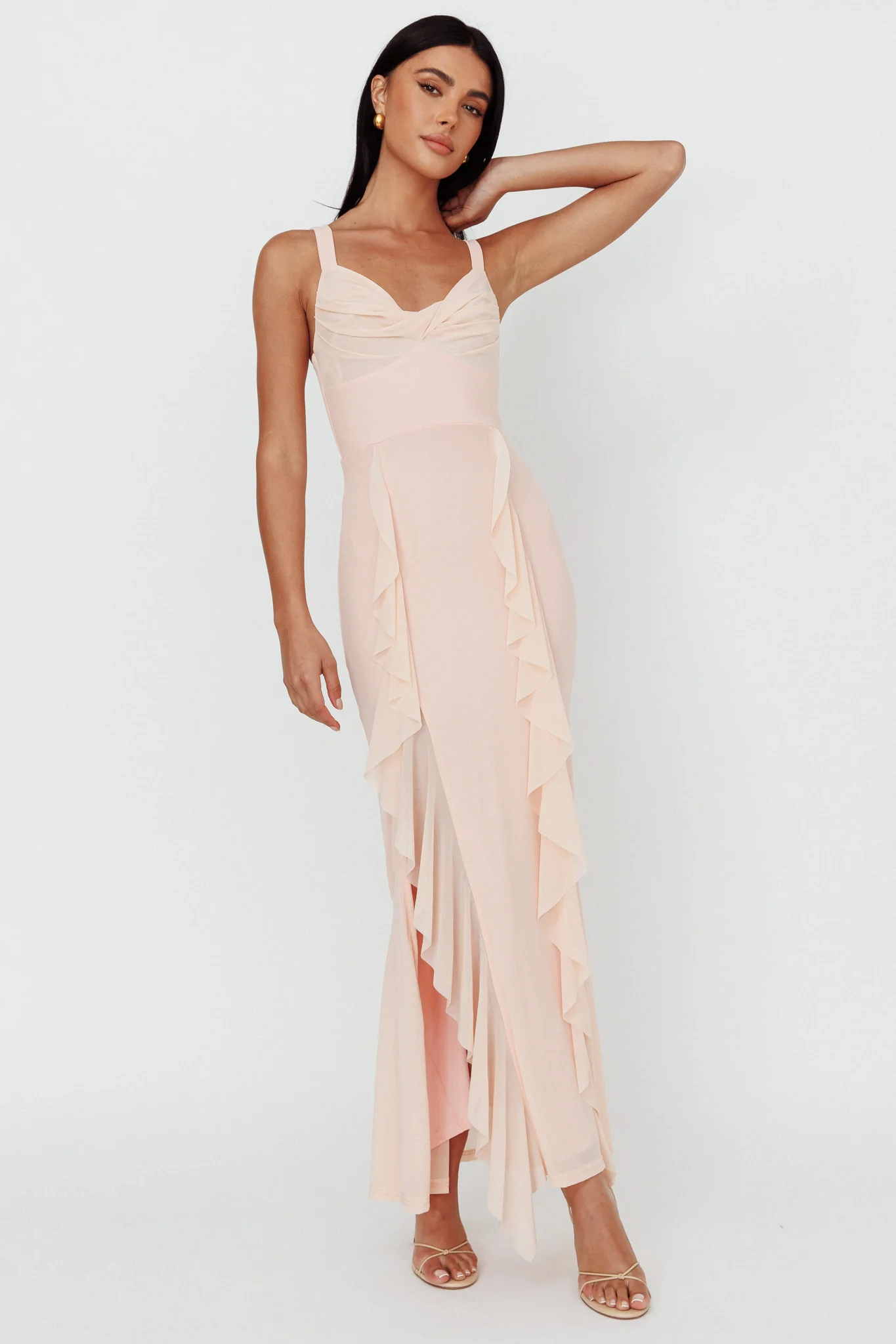 Hollianna Ruffle Trim Split Maxi Dress Blush