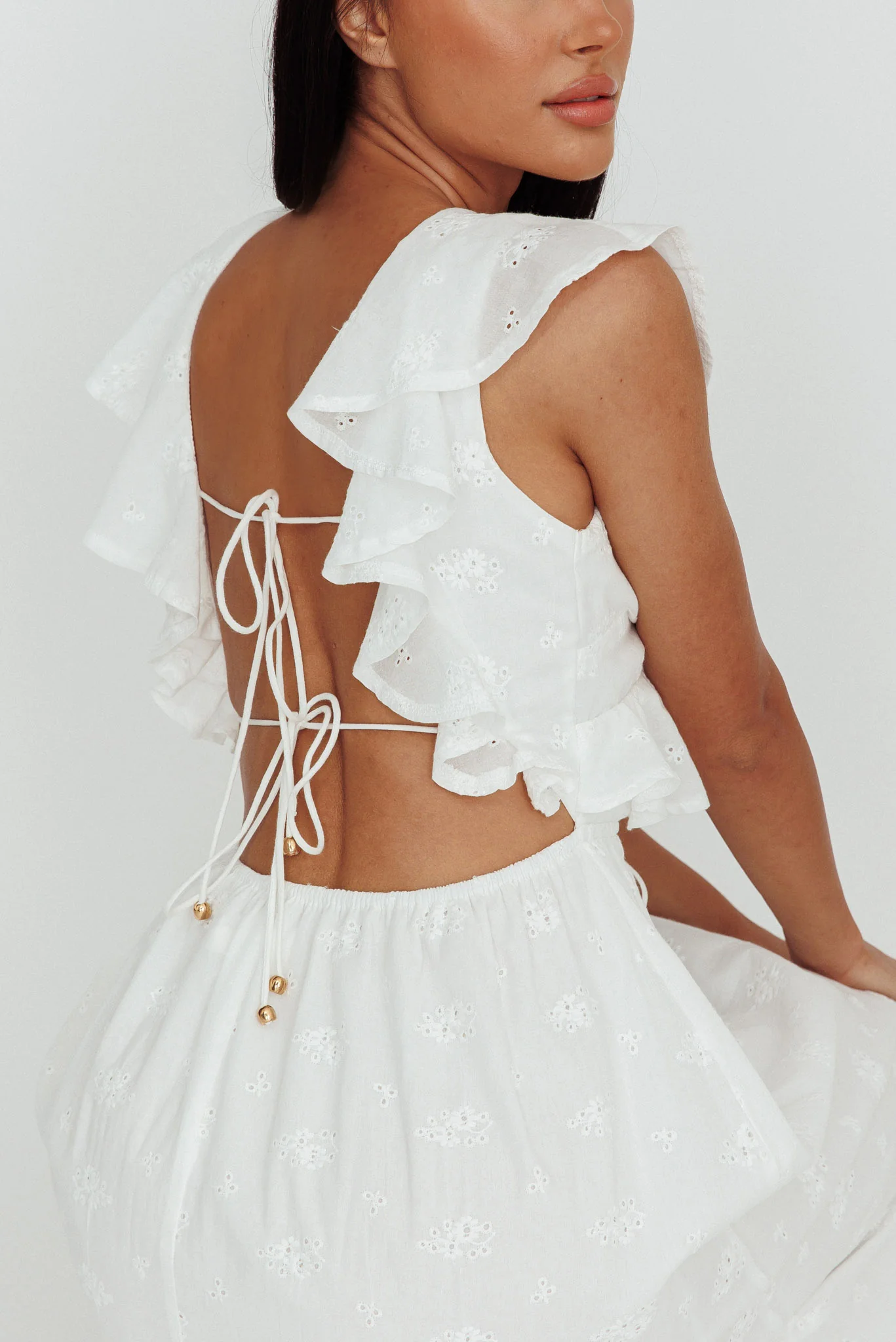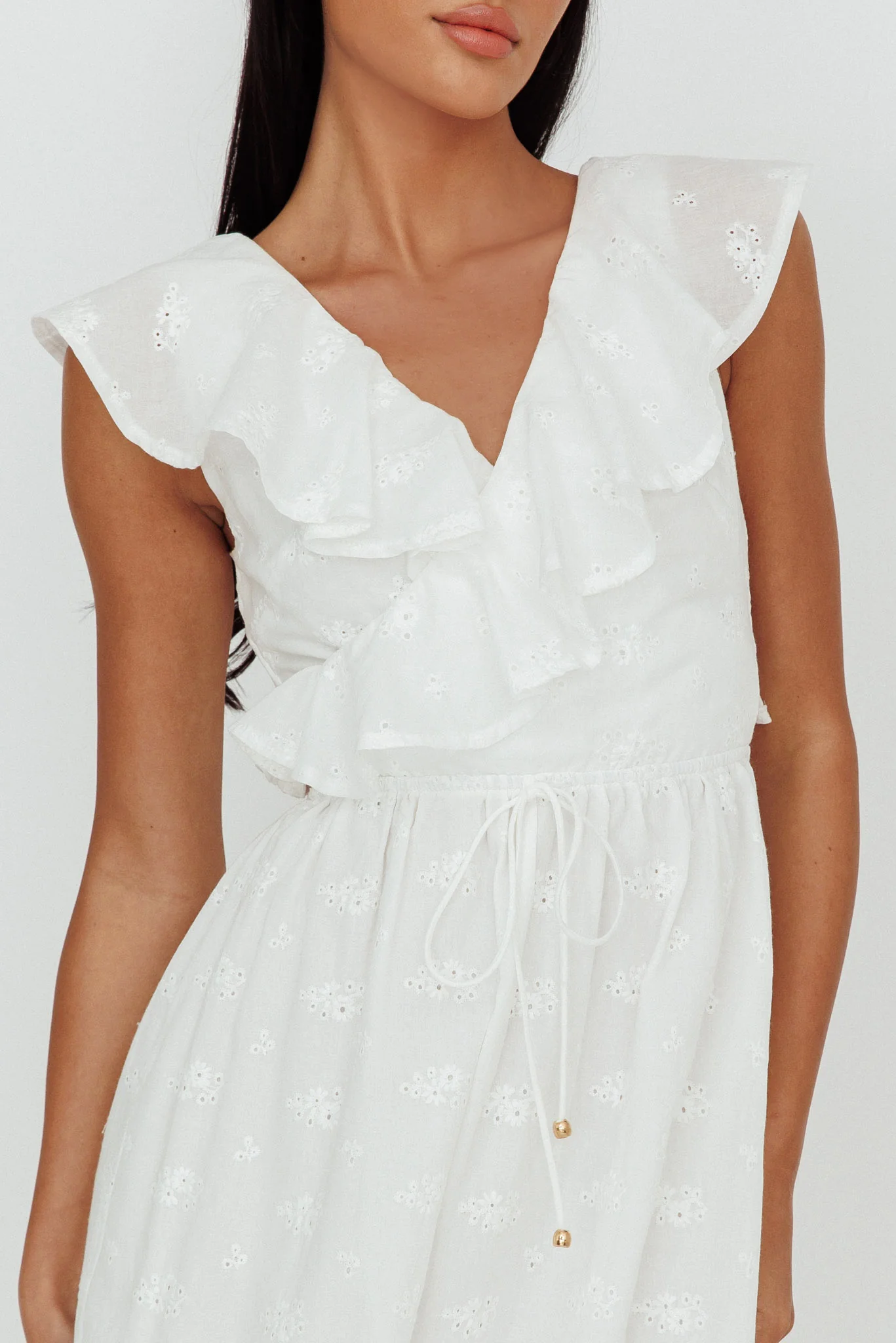 Summer Dawn Ruffle Trim Ruched Mini Dress White