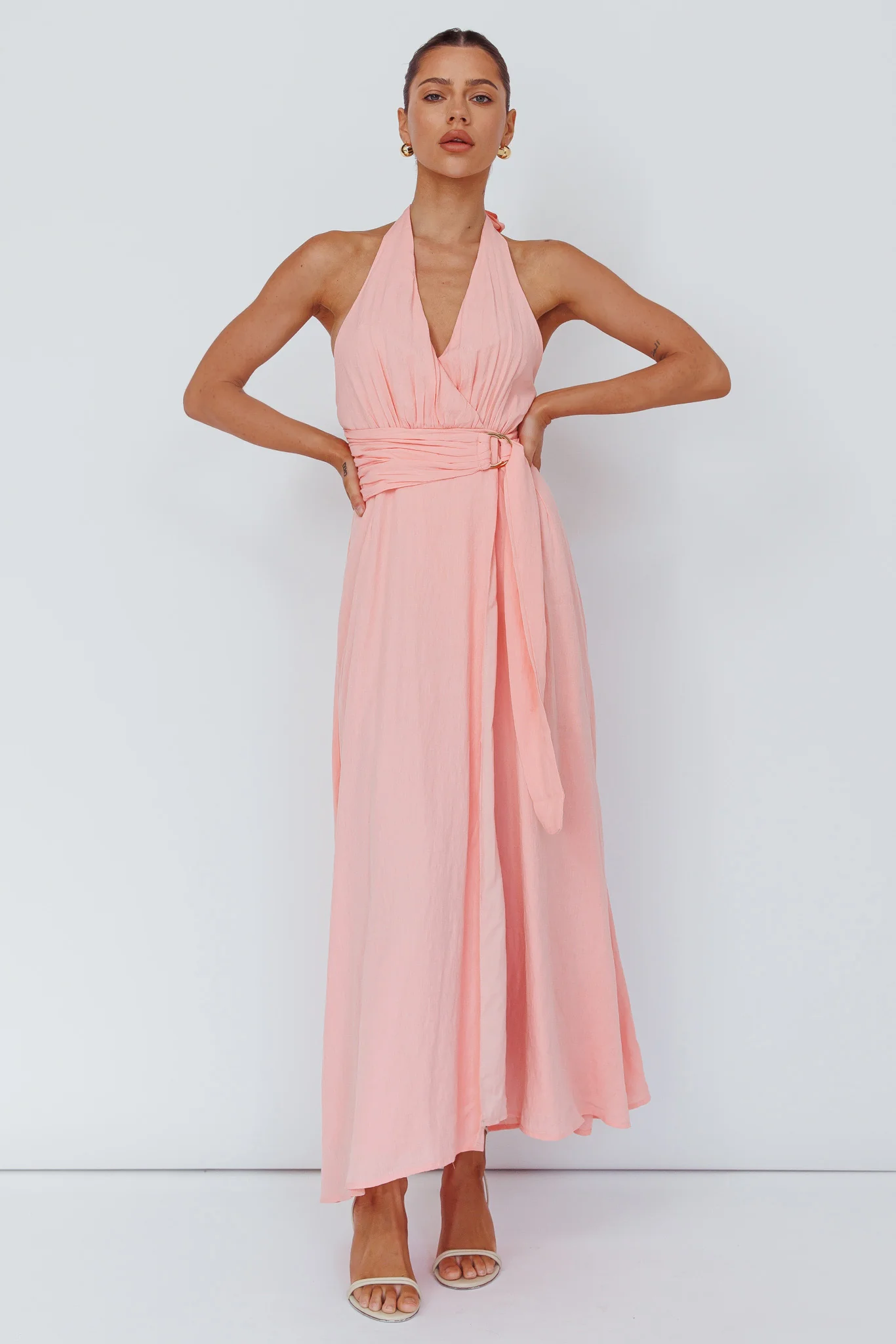 Spring Feels Halterneck Belt Maxi Dress Peach