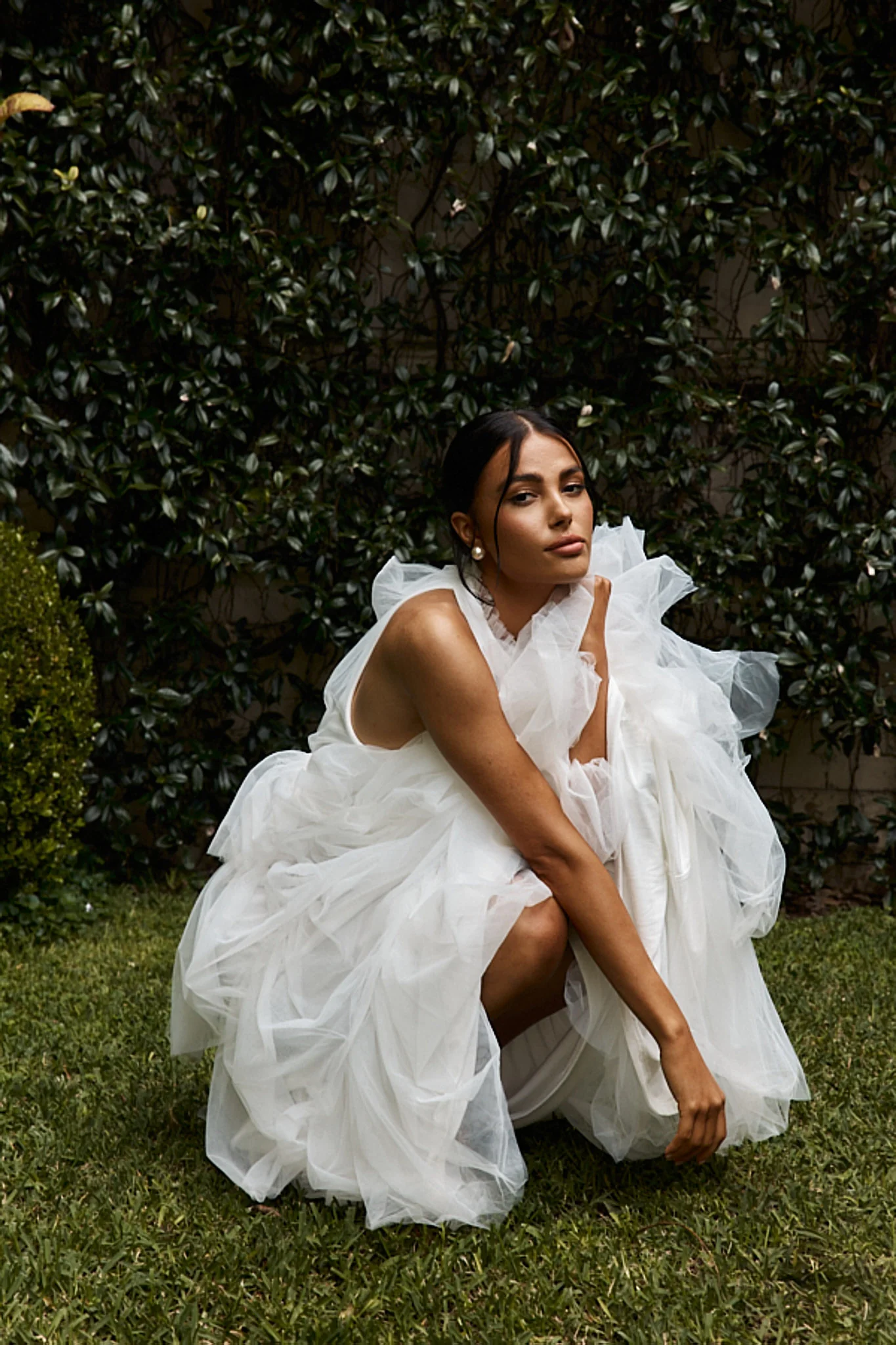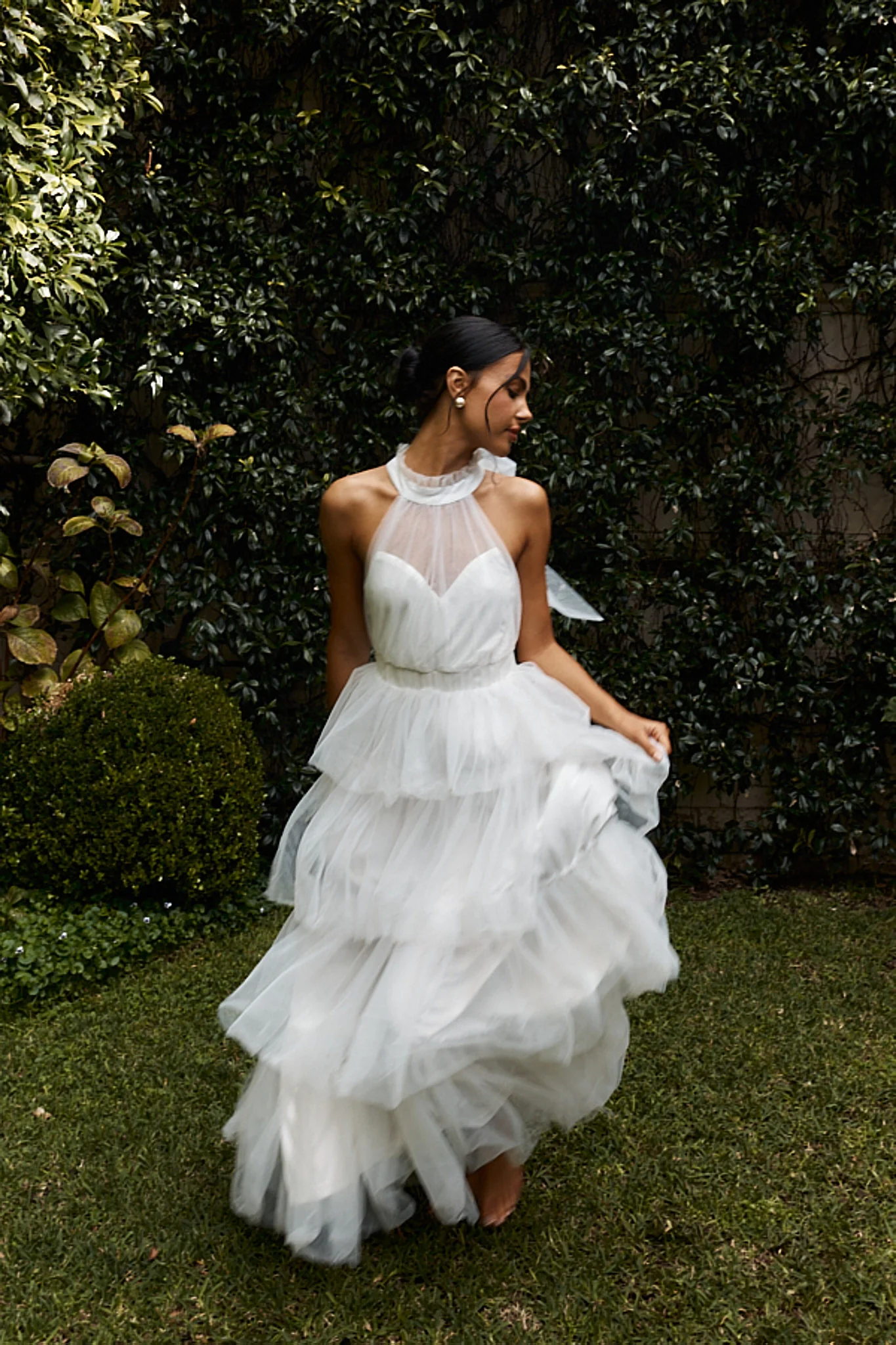 May Rose Off-Shoulder Tulle Midi Dress Off White