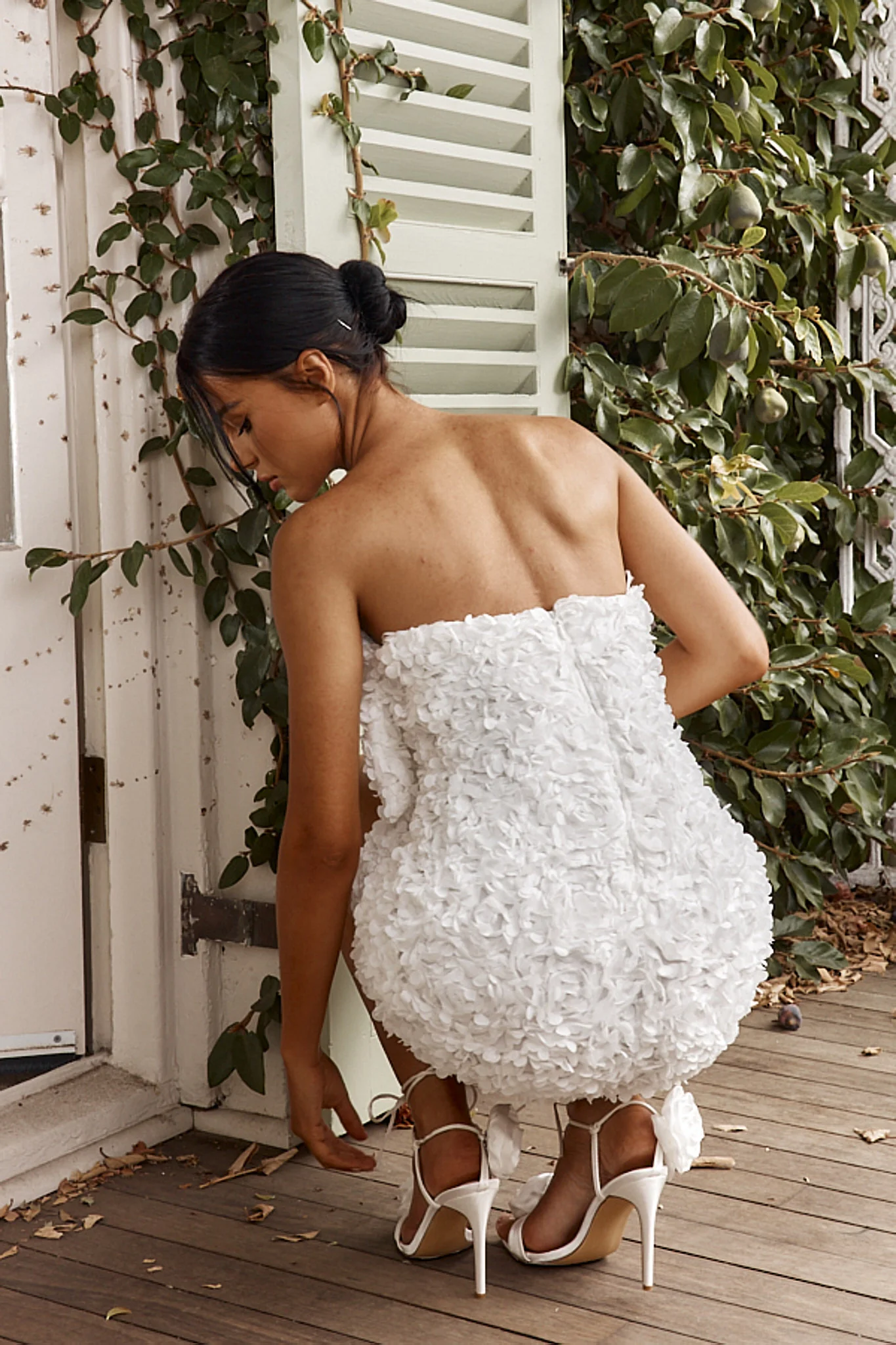 Ma Cherie Bow Bust Embellished Mini Dress White