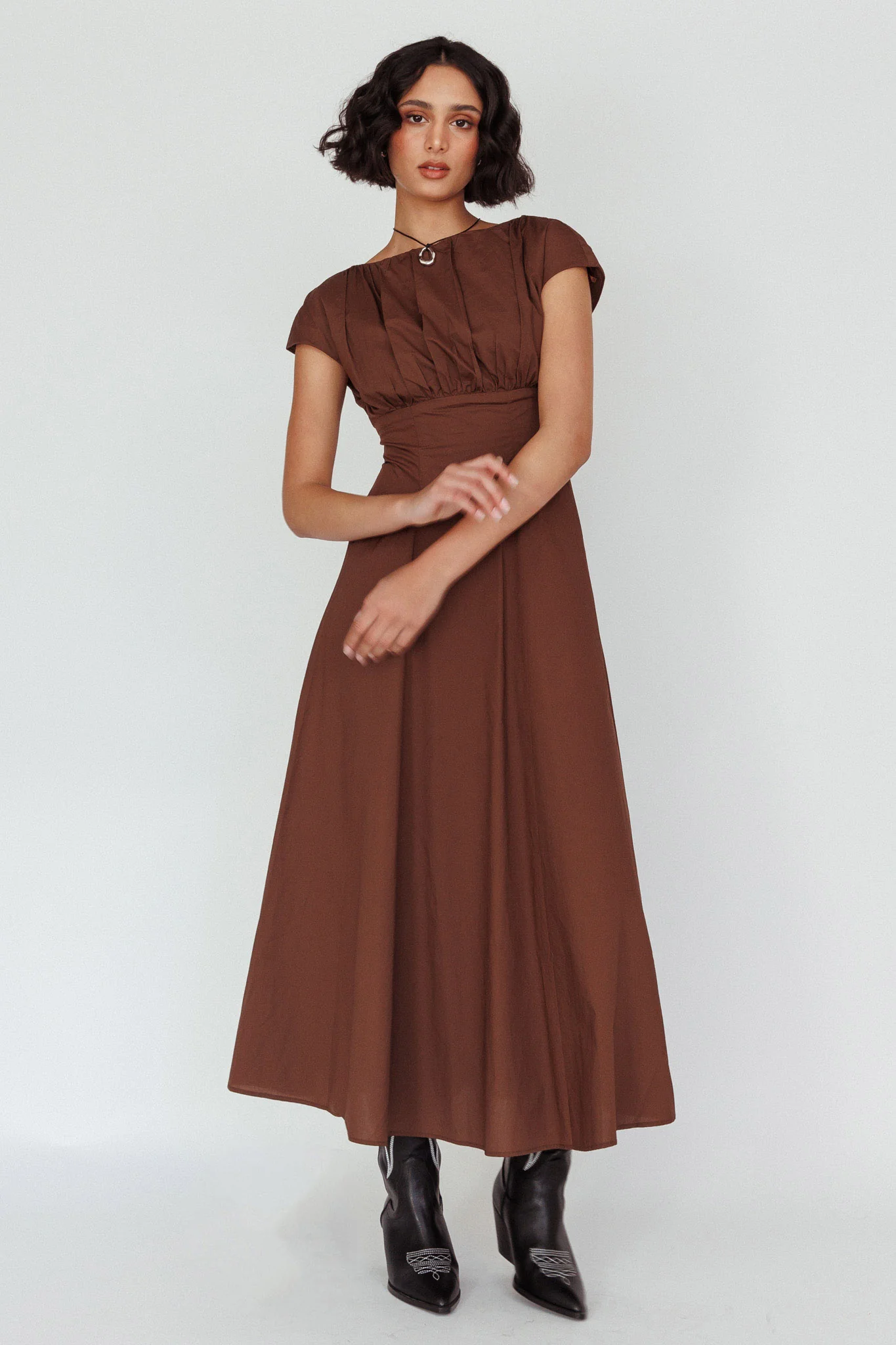 Derry Cap Sleeve A-line Maxi Dress Chocolate