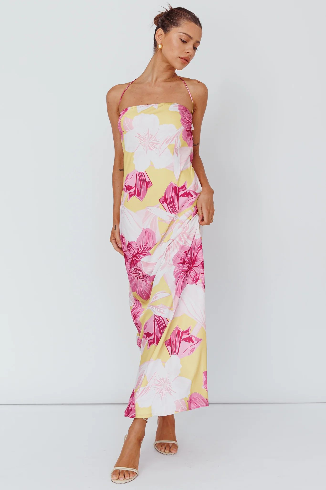 Jacquelynne Halter Cowl Back Maxi Dress Pink