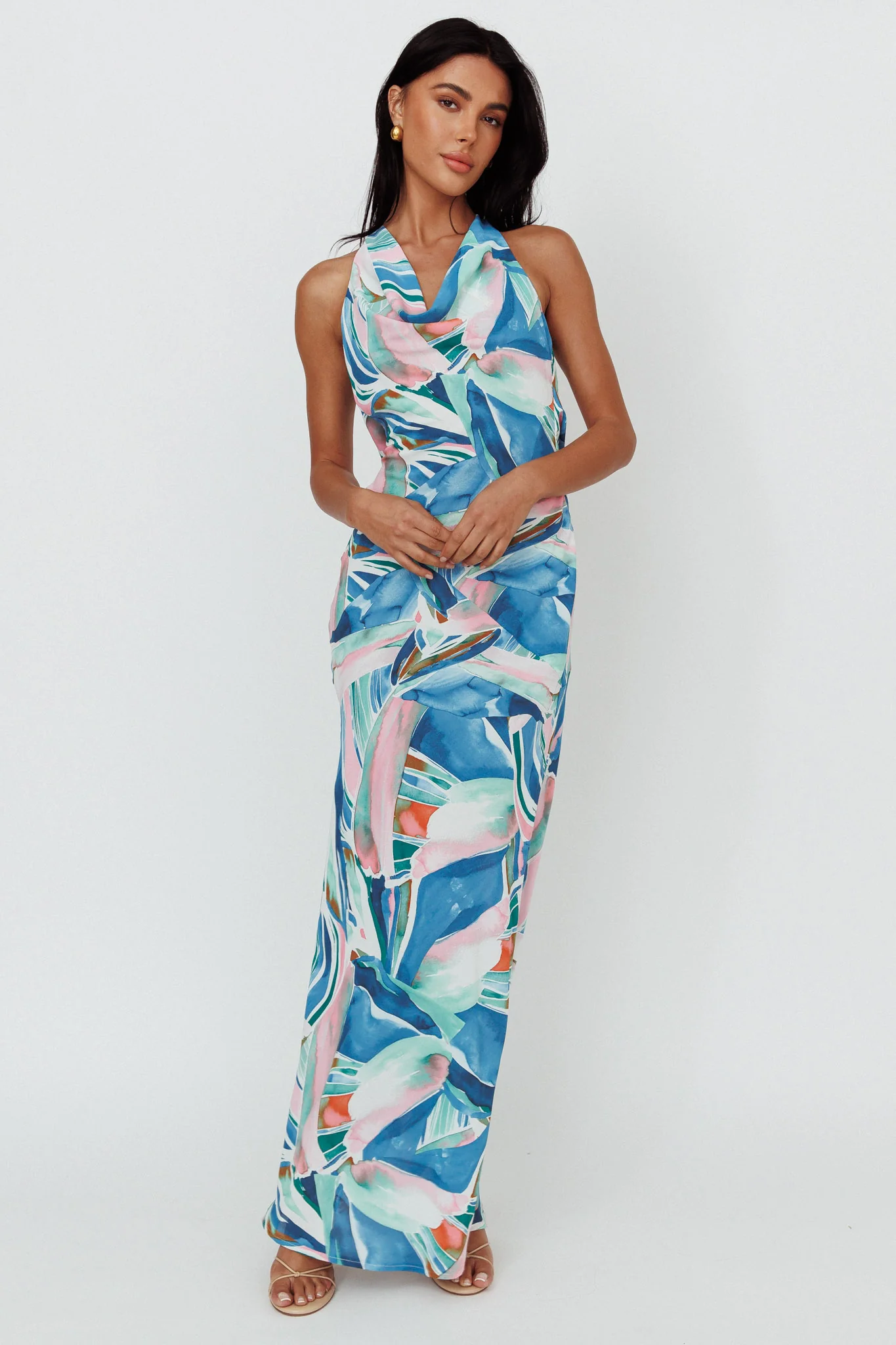 Cassiopeia Open Back Maxi Dress Abstract Blue