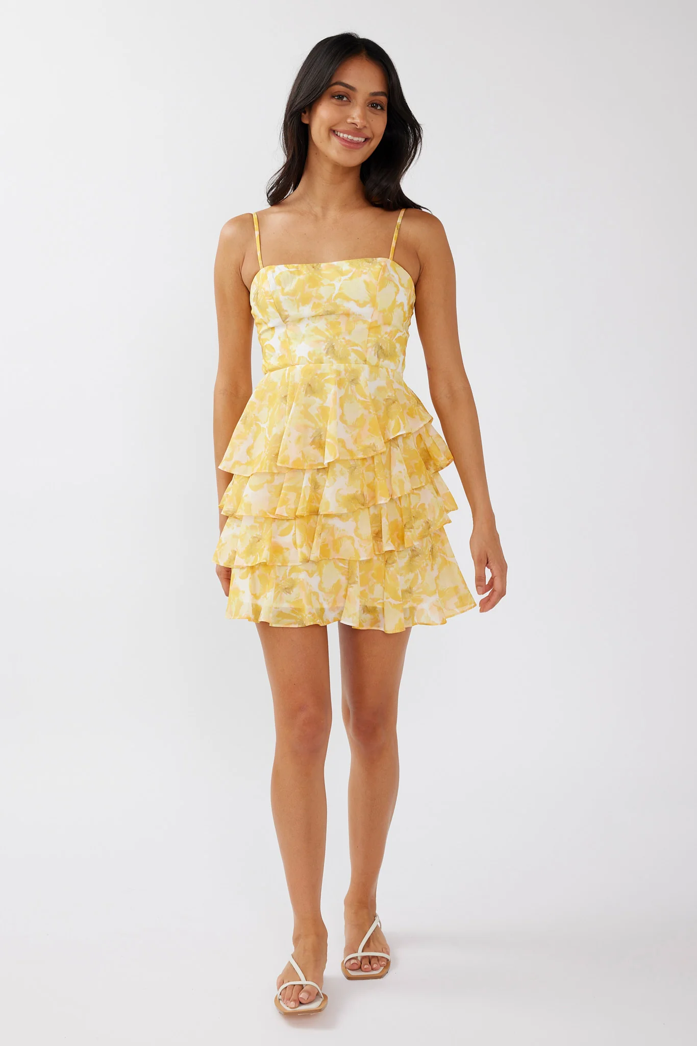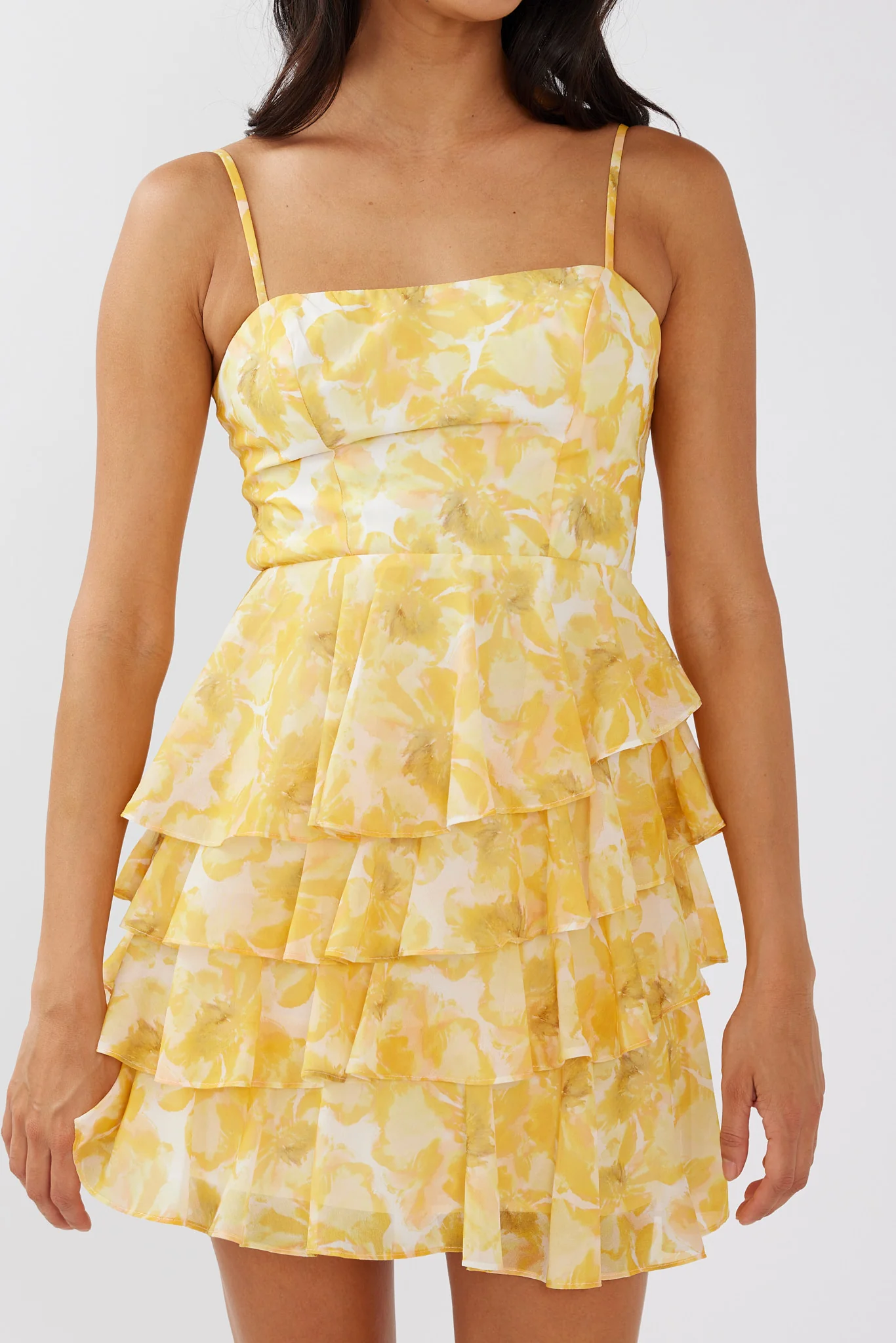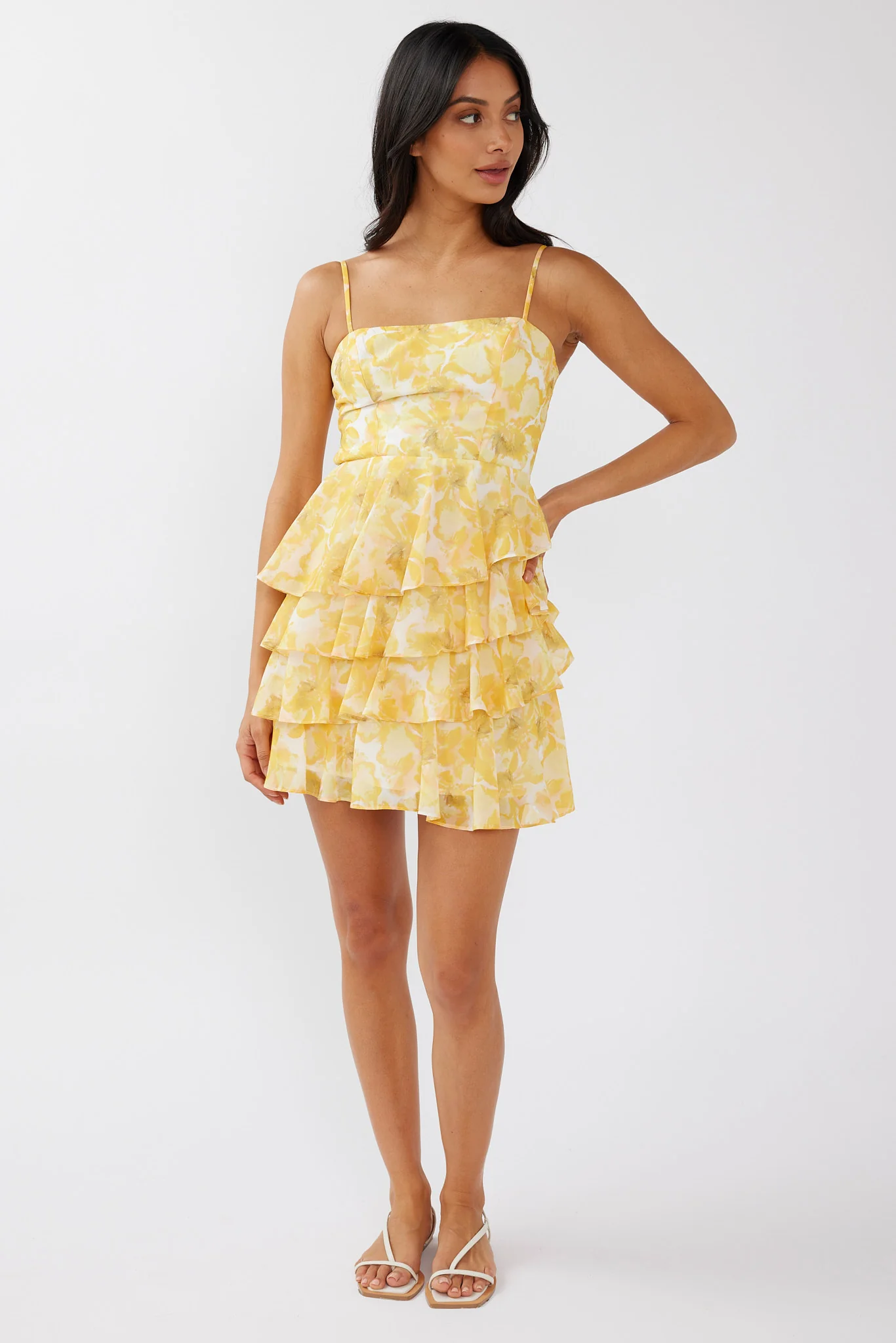 Lennox Elastic Back Bodycon Dress Floral Yellow
