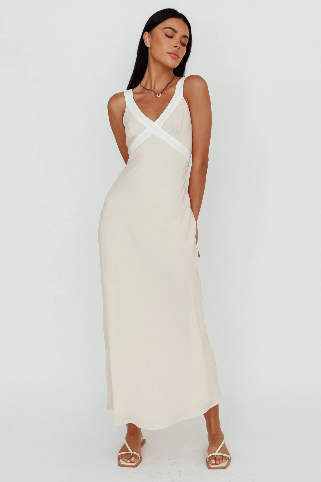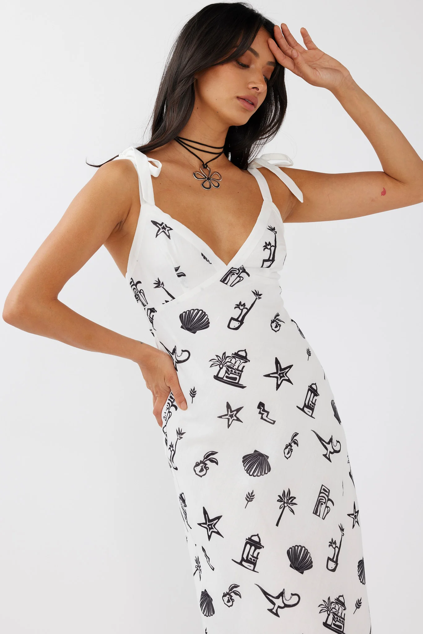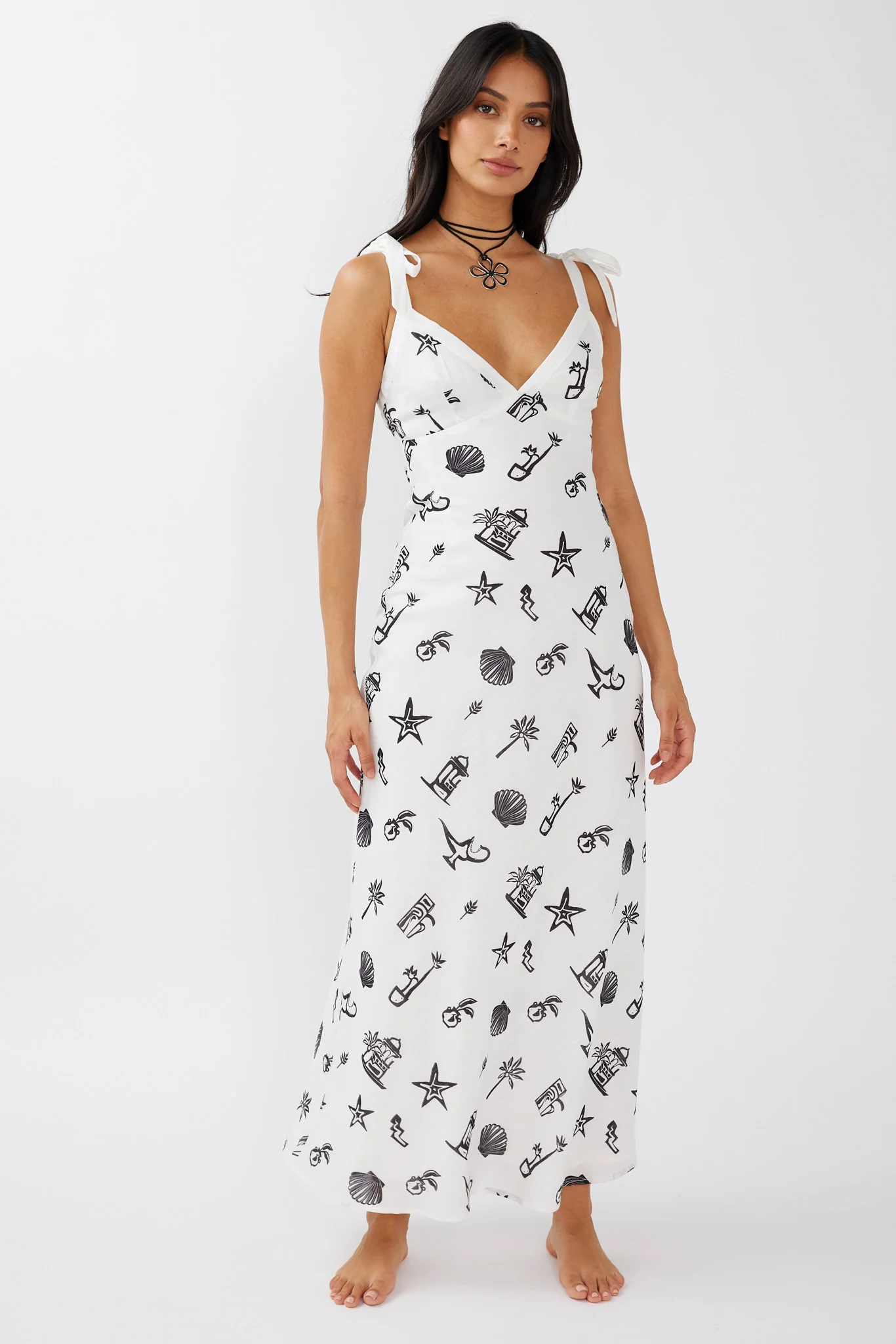Jaya Tied Shoulder Maxi Dress Print Beige