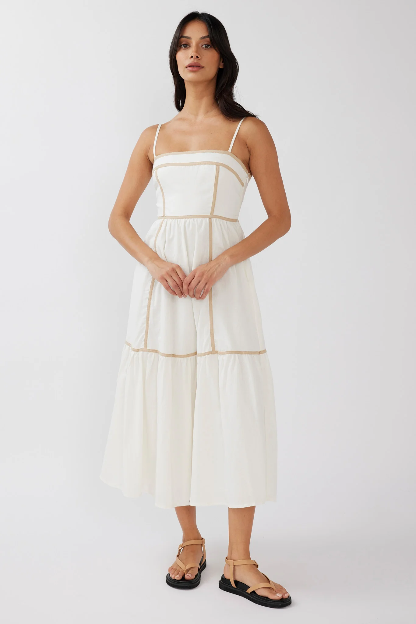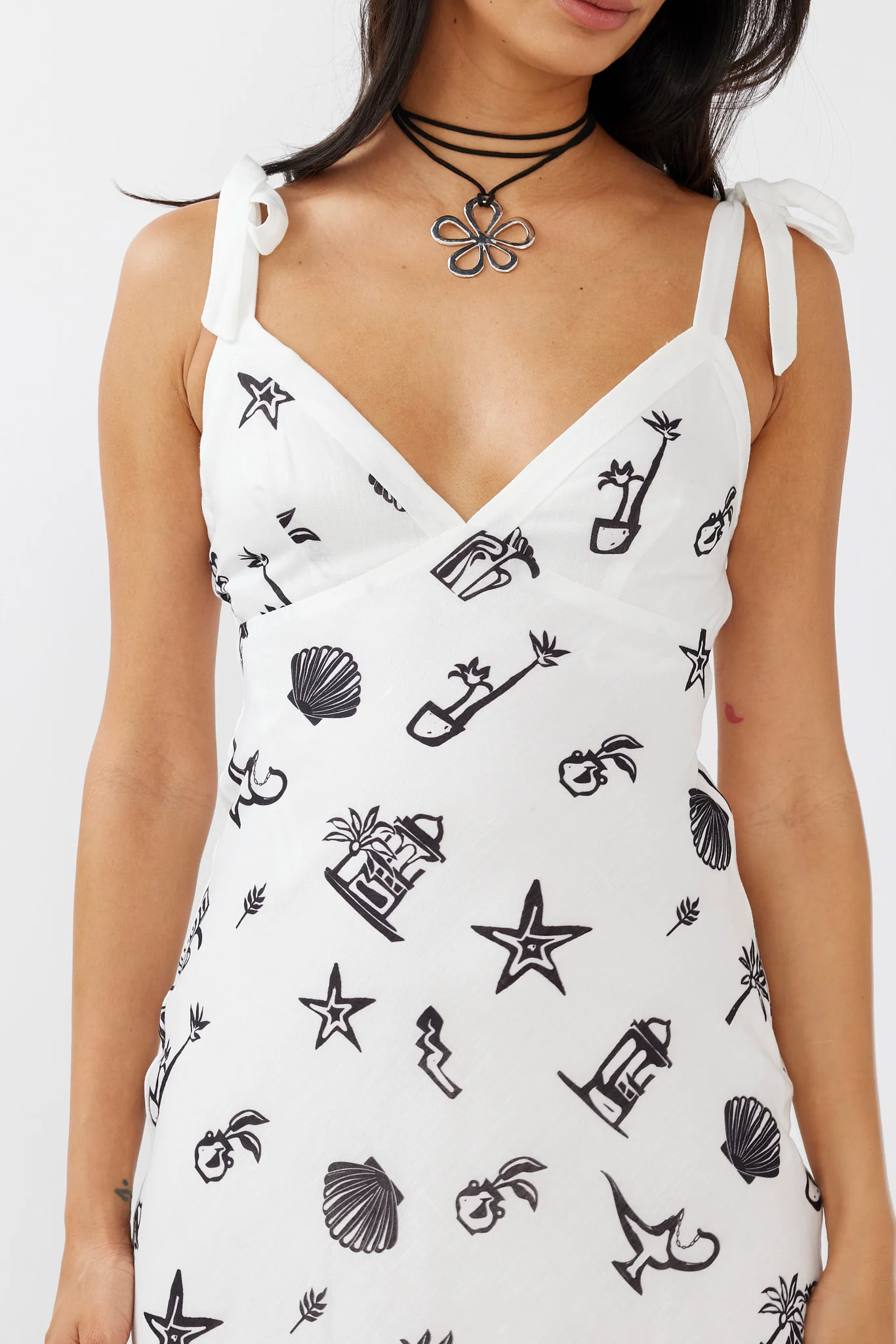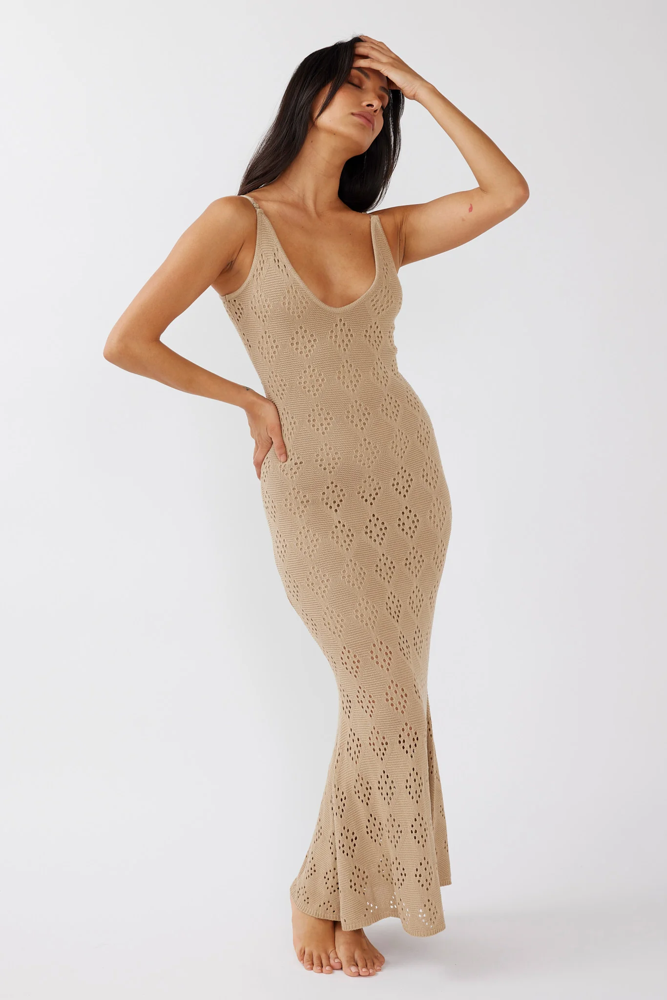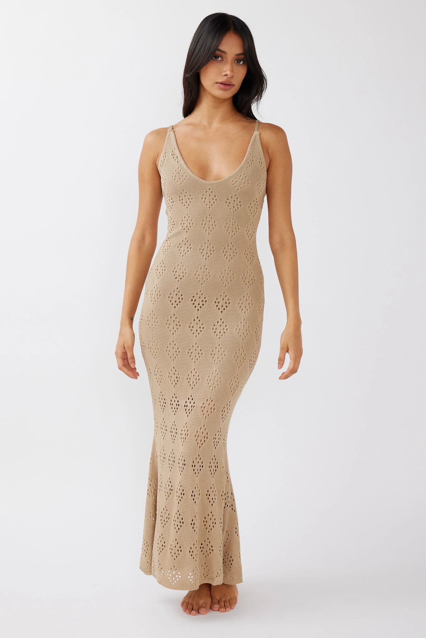 Jaya Tied Shoulder Maxi Dress Print Beige