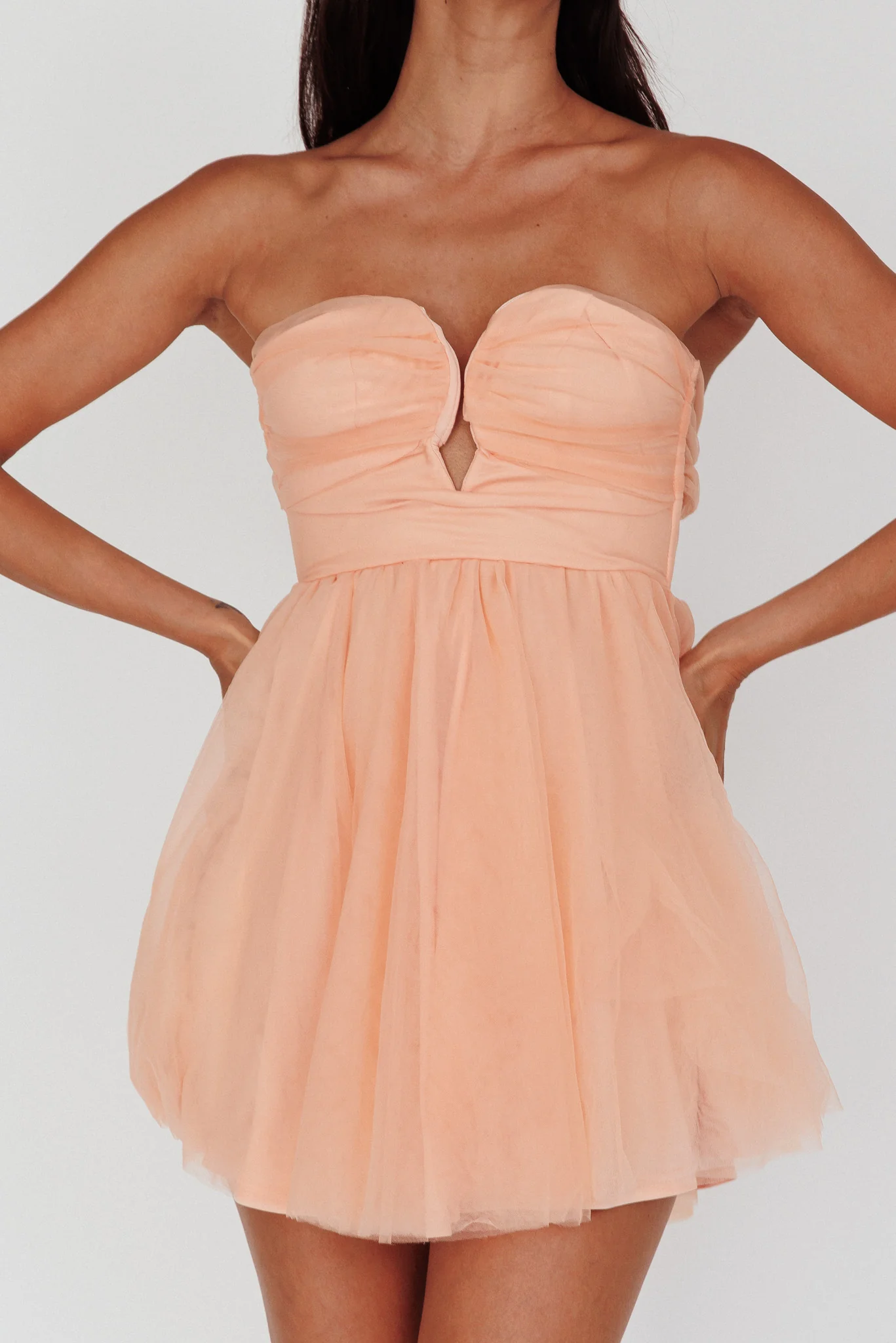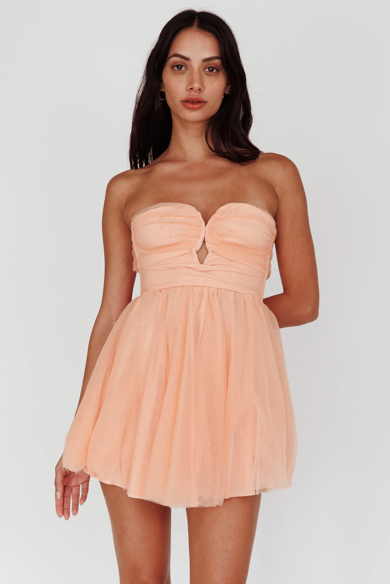 Summer Sweetheart Bow Back Mesh Mini Dress Peach