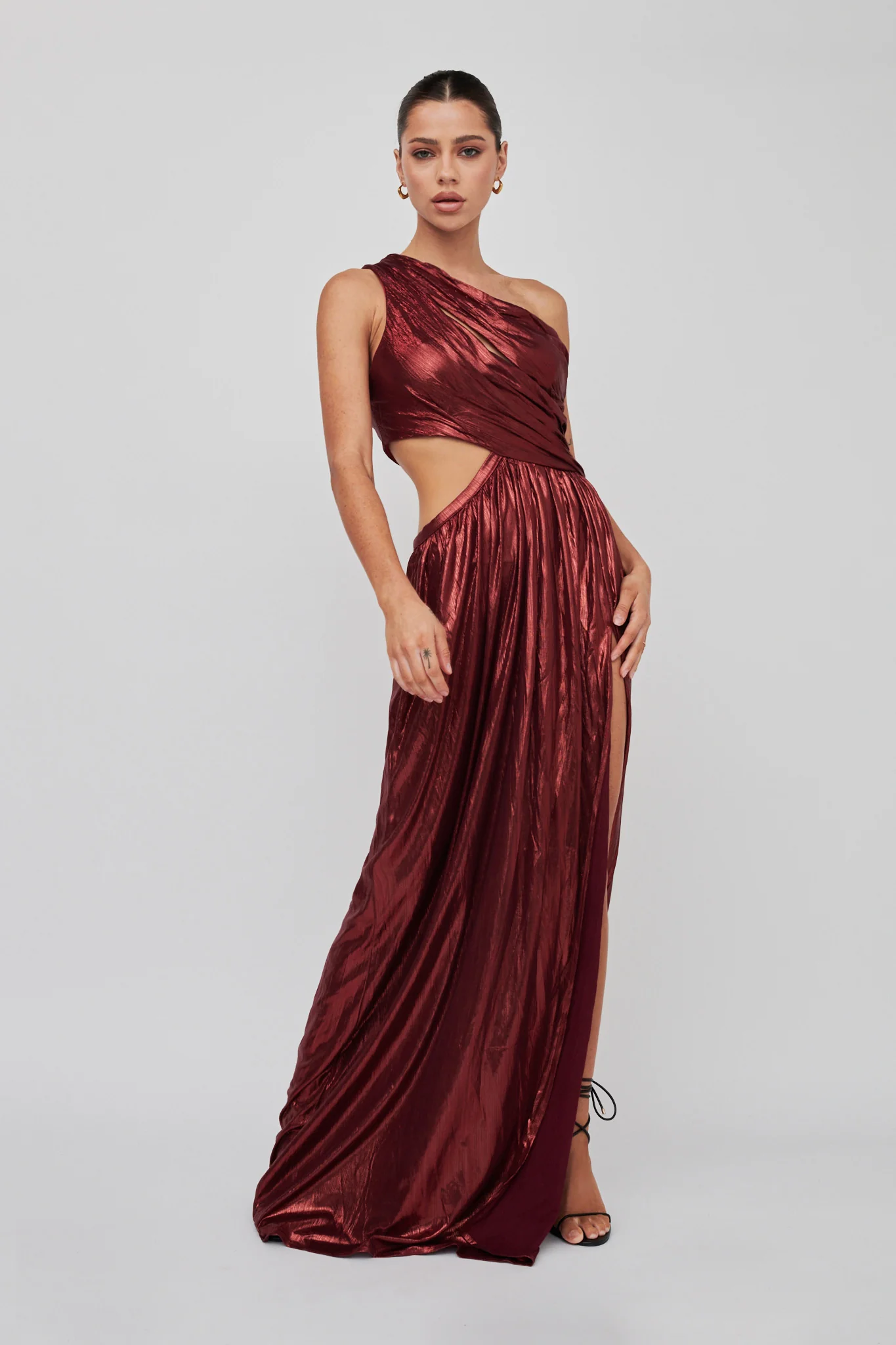 Rosella Halterneck Sequin Maxi Dress Burgundy