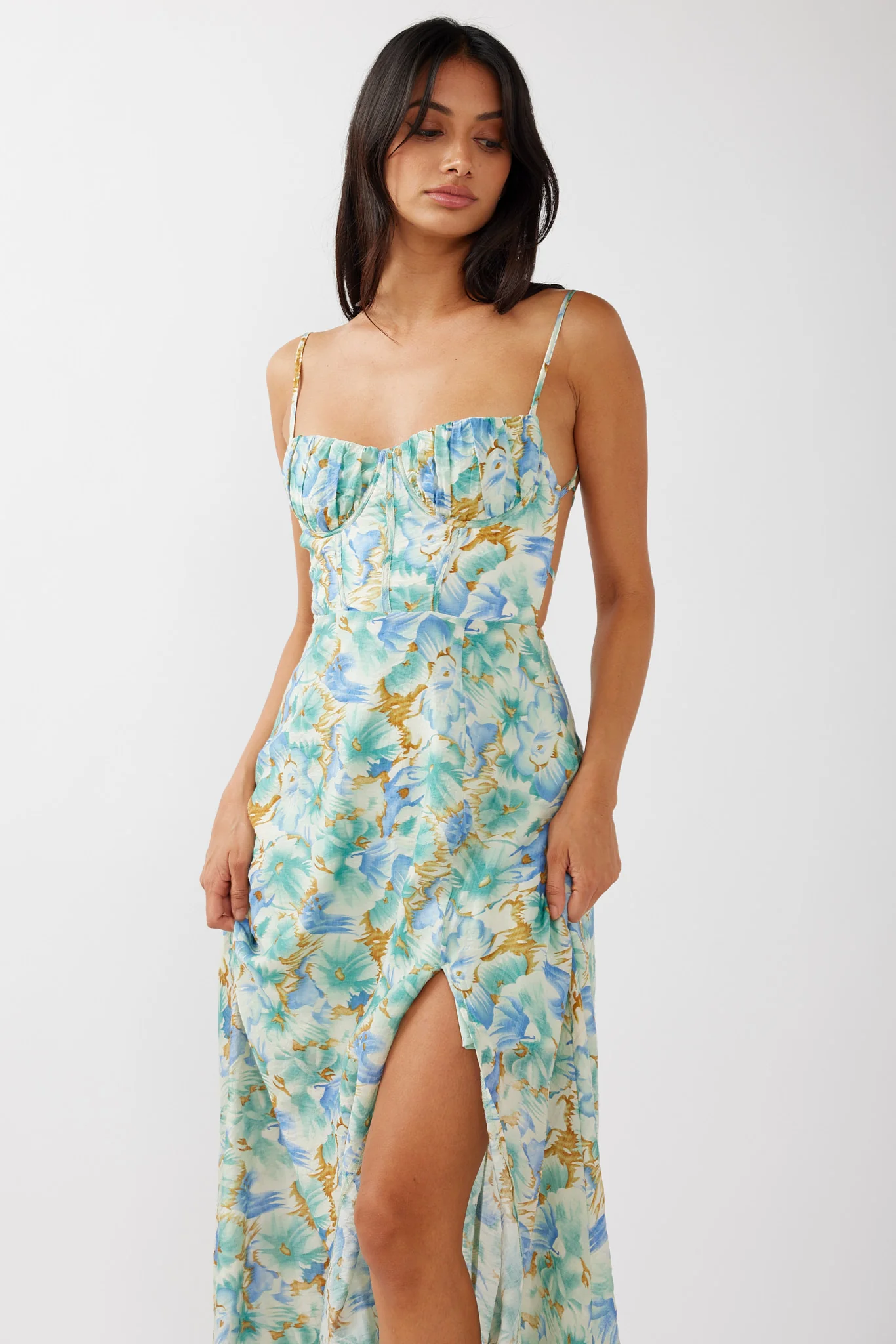 Echoes Tied Back A-Line Midi Dress Floral Green