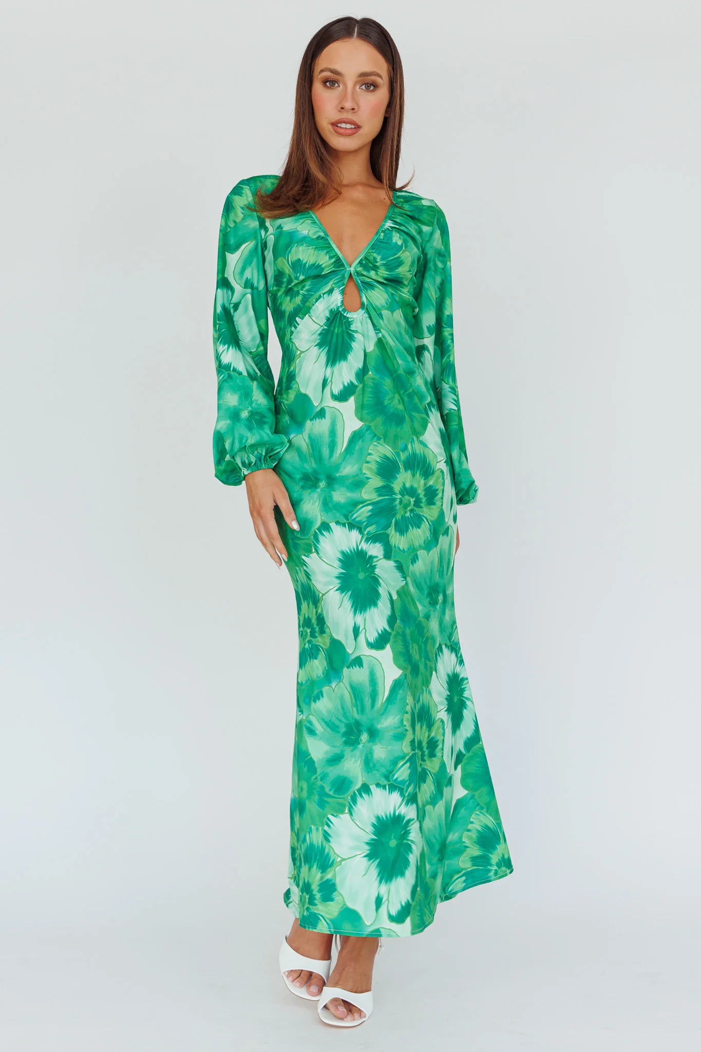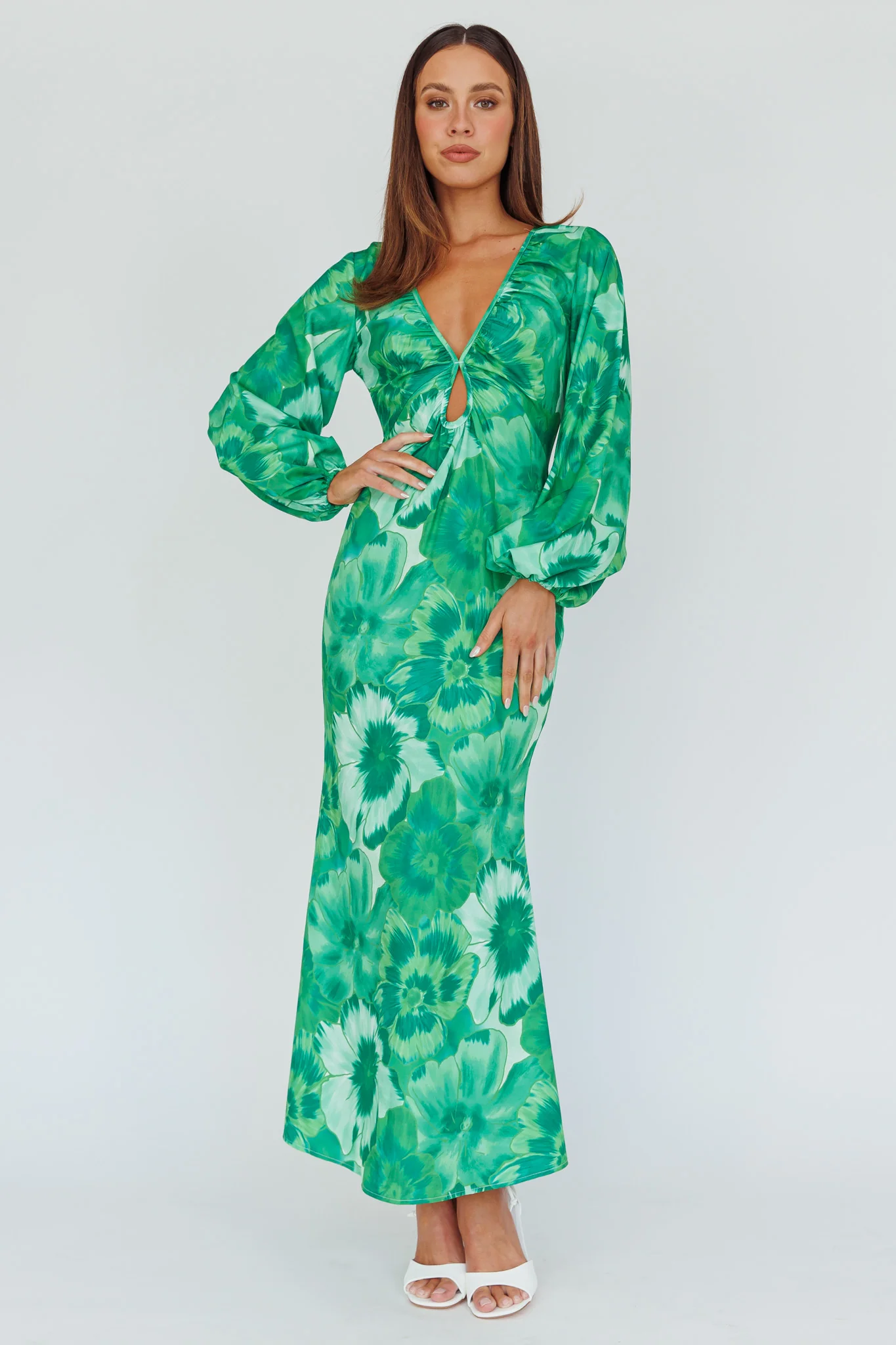 Yessica Balloon Sleeve Midi Dress Floral Green