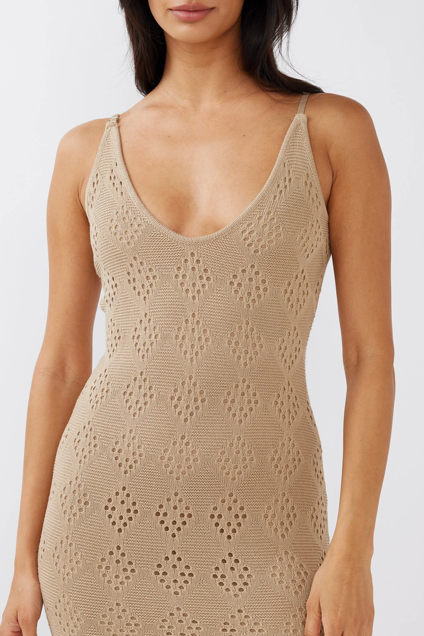 Ximena Tassel Hem Crochet Midi Dress Black/Mocha