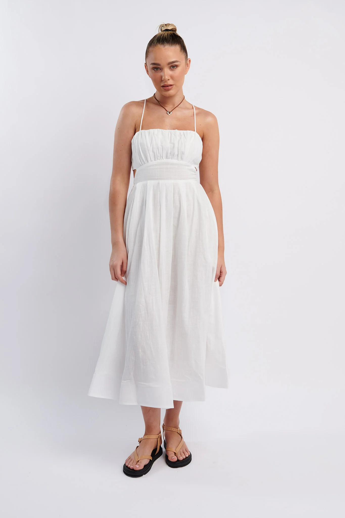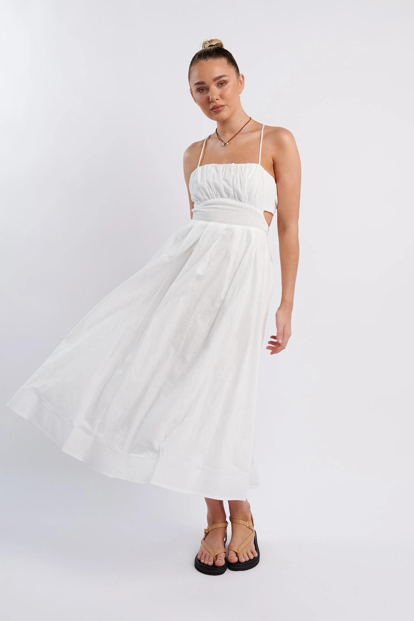 Eyona Cut-Out Back Tie Maxi Dress Print Cream Blue