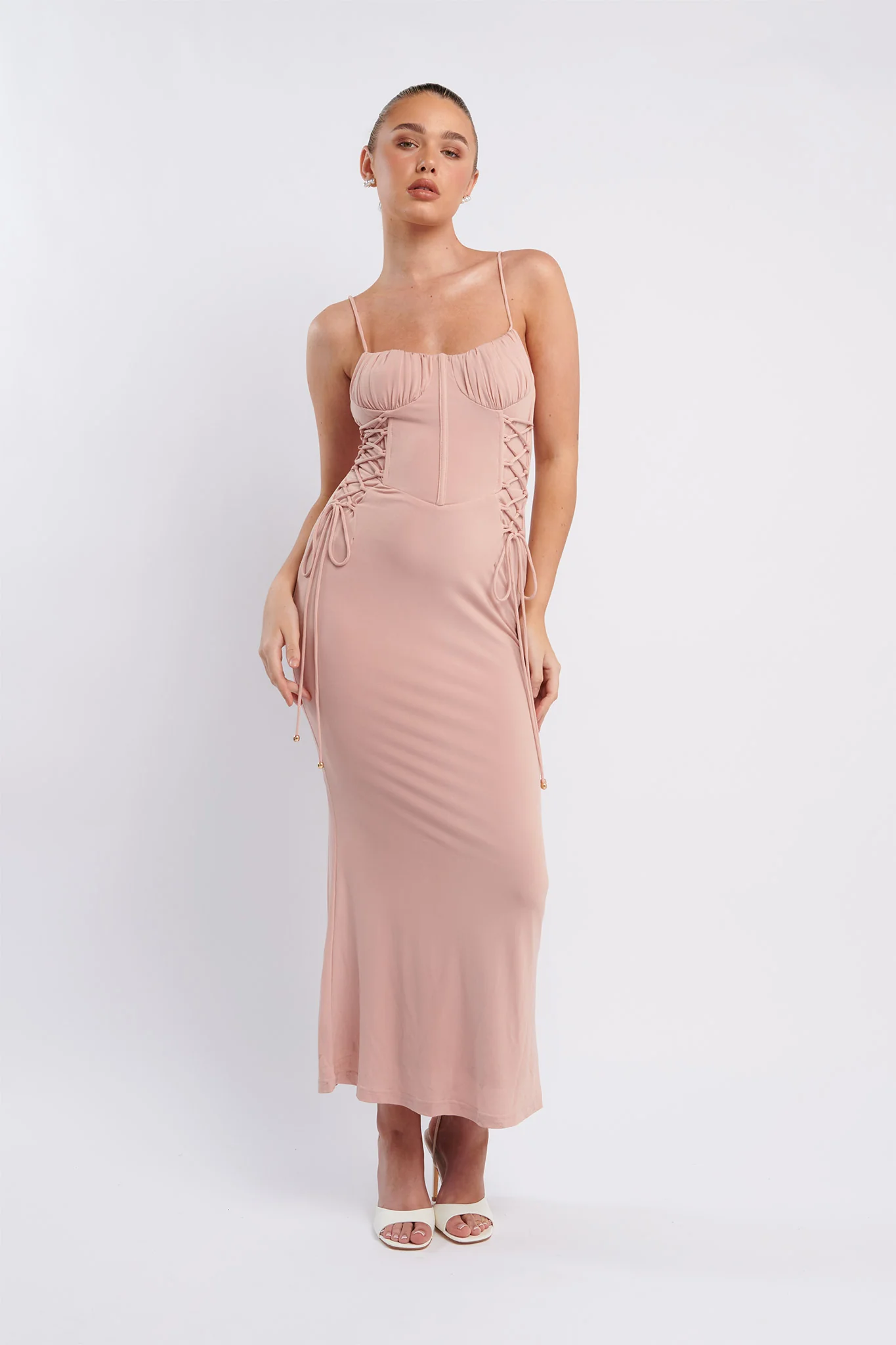 Graziella Laced Corset Midi Dress Nude