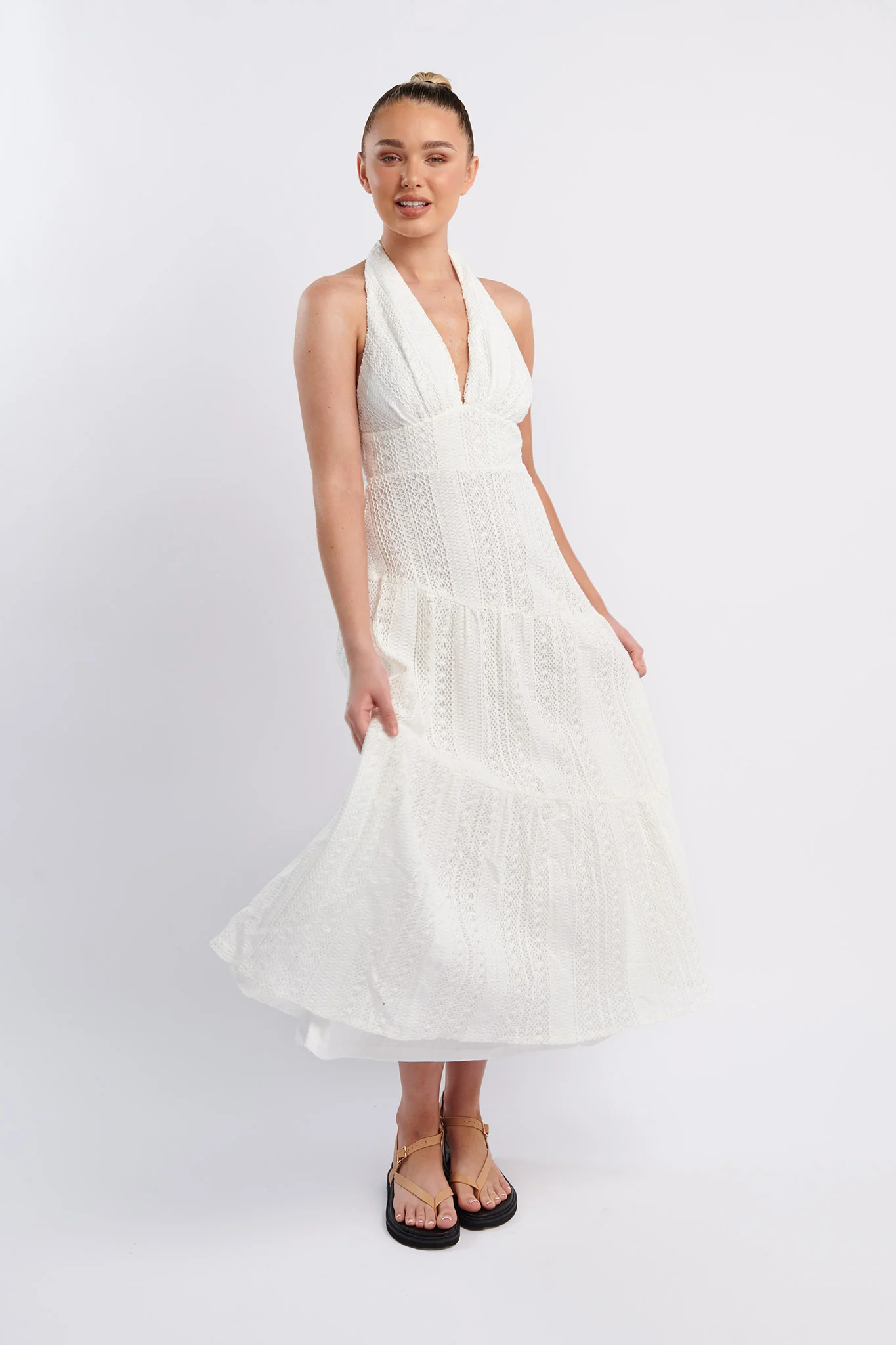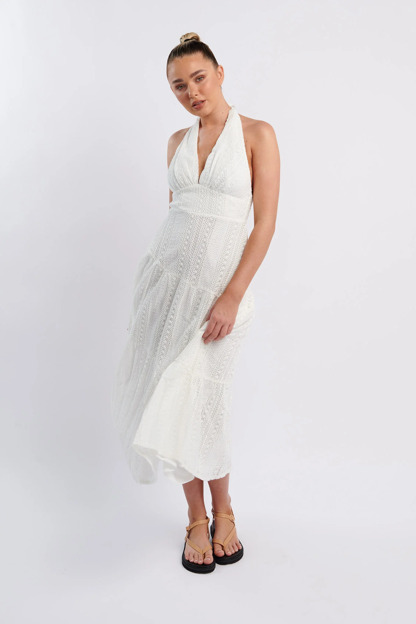 Nolita Halterneck Lace Overlay Maxi Dress White