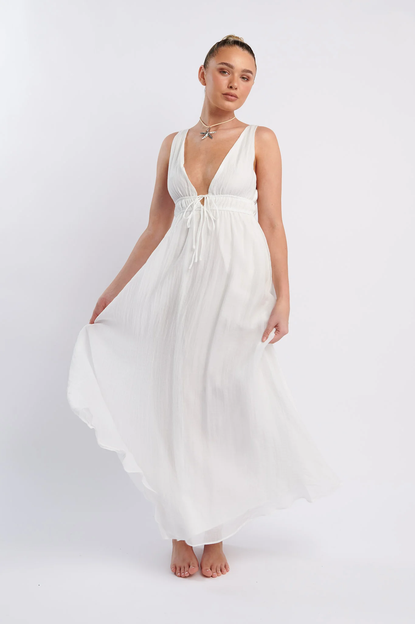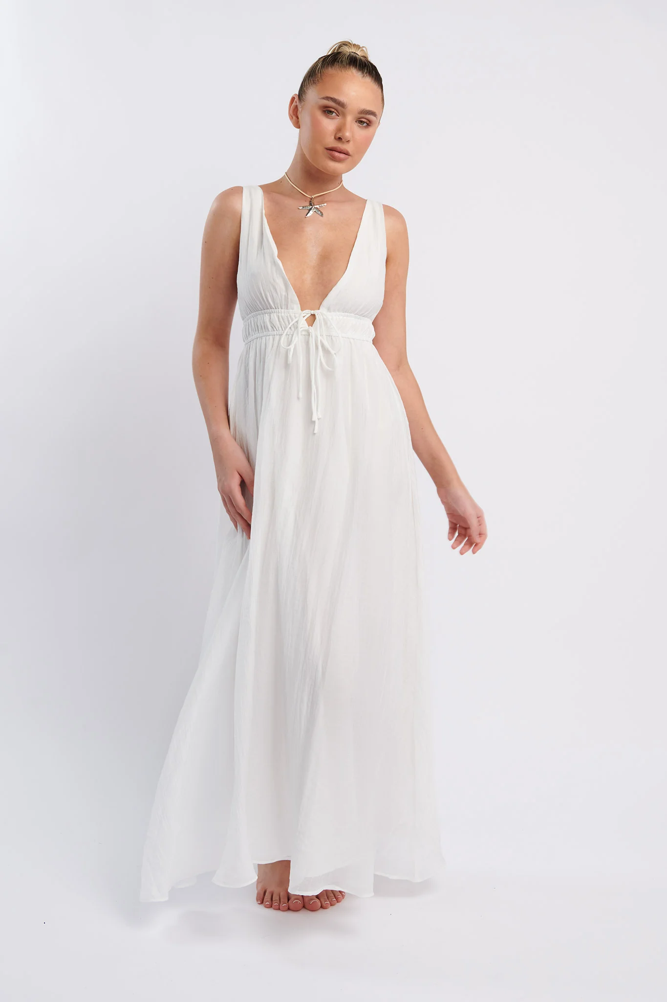 Kylin V-Neck Tied Bust Maxi Dress White