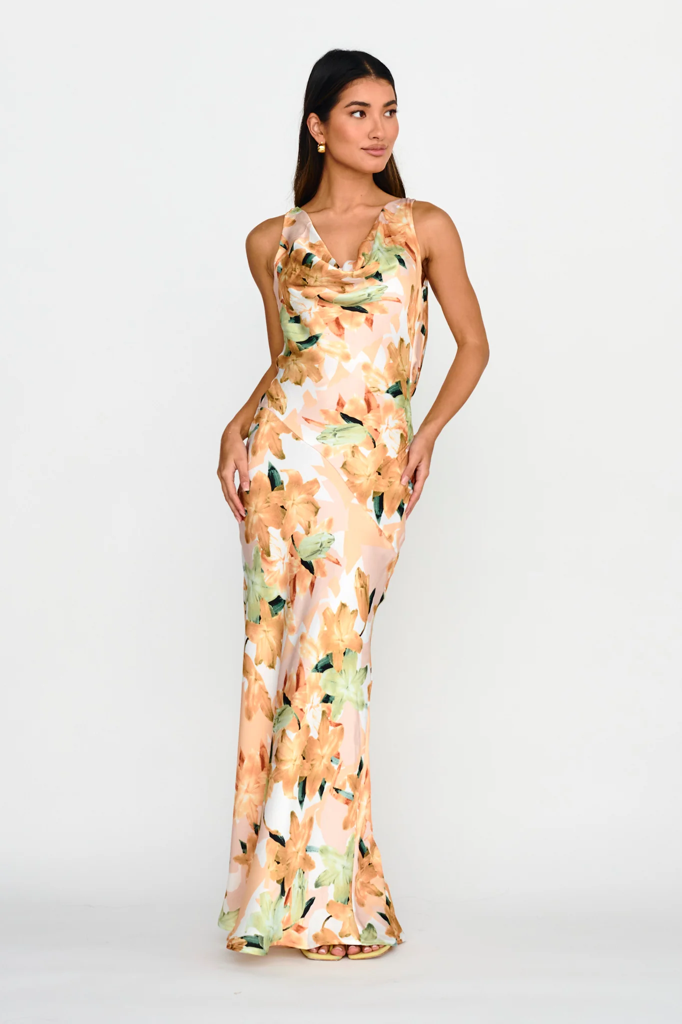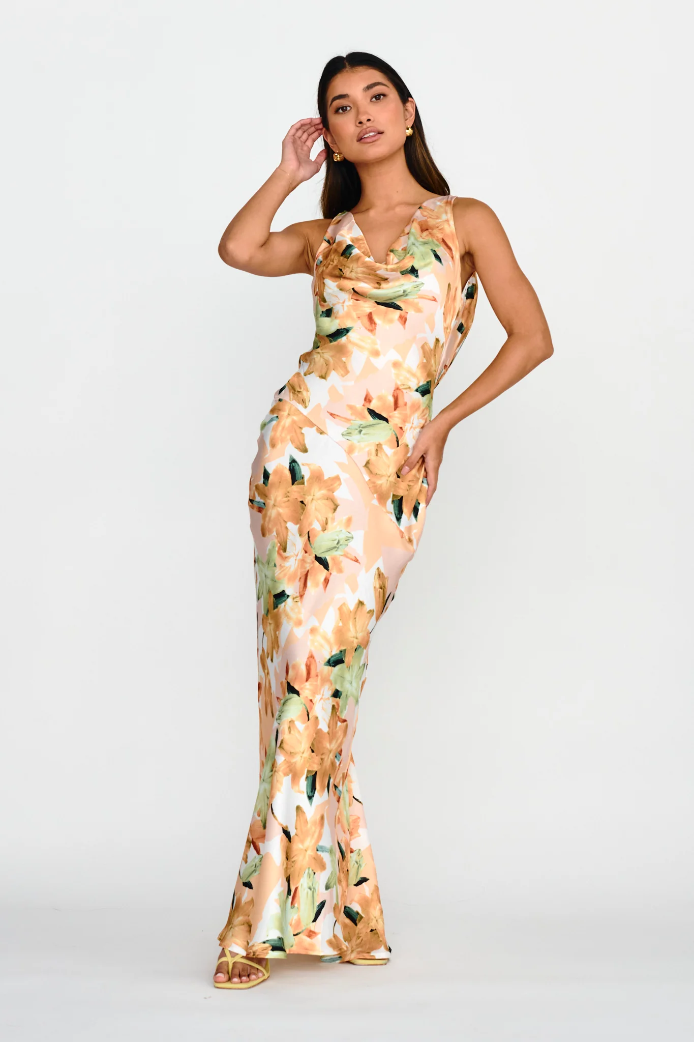 Cassiopeia Open Back Maxi Dress Lily Print Yellow