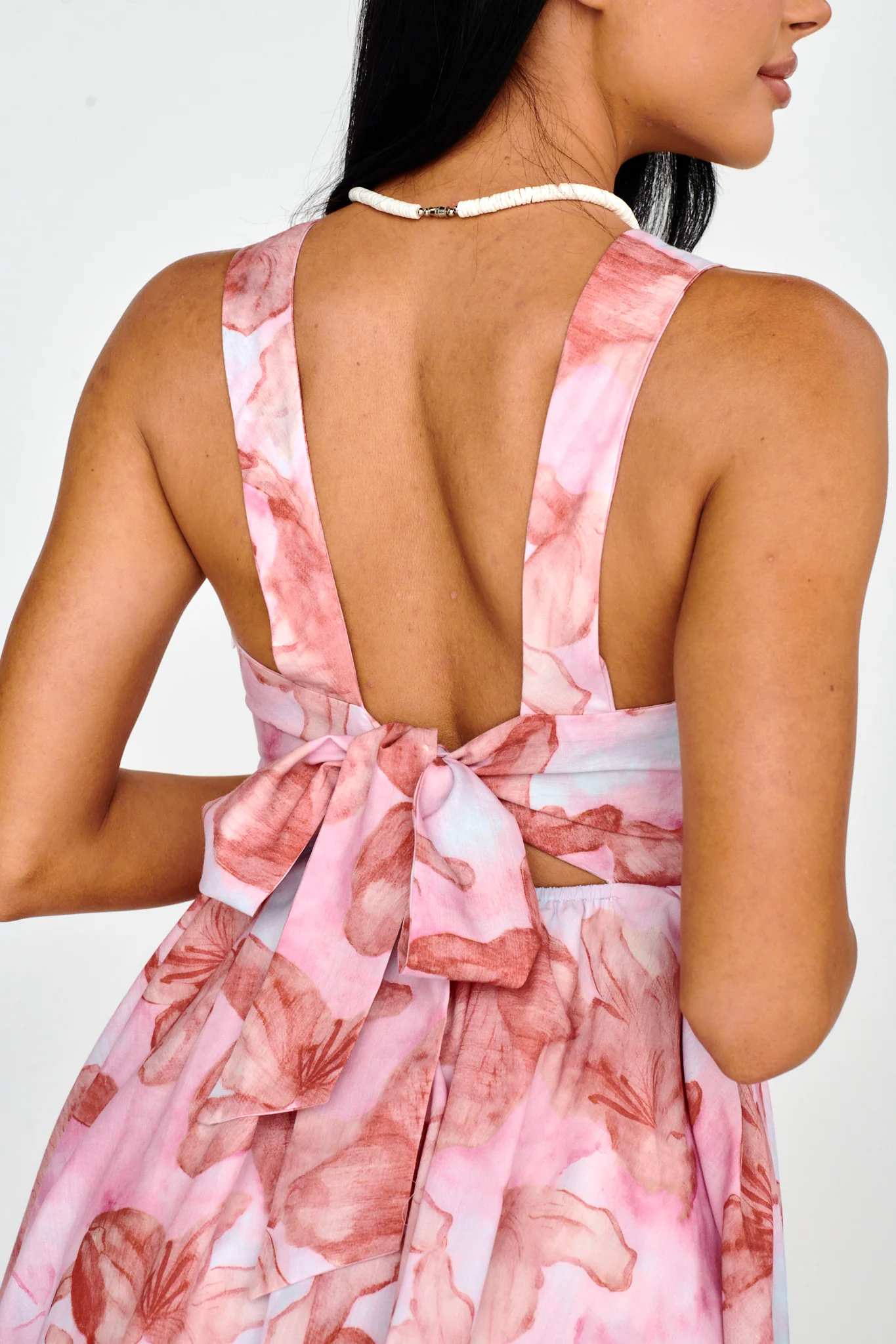 Porcia Tied Back Frill Dress Floral Pink