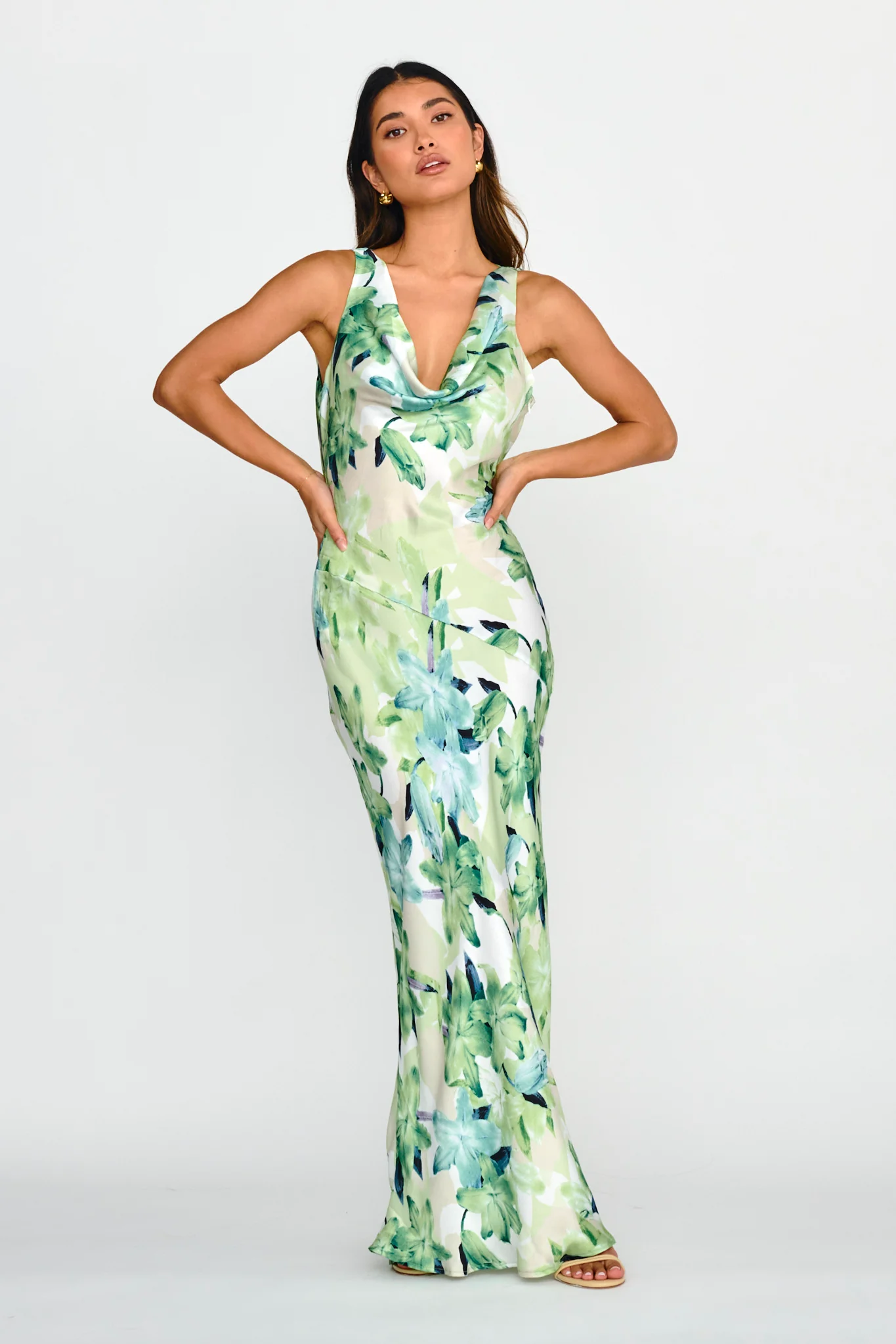 Cassiopeia Open Back Maxi Dress Lily Print Blue