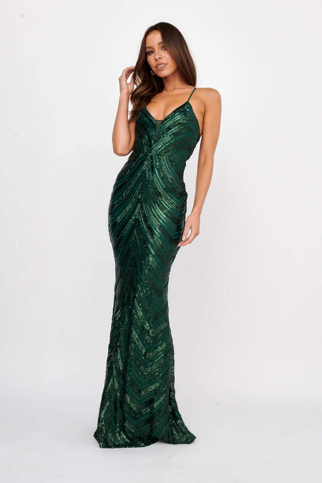 Dalila Open Tied Back Sequin Maxi Dress Hunter
