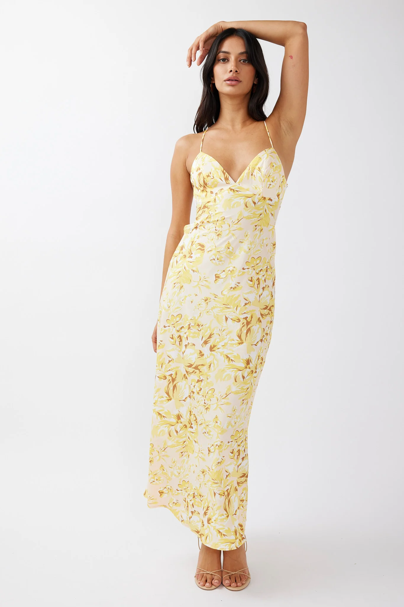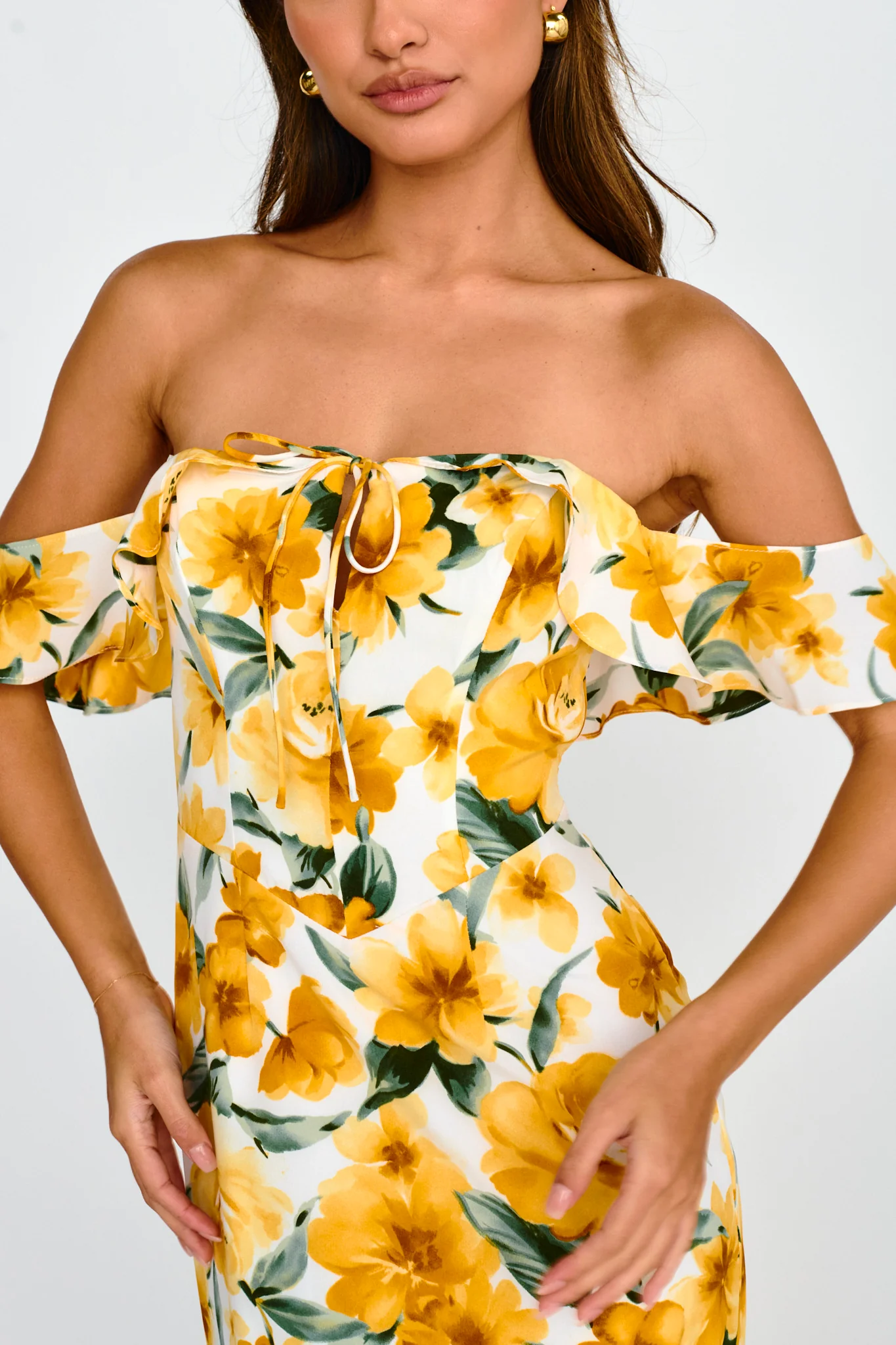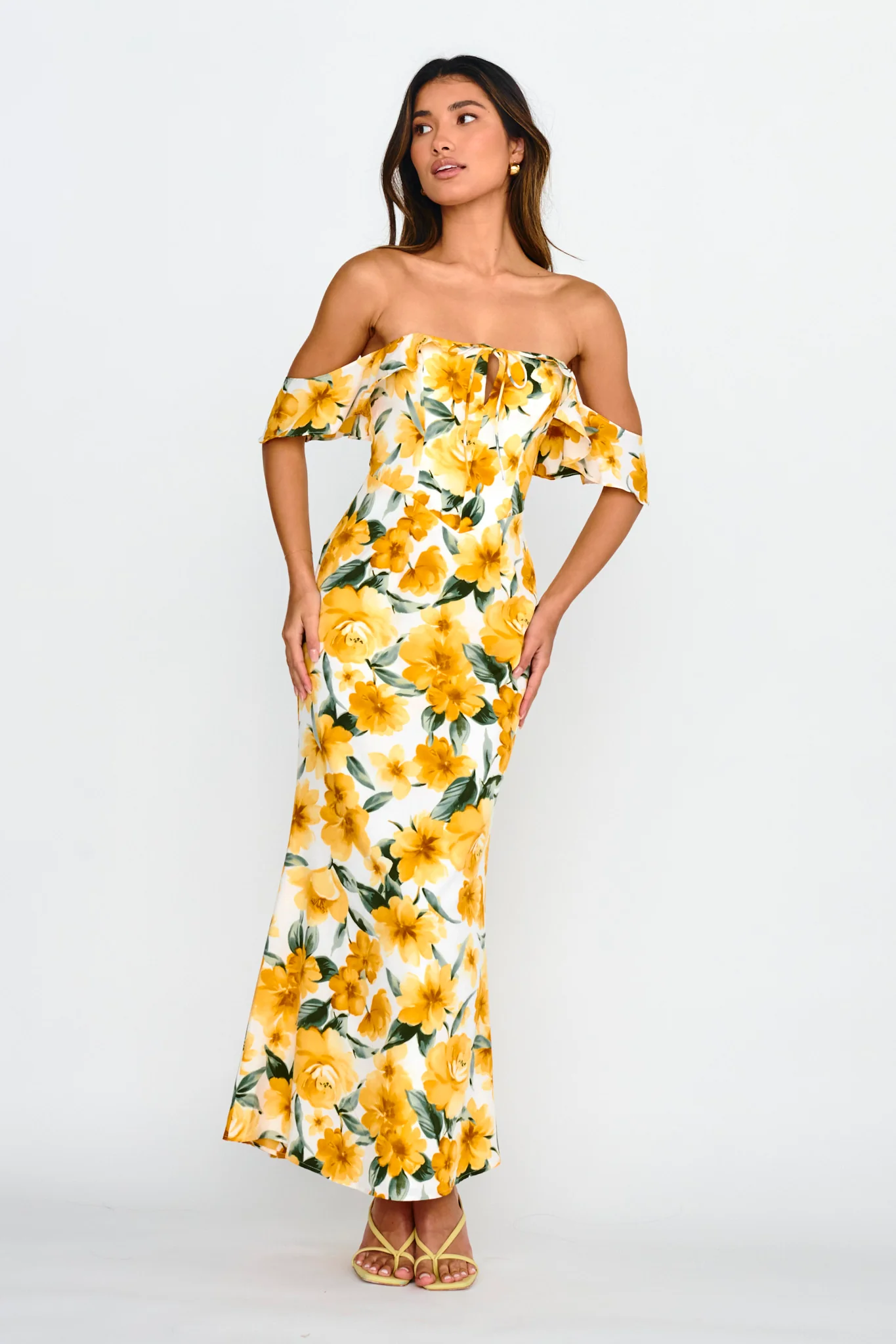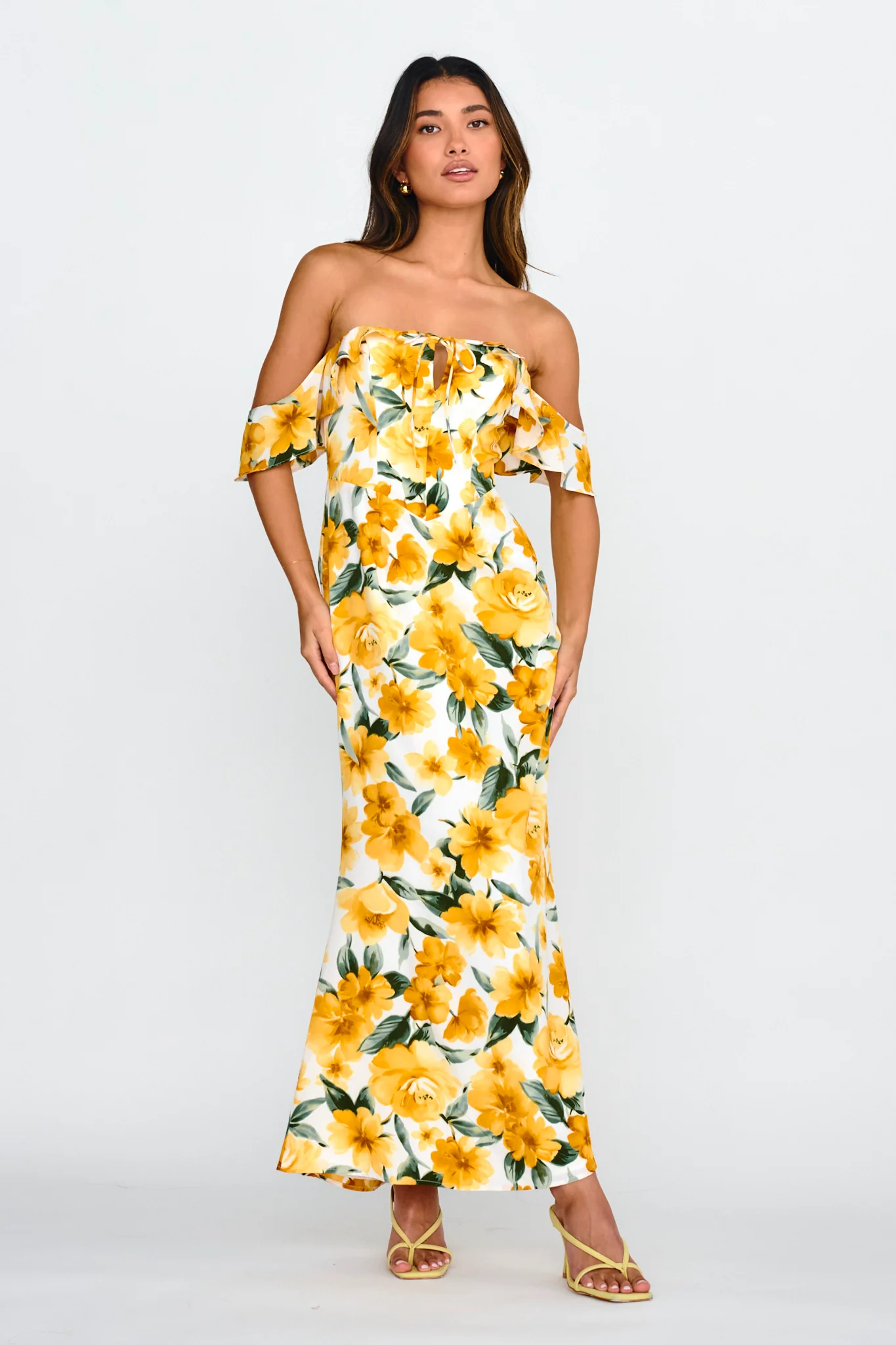 New Era Off Shoulder Maxi Dress Floral Yellow