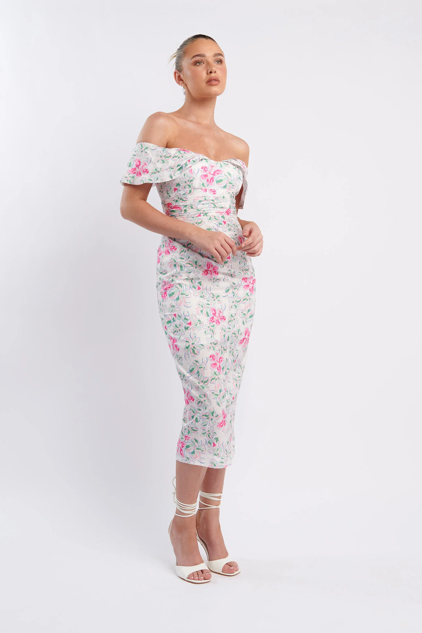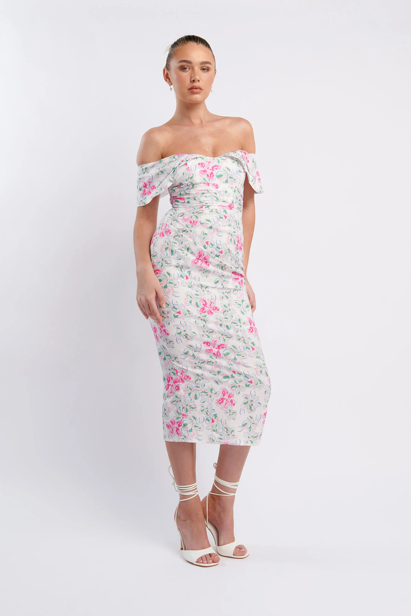 Lillianne Off-Shoulder Midi Dress Floral Pink