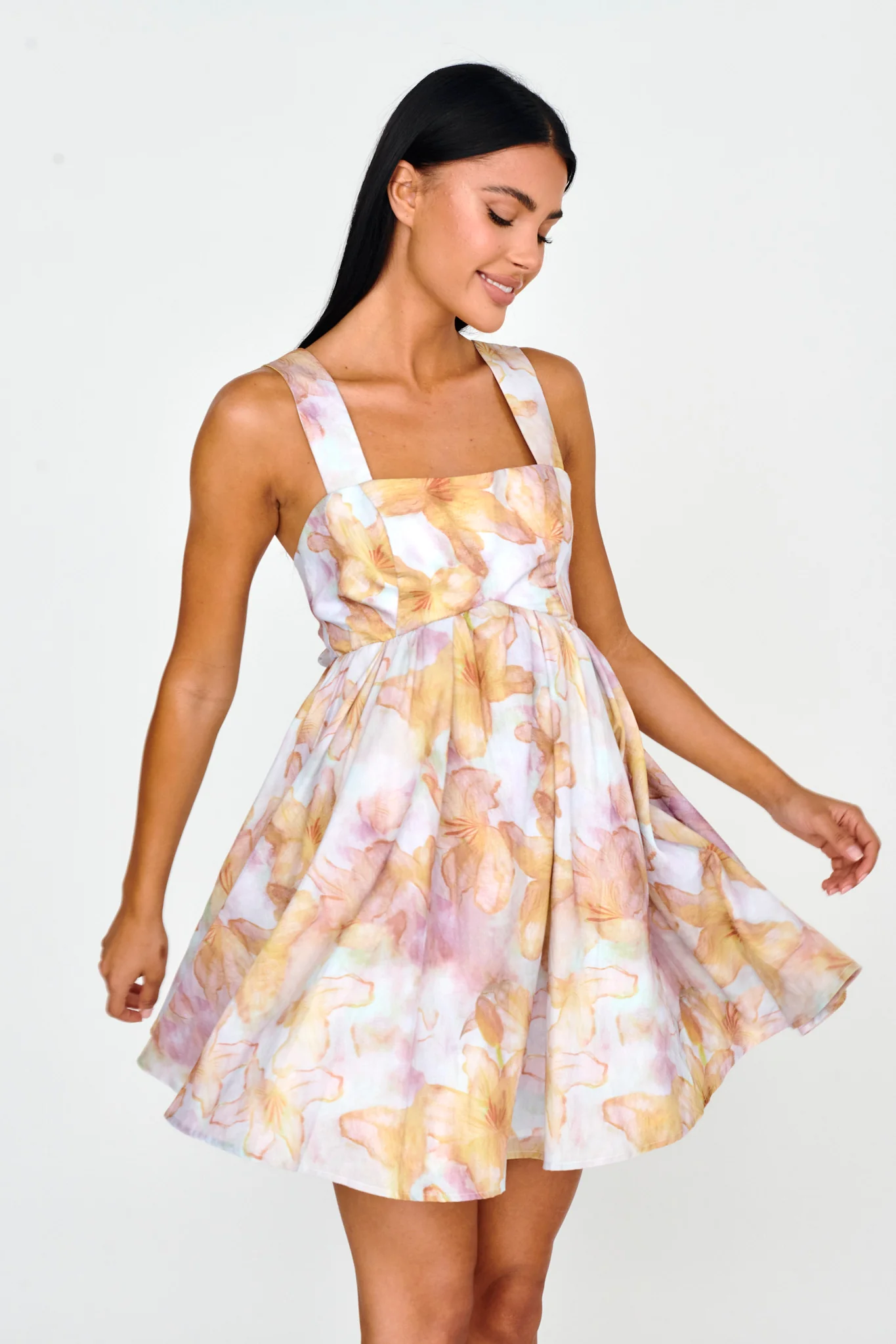New Horizons Square Neckline Tied Mini Dress Yellow