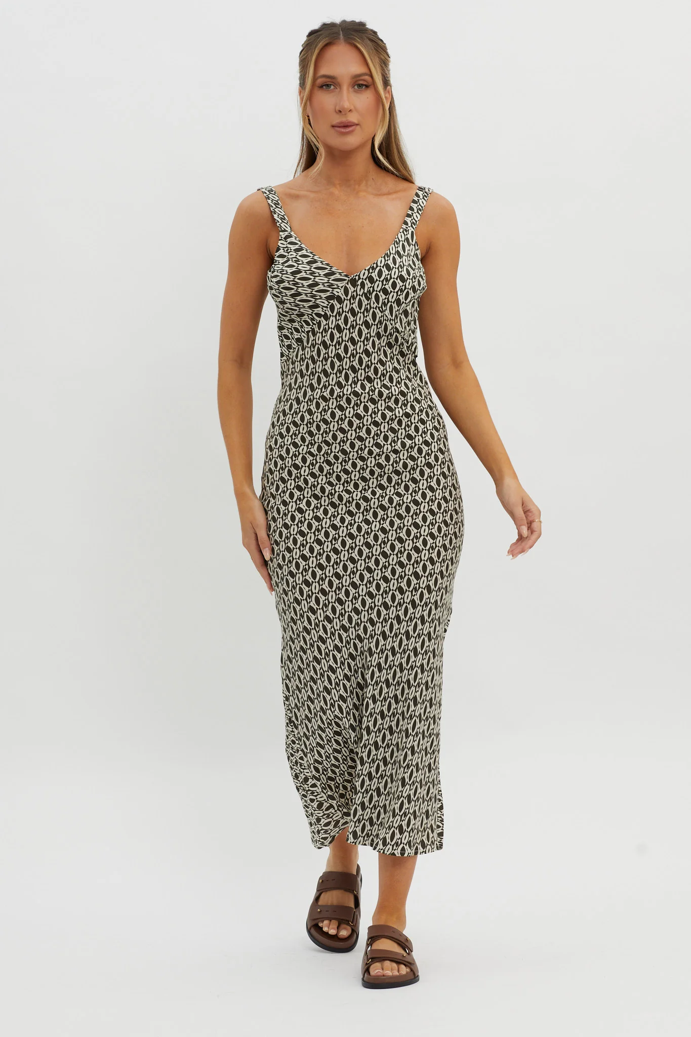 Theriz Lace Trim Tied Back Maxi Dress Green