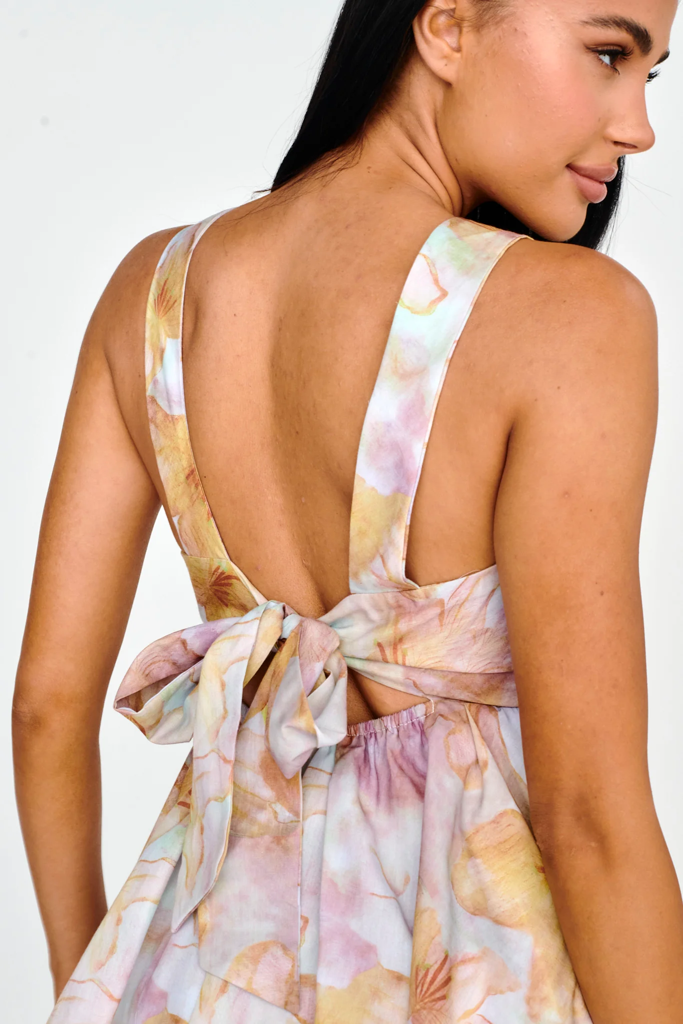 Sweet Pea Tied Bust Midi Dress Flower Pink