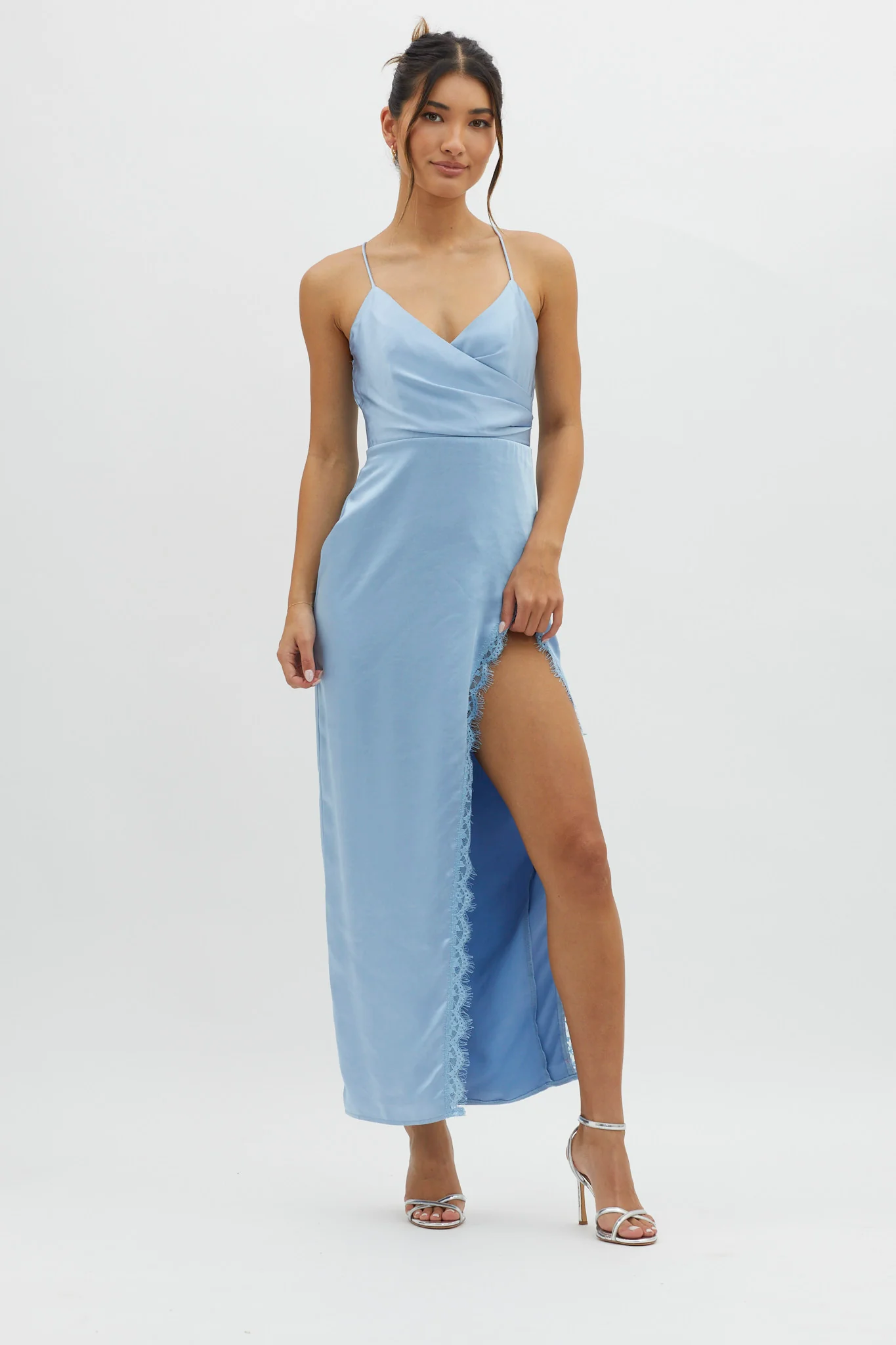 Mayah Lace Halterneck Maxi Dress Abstract Blue