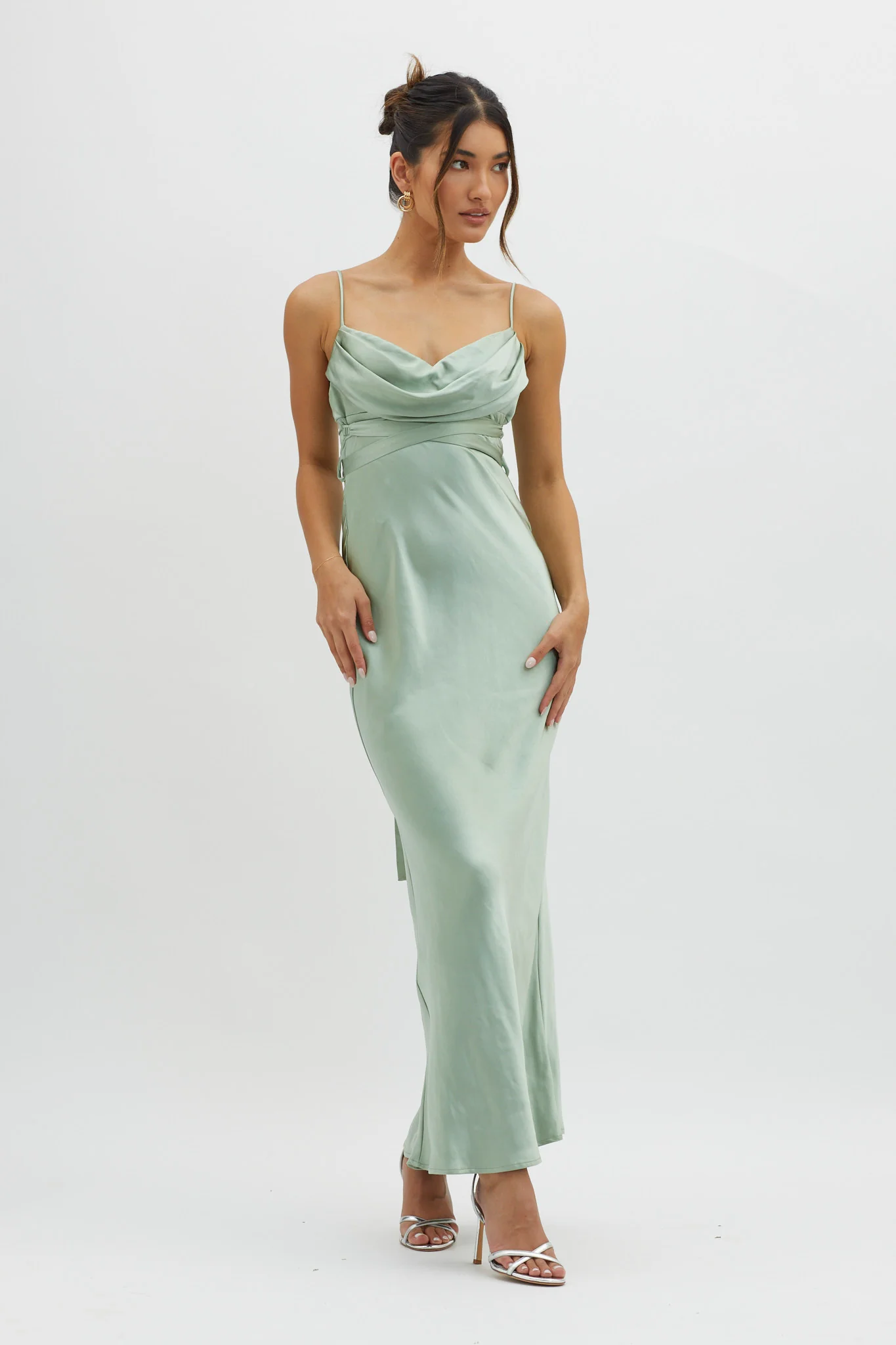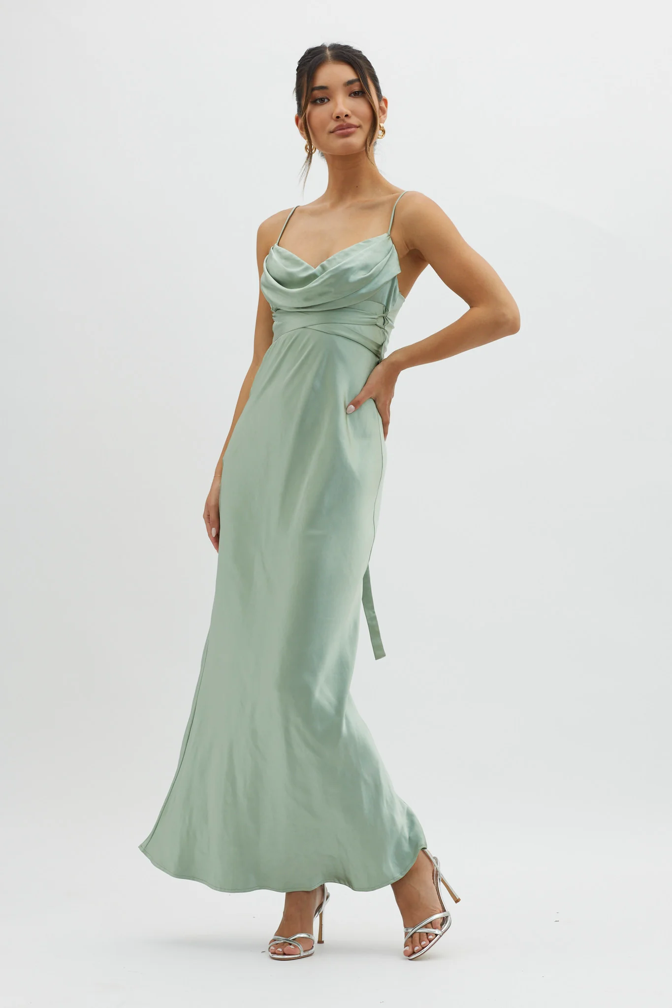Starring Role Cowl Bust Waist Tie Dress Sage