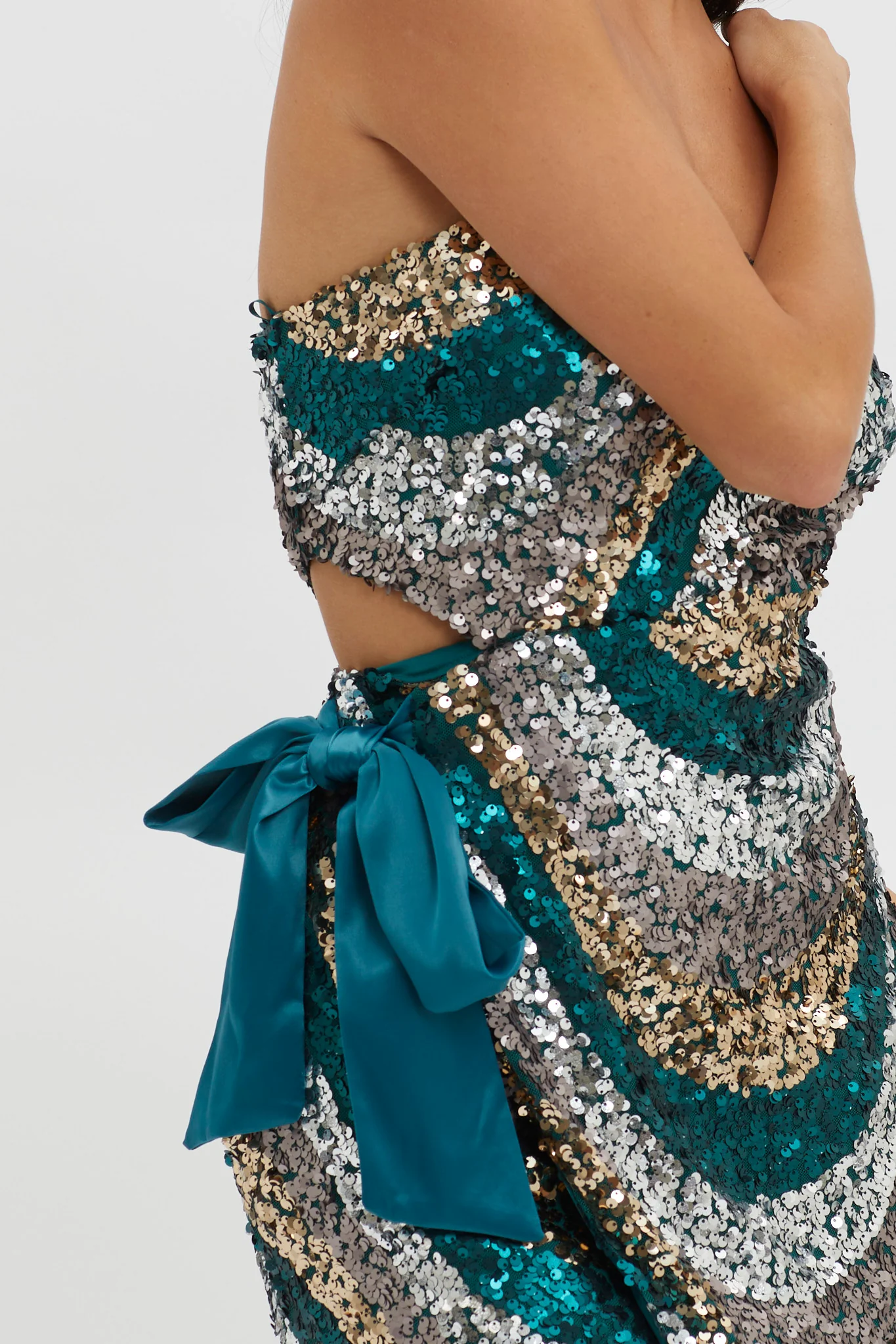 Eyes For You Waist Tie Mini Dress Sequin Green