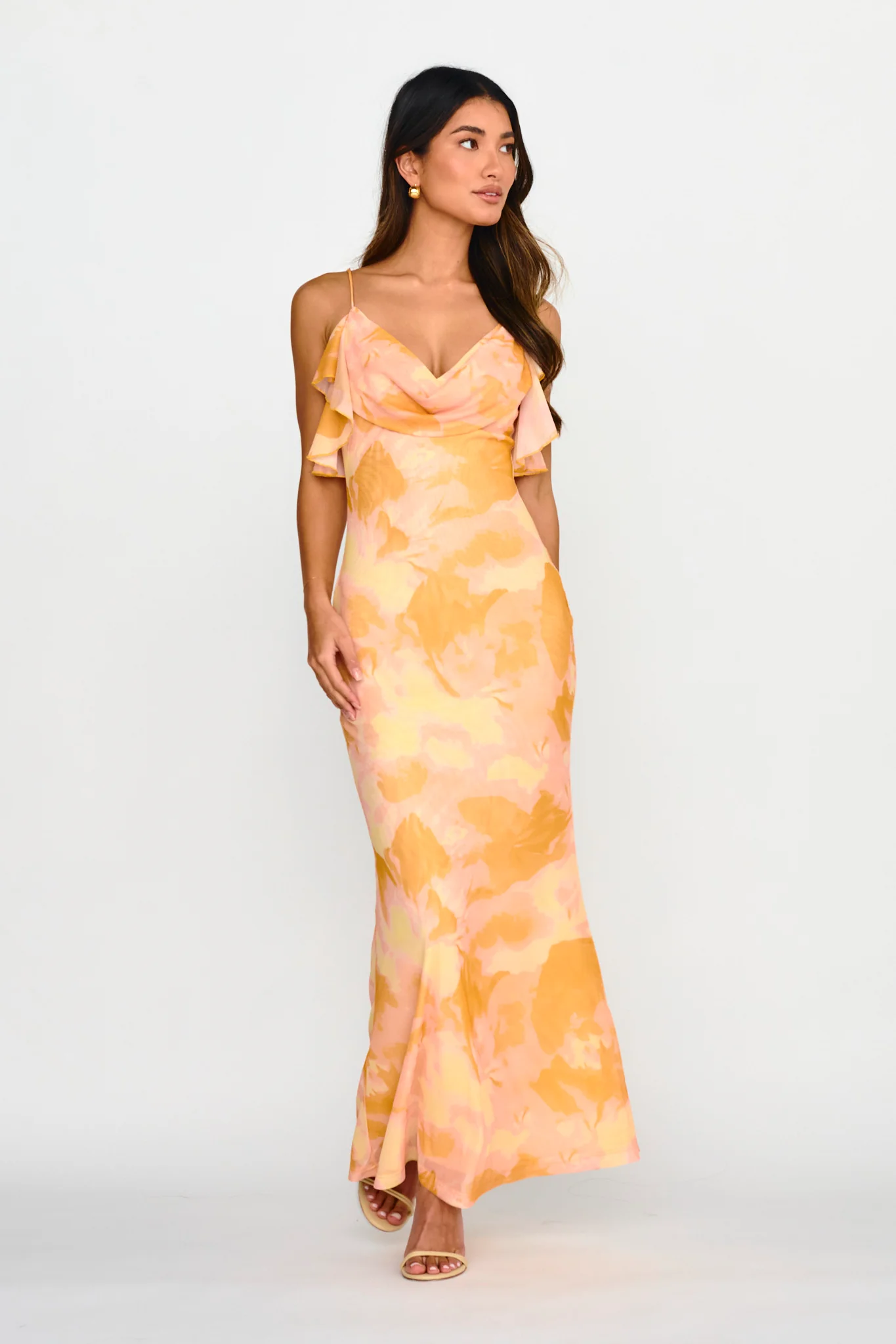 Jannie Draped Neckline Cami Dress Abstract Yellow