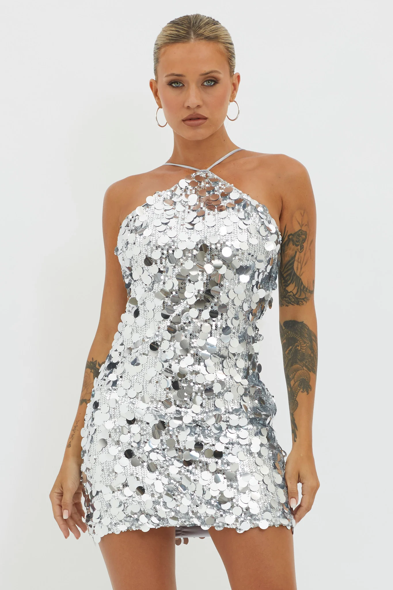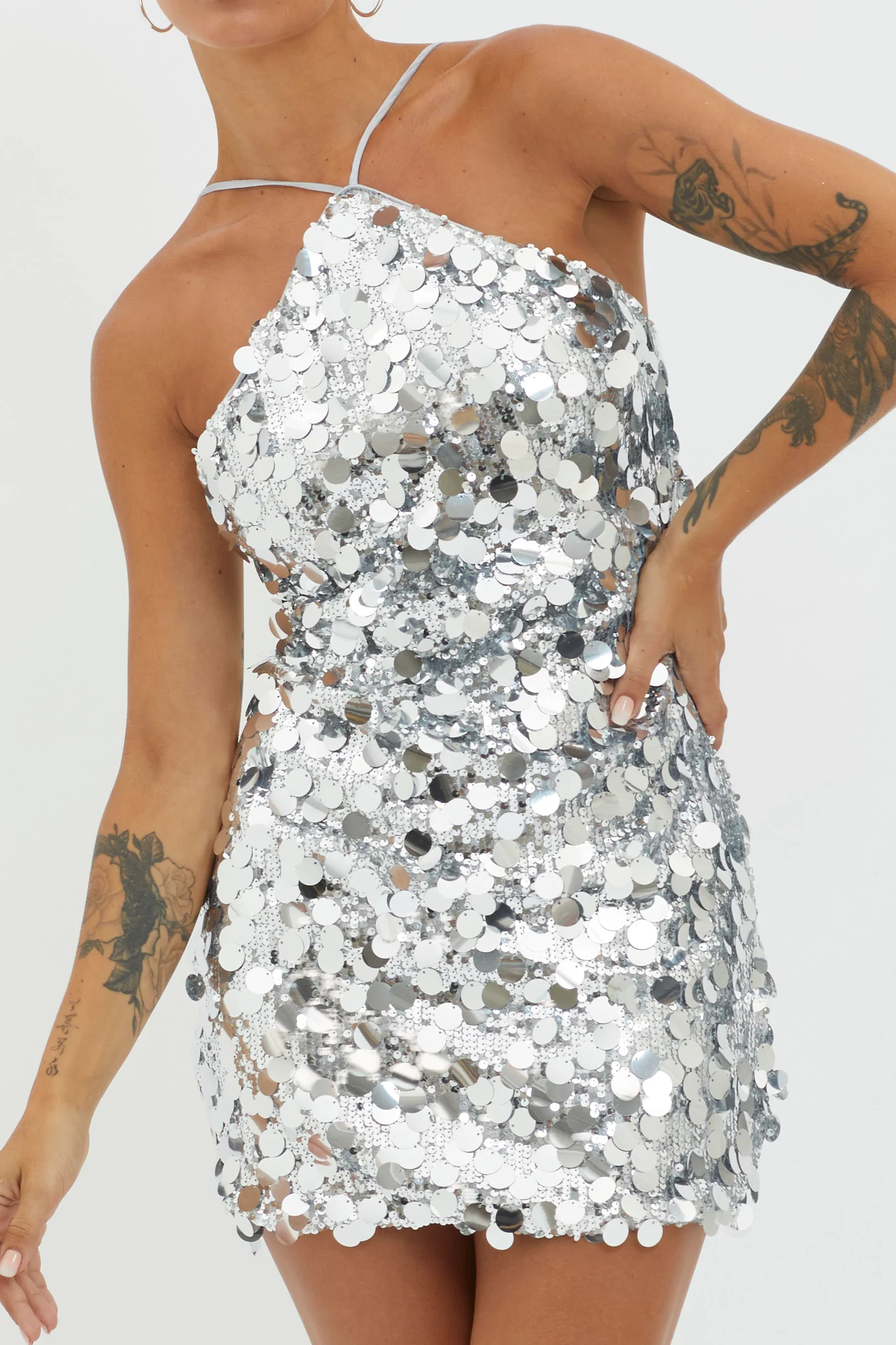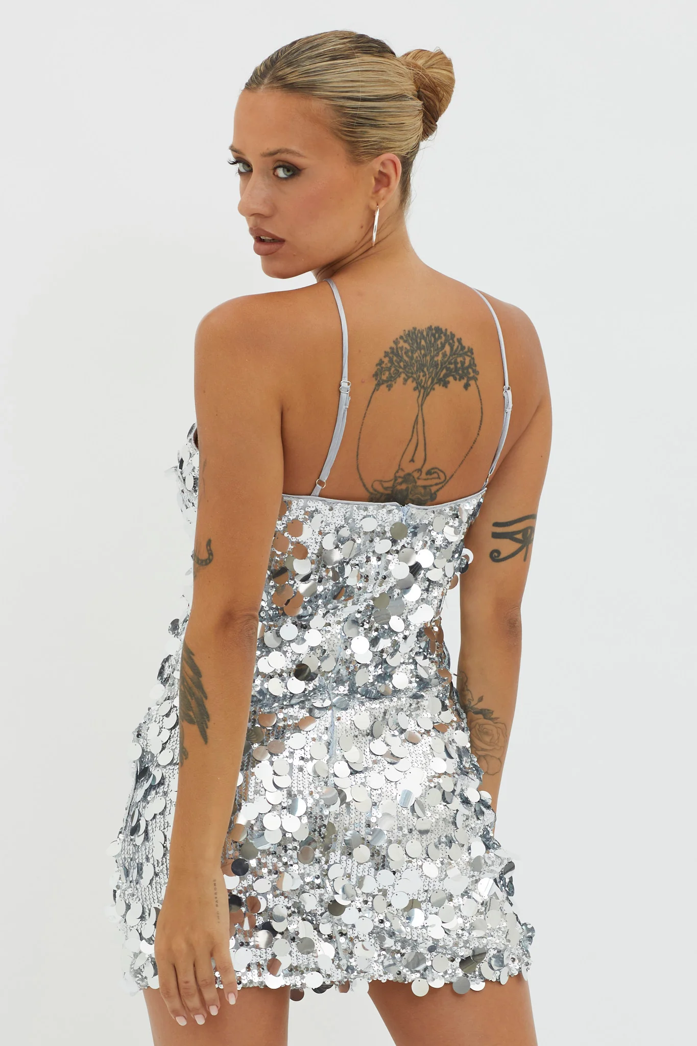 Angel Energy Strapless Sequin Maxi Dress Silver