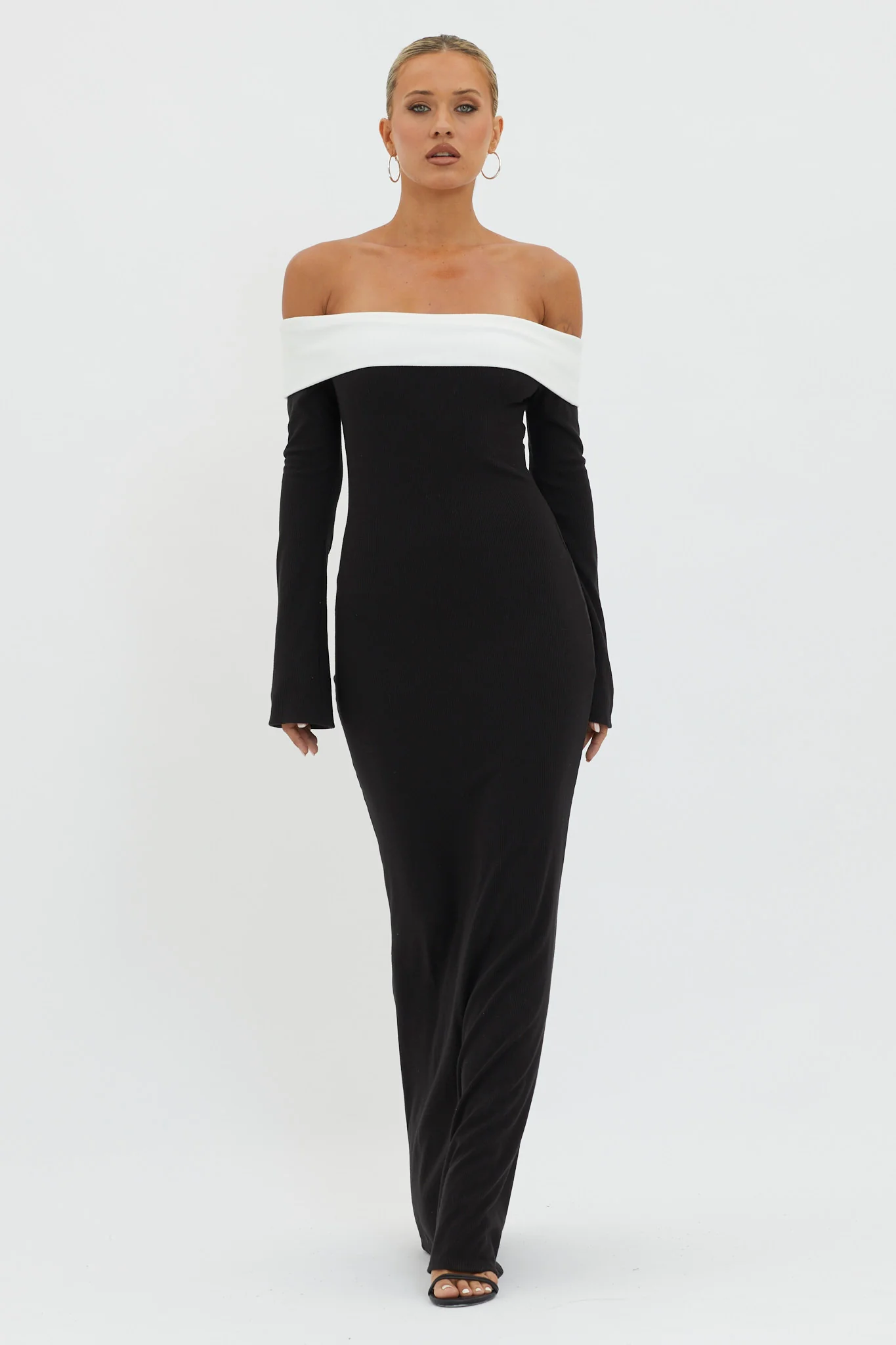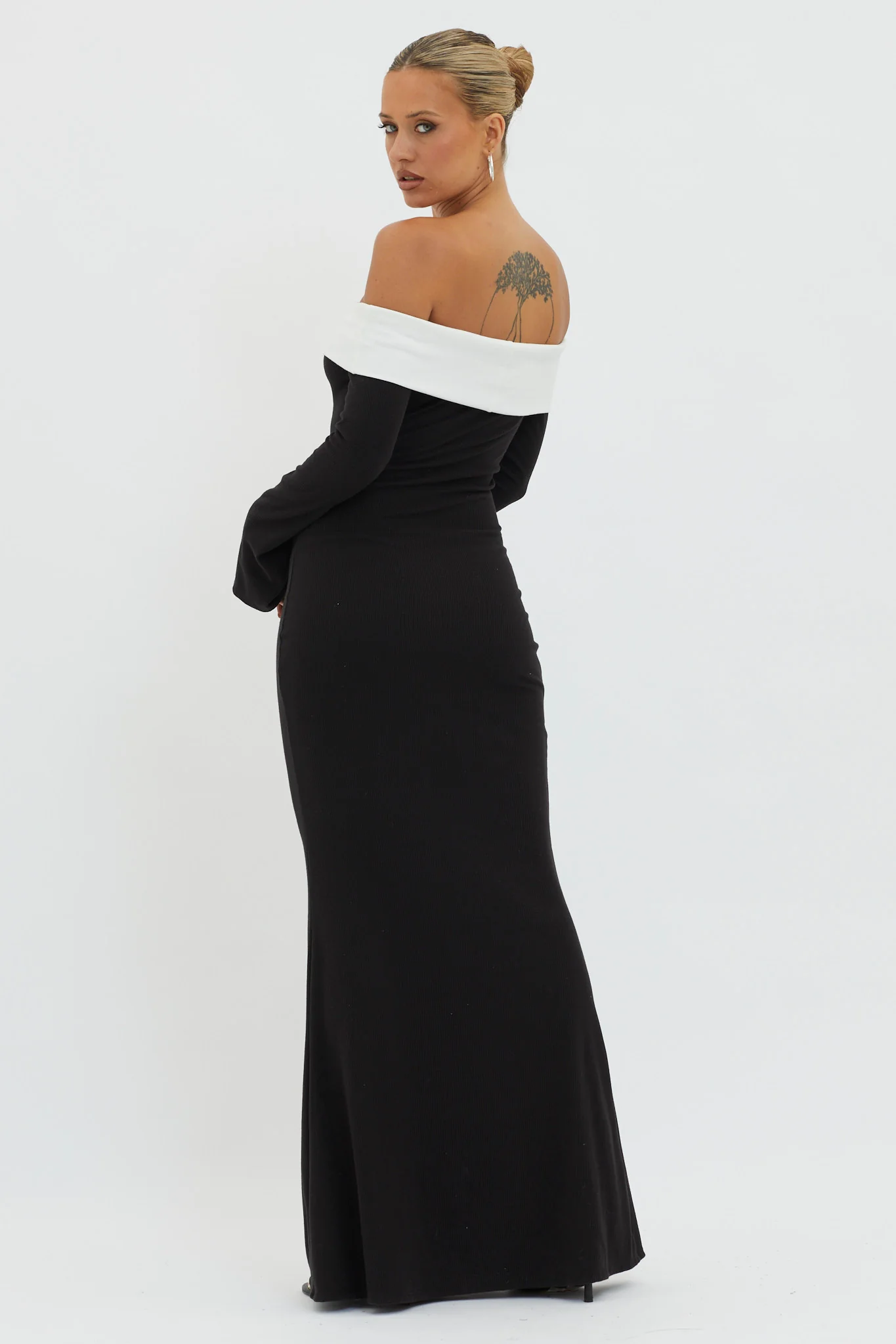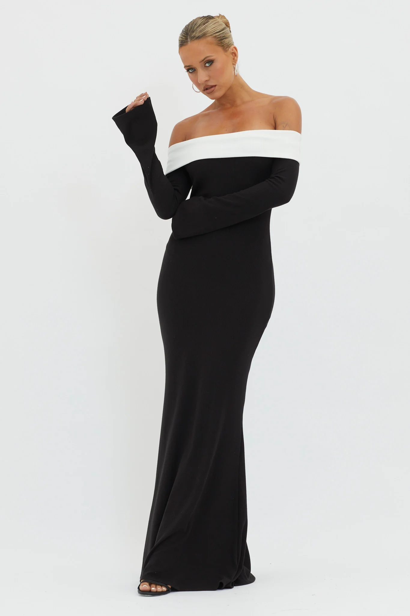 Sabrina Long Sleeve Off-Shoulder Maxi Dress Black