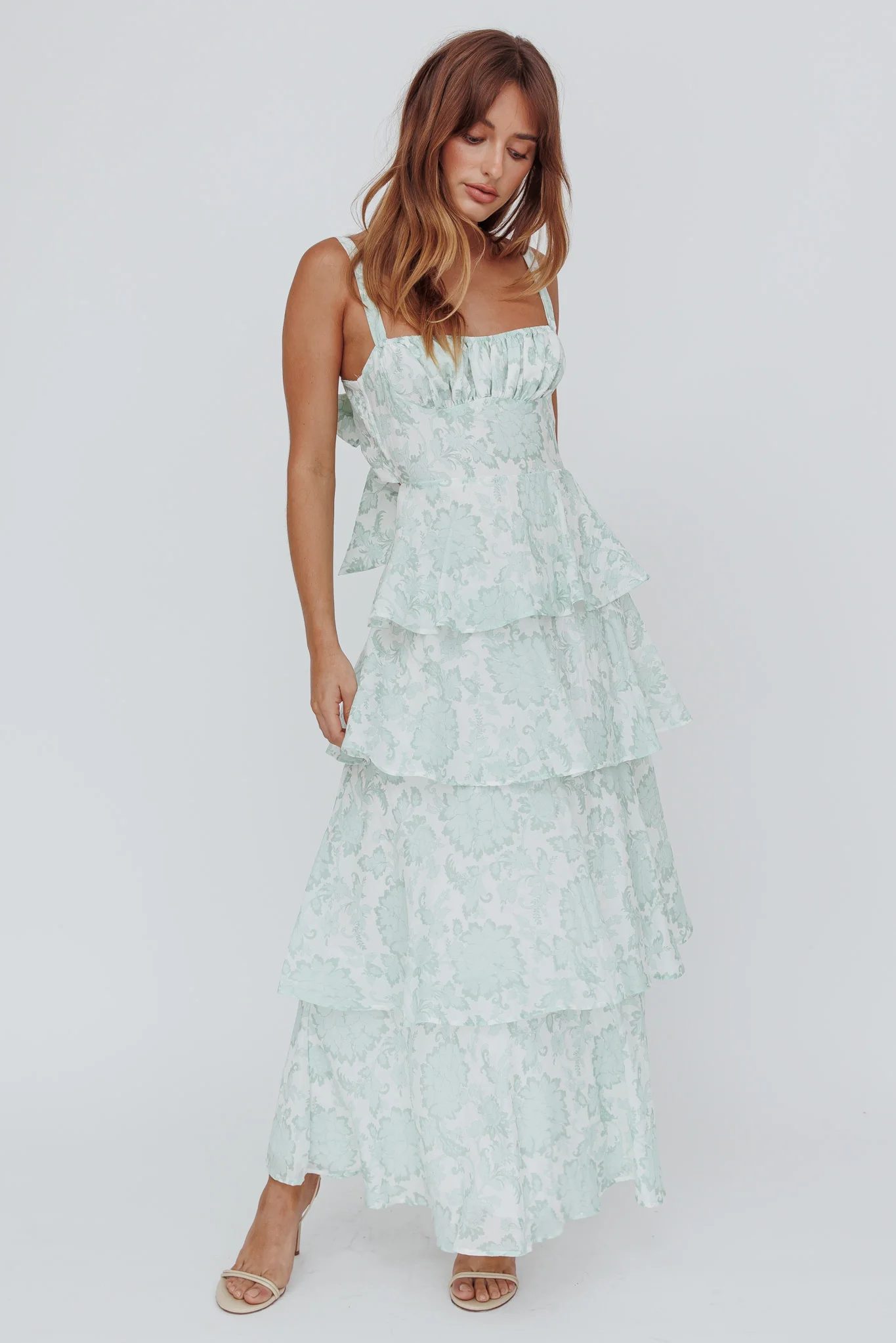 Provence Bloom Tiered Maxi Dress Floral Sage