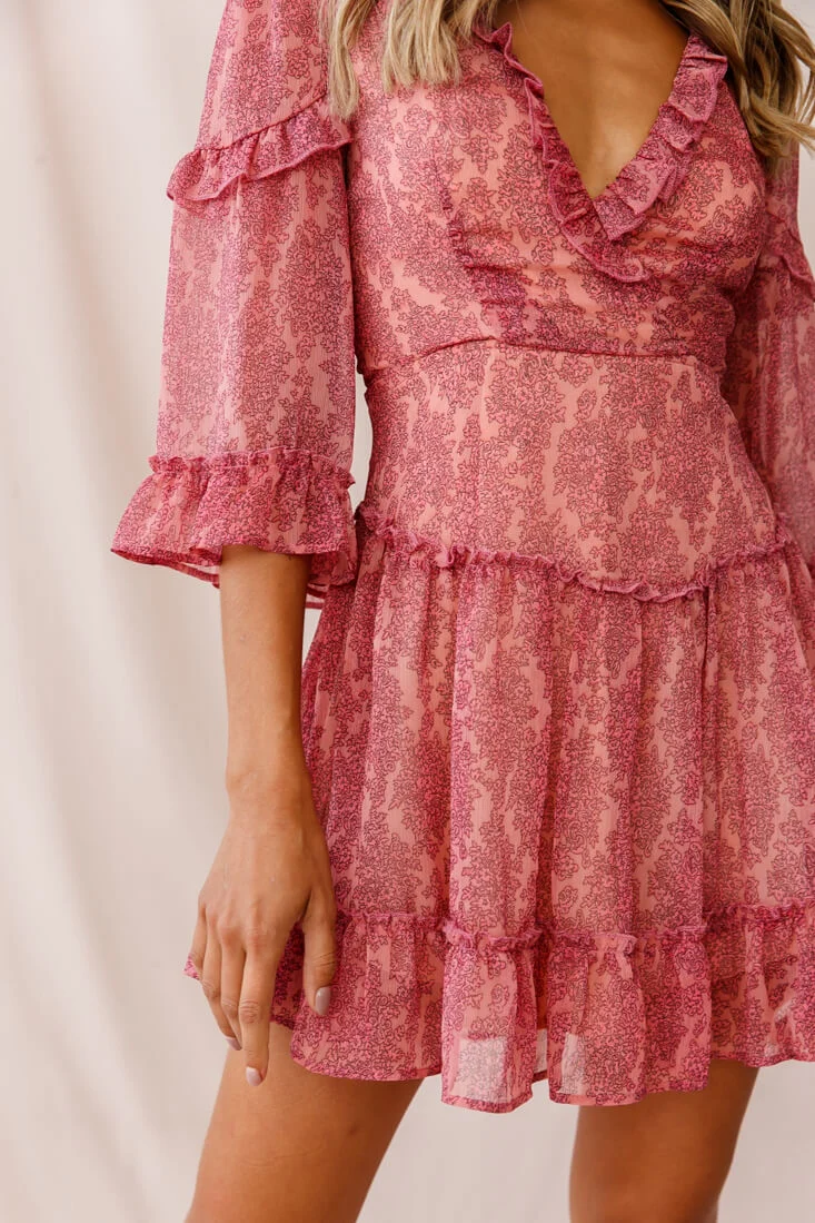 Kerry Layered Balloon Sleeve Dress Baby Pink
