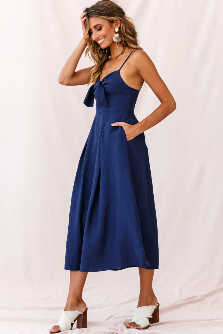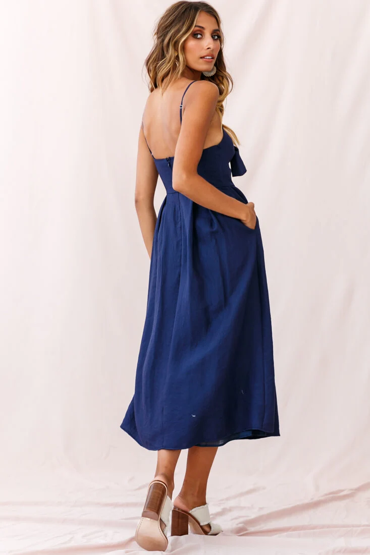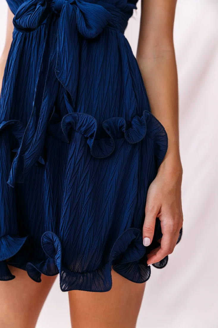 Edie V-Neck Chiffon Tea Dress Navy/White