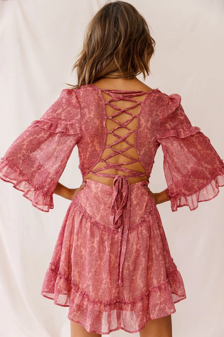 Homecoming Lace-Up Back Mesh Dress Mauve