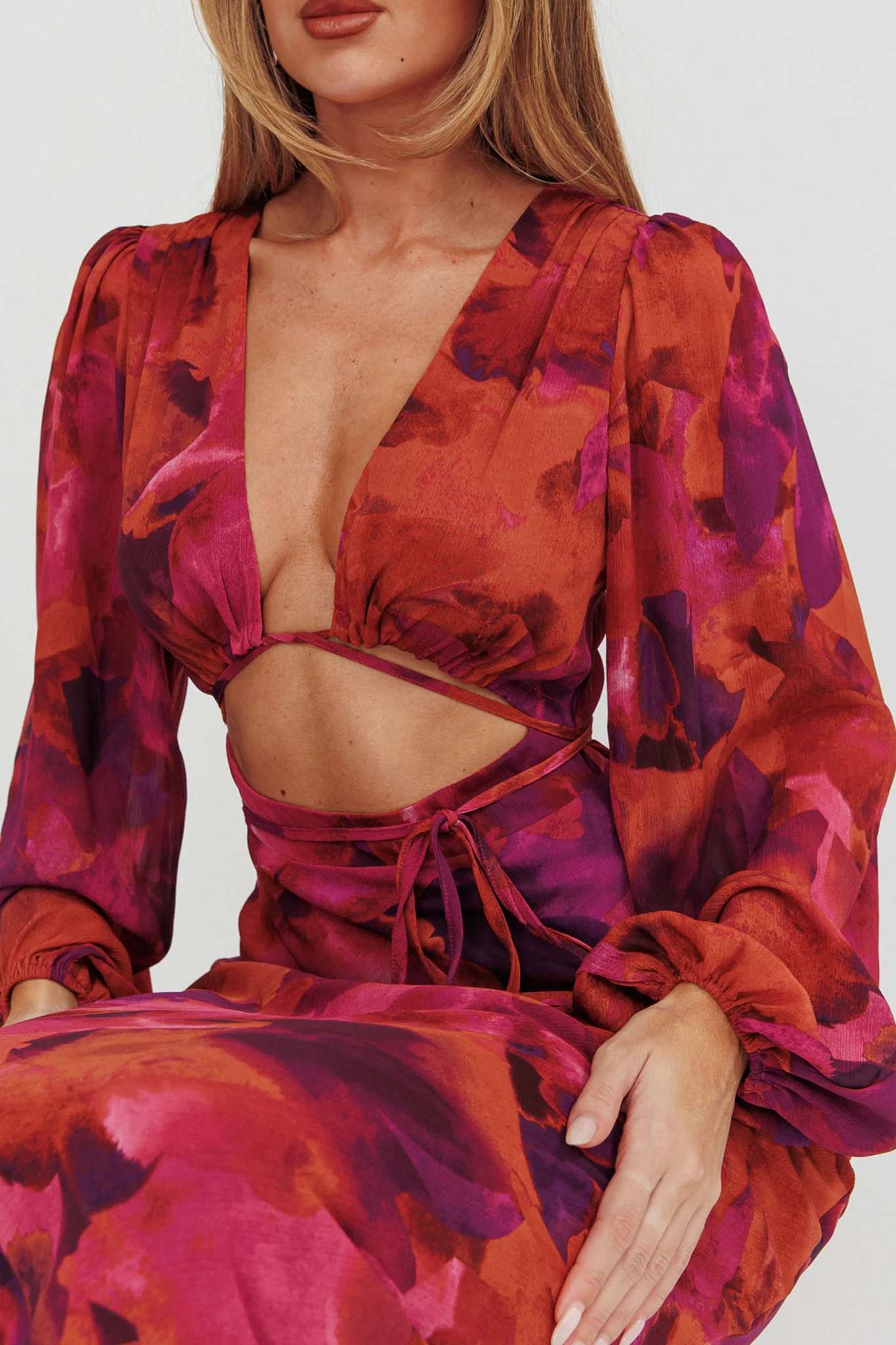 Aurora Dreams Cut-Out Waist Midi Dress Dark Rose